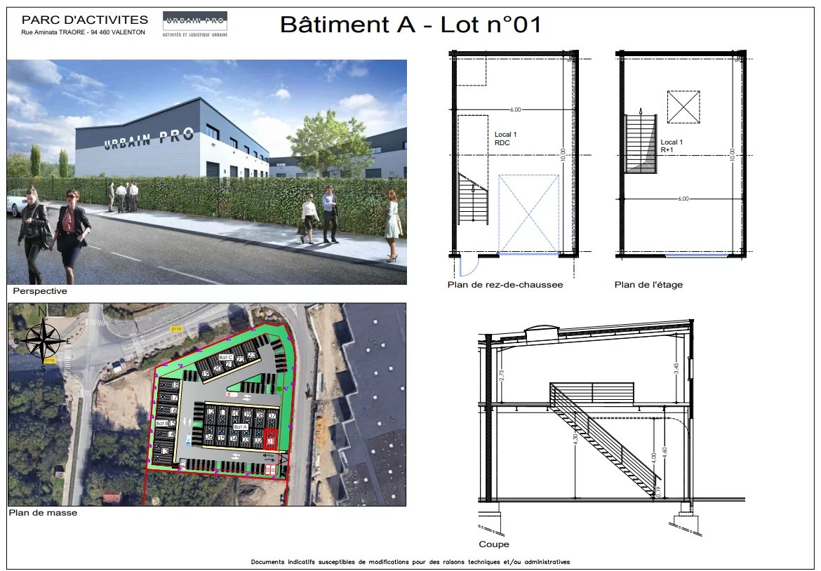 A Valenton, limitrophe Créteil, à 4 km de l’A86 et 12 km de Paris Local permettant de gérer l’ensemble de votre activité professionnelle : - Conception - petite production - SAV - Entreposage matériaux et matériels - stockage – archivage - stationnement 60 M2 au Rdc + 60 M2 à l’étage Site clôturé et vidéo-surveillé – accessible H24 Portes sectionnelles électrique 3,00 * 3,80 Ht Surcharges 1 t / M2 au RDC Hauteur 4,3 m au RDC et 2,70 m à l’étage Compteur triphasé 36 KWA 2 places de stationnement extérieur associées au local Local non adapté à l’activité automobile et à la réception du public Livré brut de béton Loyer : à partir de 1 650 euros HT / HC / mois - Disponibilité immédiate Charges locatives et fiscalité : provision de 280 euros HT / mois