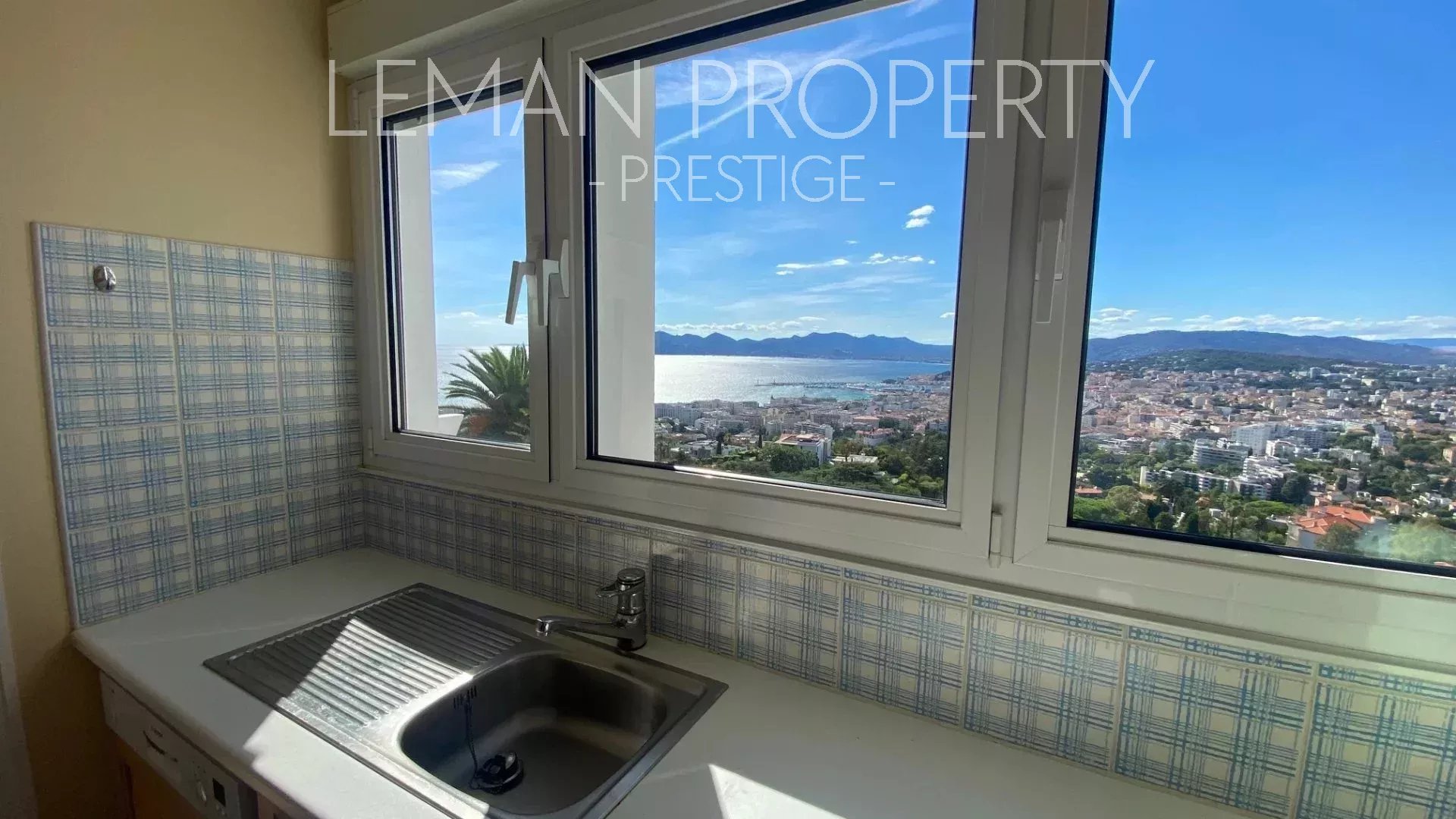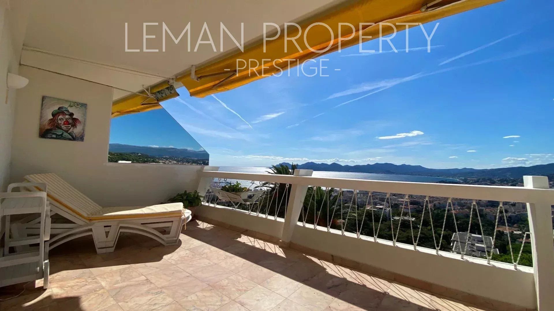Situé au dernier étage d'une très belle résidence dans le quartier prisé de la Californie, cet appartement d'une superficie de 82,50 m² offre une vue imprenable sur la baie de Cannes, les îles de Lérins et le massif de l'Esterel.L'appartement se compose d'un hall d'entrée, un salon/séjour, une cuisine, deux chambres, une salle de douche/bain/wc, toilettes invités.Une spacieuse terrasse vient compléter cet ensemble, permettant de profiter pleinement du panorama exceptionnel.Un garage et une cave sont également inclus.Un bien alliant confort, élégance et situation privilégiée.DPE : D/GES : B - charges annuelles courantes : 6360/an soit 530/mois. Pas de procédure en cours - Les honoraires sont à la charge des vendeurs.