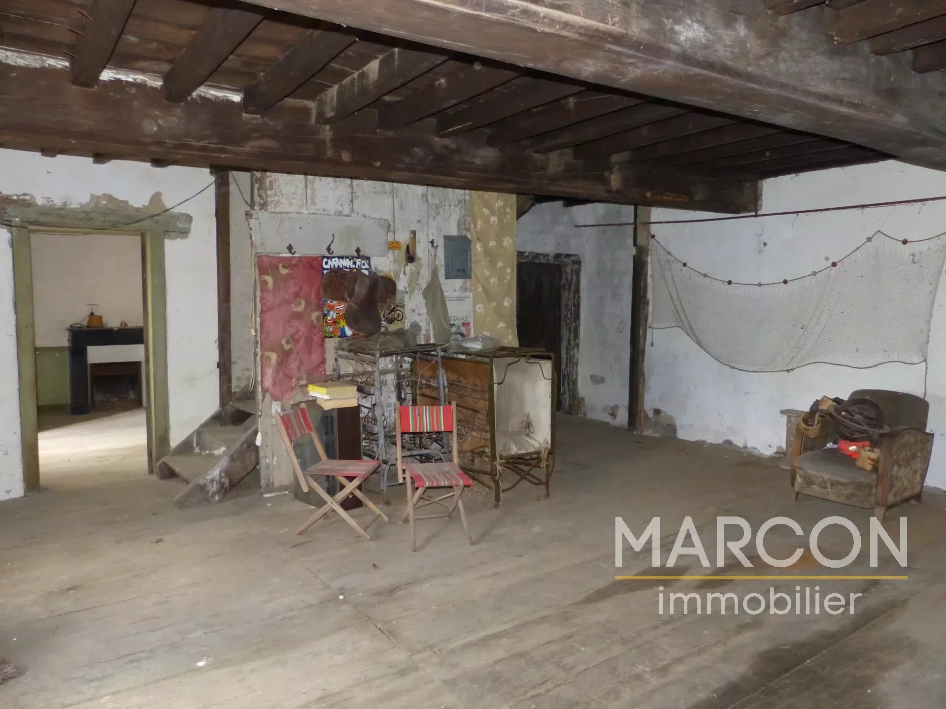 10 minutes AUBUSSON. Réf: 88887. Belle maison à rénover comprenant au rez-de-chaussée: une grande pièce (dalle pierre, cheminée, poutres), une petite pièce, cave voûtée. 1er étage: trois pièces. Grand grenier aménageable au-dessus avec une pièce. Terrain attenant. Petite parcelle de terrain non attenante. Le tout sur 1551 m² de terrain. Prix: 55 500 euros (honoraires agence inclus de 9.9 % à la charge de l'acquéreur)