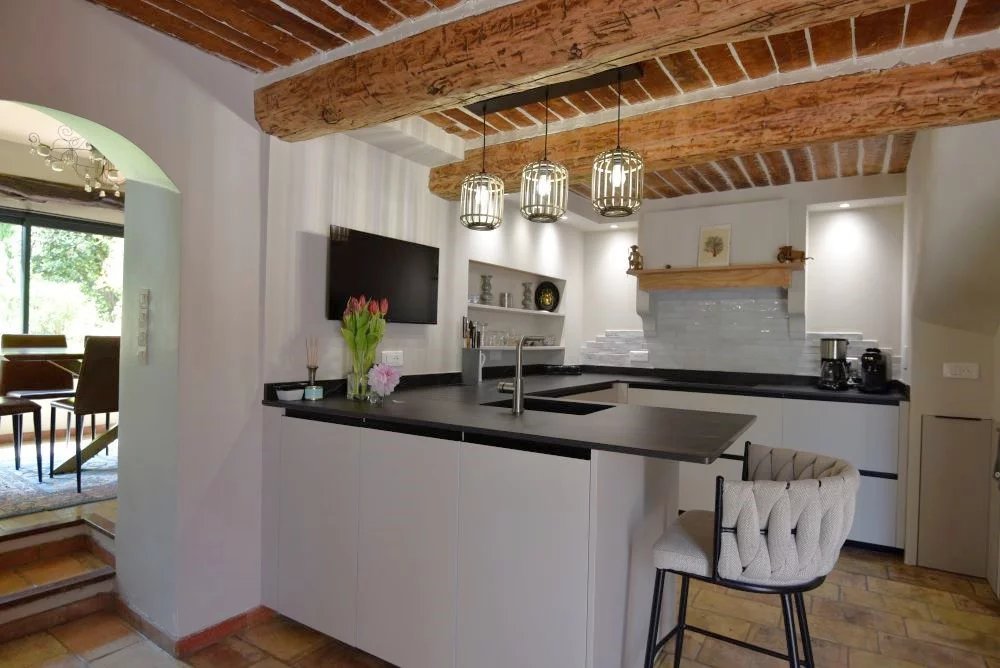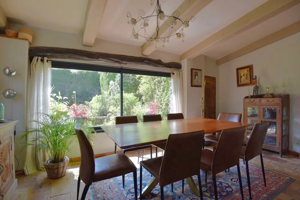 PEYMEINADE – Quartier résidentiel recherché, proche commodités Au cœur d’un environnement résidentiel prisé, à l’abri des regards, ce magnifique mas en pierre d’environ 160 m² incarne tout le charme et l’art de vivre de la Provence. Nichée dans un écrin de verdure de 2 270 m², la propriété séduit par son atmosphère paisible, son authenticité et la qualité de ses prestations. La maison principale offre des prestations soignées : Une élégante salle à manger, une cuisine équipée, ainsi qu’un chaleureux salon avec cheminée. L’espace nuit se compose d’une chambre maître avec salle de bains, de deux chambres supplémentaires, de deux salles d’eau, d’un dressing et d’un agréable coin salon, idéal en espace lecture ou détente. Les dépendances complètent harmonieusement l’ensemble : Atelier, buanderie, caves et garage double indépendant. À l’extérieur, le jardin paysager aux accents méditerranéens est une invitation à la douceur de vivre : Piscine, cuisine d’été, charmants bassins à poissons, oliviers et arbres fruitiers composent un décor naturel d’exception. Une roulotte aménagée ajoute une touche bohème et rare, parfaite pour recevoir ou créer un espace indépendant. Un bien de caractère, alliant authenticité, élégance et art de vivre, idéal en résidence principale comme en maison de charme. Surface habitable : 160 m² Séjour : 35 m² Pièces : 5 Chambres : 3 Chauffage : gaz Prestations : cheminée, piscine, atelier, garage, tout à l’égout