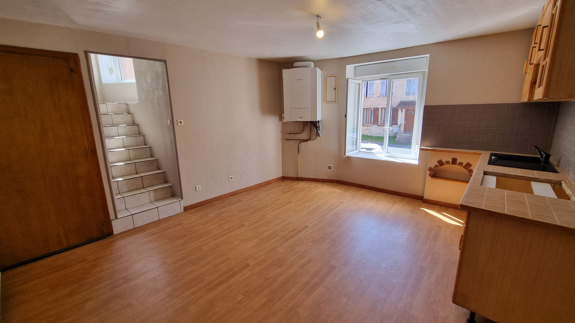 Maison de ville mitoyenne sur 1 côté en bon état général ( double vitrage - chauffage gaz de ville chaudière à condensation 2014 - isolation intérieur - isolation grenier et caves - etc ) située au centre ville dans une impasse ( calme ) comprenant au rez de chaussée, hall d'entrée, accès caves, accès garage et terrasse avec jardinet, au 1er demi niveau, cuisine aménagée, salon, à l'étage, salle d'eau, wc ( tout à l'égoût ), 2 chambres, 1 bureau, dégagement. Accès grenier ( charpente traitée ) et laine soufflée. Garage. Jardinet et terrasse.