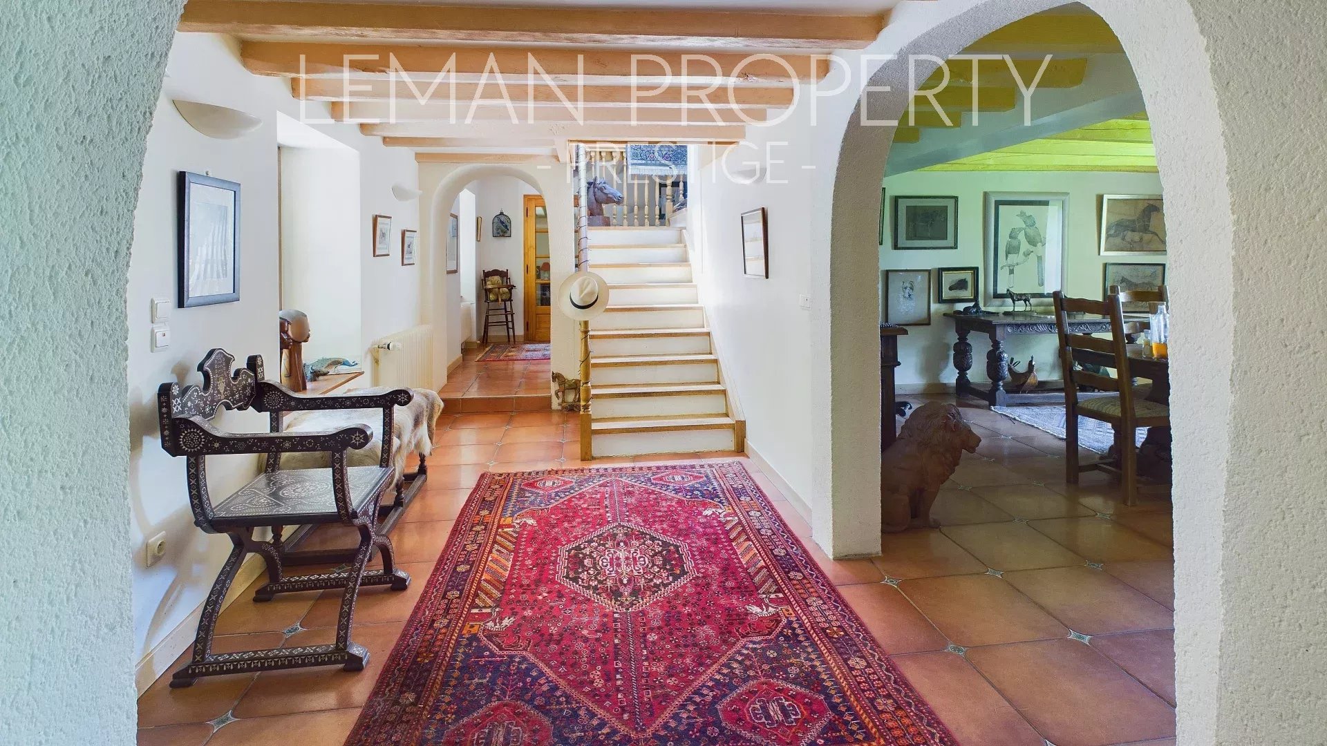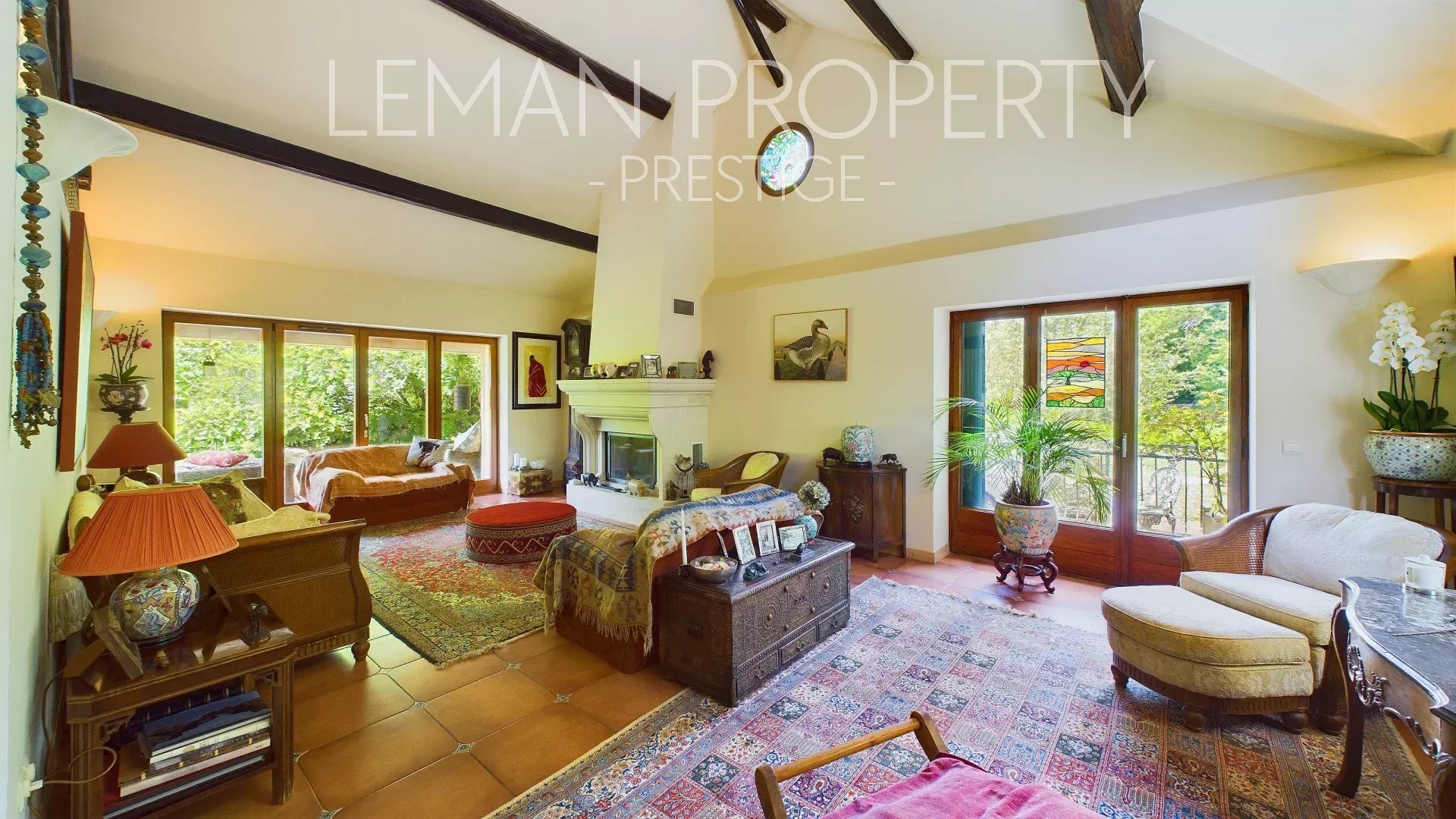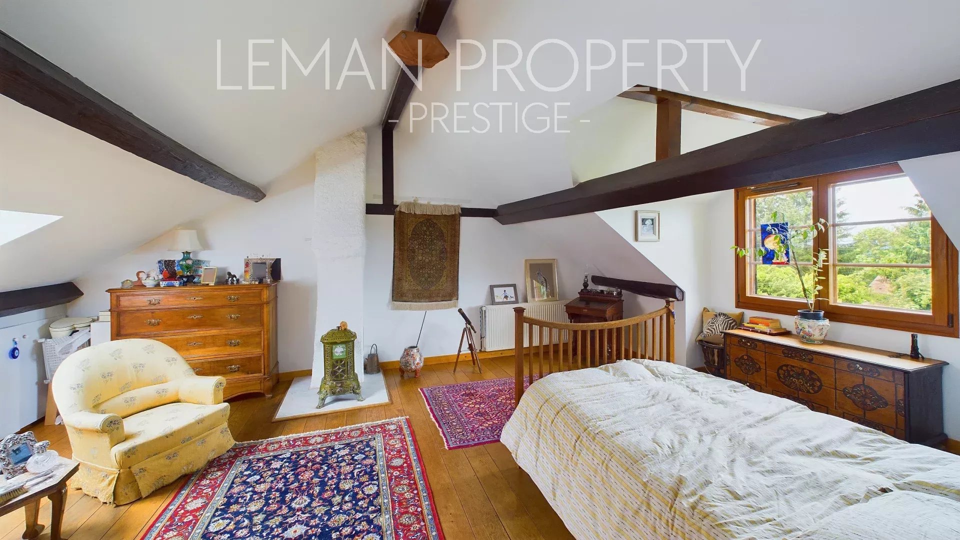 Cette ancienne demeure chargée d'histoire respire l'élégance et le charme d'antan tout en offrant un confort moderne dans un cadre paisible et privilégié. Si vous appréciez les beaux volumes, cette maison est parfaite pour vous, avec environ 275 m2 habitables étendus sur 2 niveaux, édifiée sur une parcelle de plus de 3100m2. Au Rez, un hall d'entrée, un vaste dégagement plein de charme, un salon avec plafond cathédrale lumineux agrementé de sa cheminée norvégienne, une cuisine indépendante et équipée avec sa salle à manger, 2 chambres, 1 salle de bains et un WC. Au R+1, 2 chambres, 1 espace de vie, 1 salle de bains.Un vaste sous-sol proposant des parties entièrement distinctes à exploiter. En complément de la maison principale un cottage indépendant d'environ 46m2 sur 2 niveaux. Dès votre arrivée, vous serez séduit par le calme absolu qui règne autour de cette maison, offrant une véritable évasion loin du tumulte de la vie urbaine. Profitez de l'espace généreux à l'intérieur comme à l'extérieur, et laissez-vous envelopper par l'atmosphère apaisante de ce havre de paix. Si vous recherchez une maison au caractère unique, alliant charme ancien et confort moderne, ne cherchez pas plus loin. Cette propriété exceptionnelle sur les hauteurs de Saint-Cergues vous offre la possibilité de créer votre propre histoire dans un environnement d'exception. Contactez-nous dès aujourd'hui pour une visite privée et découvrez le charme intemporel de cette maison patrimoniale. « Les informations sur les risques auxquels ce bien est exposé sont disponibles sur le site Géorisques : georisques.gouv.fr ». Consommation conventionnelle: 228KWhHEP/m2.an (E) Estimation des émissions 69KgCO2/m2.an (E)