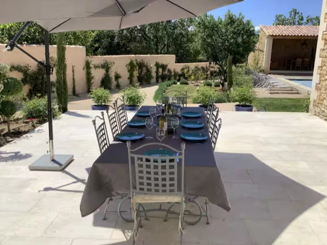 A quelques minutes du beau village de Murs et de Gordes, dans un cadre idyllique et préservé, venez découvrir cette très belle maison en pierre, de plain-pied. Cette maison récente allie le confort moderne et l'authenticité. Grande pièce de vie très lumineuse de part ses baies vitrées et belles hauteurs sous plafond. Belle cuisine en bois complètement équipée et ouverte sur le séjour et la salle à manger. La maison possède quatre suites avec chacune une salle de douche et un accès à l'extérieur, deux toilettes séparés et une buanderie. La maison dispose d'un double garage d'environ 30m2 raccordé à l'eau et l'électricité et d'un beau pool house de 18 m2. Le jardin paysager de 1530 m2 est agrémenté d'une piscine de 8X4 à fond plat et d'une profondeur d'1,50 m, chauffée par pompe à chaleur. Vous disposerez aussi d'un bel espace pour jouer à la pétanque ainsi que de plusieurs places de parking. La maison se prête parfaitement comme résidence principale ou secondaire avec un important potentiel locatif. Confort et prestations: construction RT 2012, chauffage par pompe à chaleur, serpentins installés sous le travertin et qui peut permettre de changer de moyen de chauffage, adoucisseur, portail électrique et arrosage automatique, pompe à chaleur et alarme pour la piscine, fibre optique, climatisation réversible, fosse septique aux normes, DPE excellent. Que recherchez-vous précisément dans cette propriété ? Un lieu pour des vacances régulières, une résidence secondaire pour la location, ou peut-être une maison familiale ?