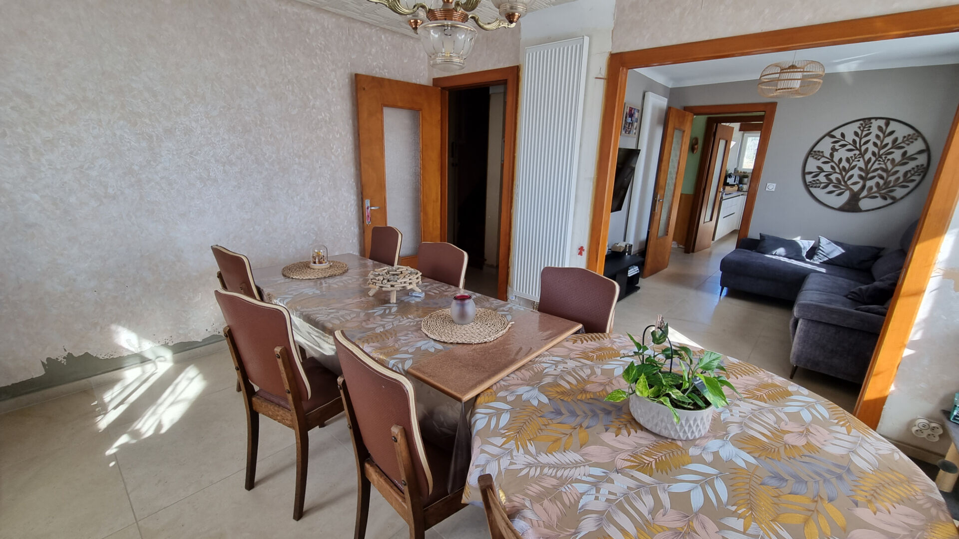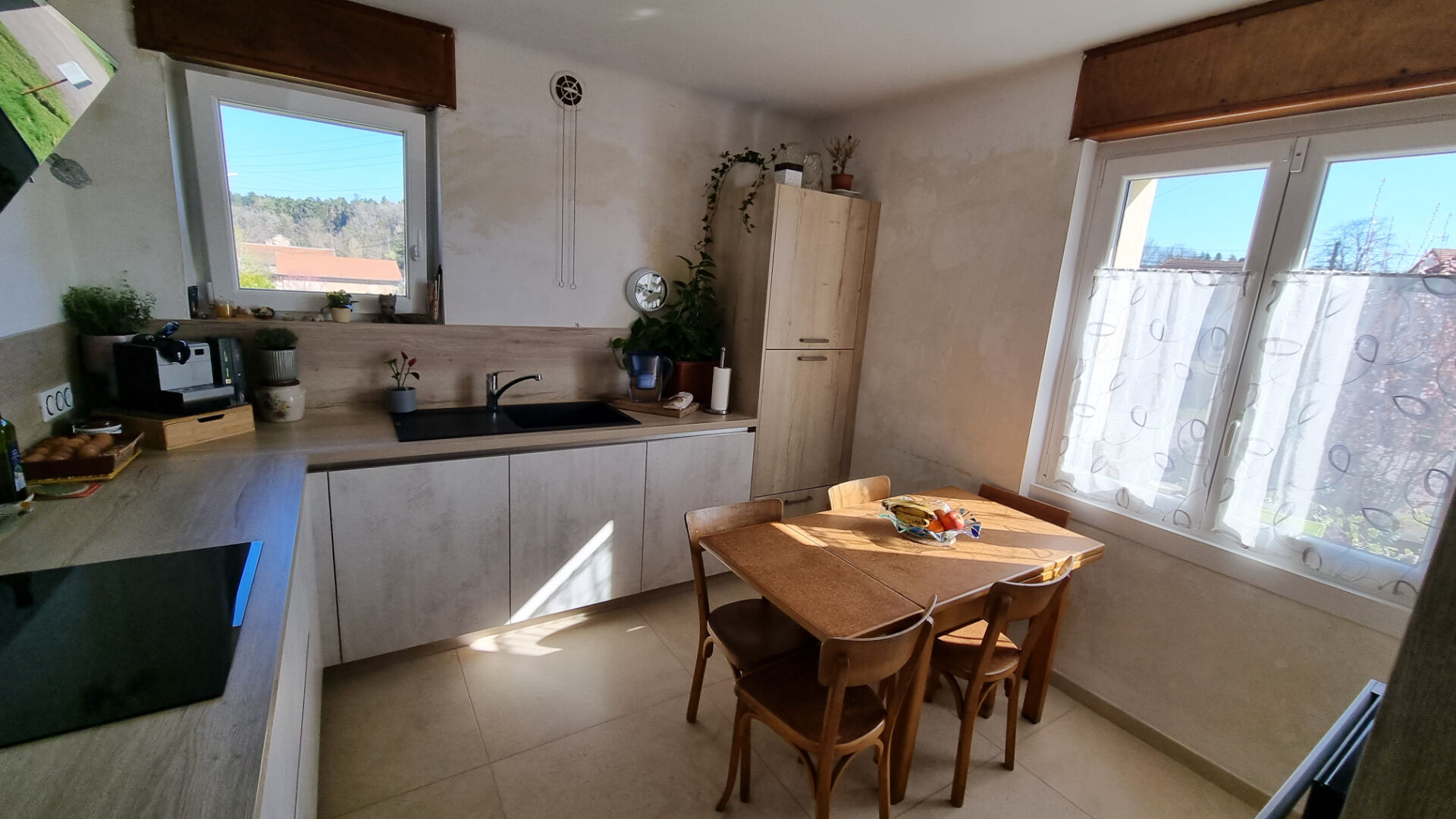 A quelques minutes de SAINT DIE DES VOSGES, Pavillon de 1963 rénové en 2022 par entreprises ( toiture - isolation des combles et isolation des façades extérieures - électricité - chauffage central avec pompe à chaleur avec ballon thermodynamique - porte de garage motorisée - cuisine équipée SCHMITT ) comprenant au rez de chaussée surélevé, entrée avec dégagement ( placard ), cuisine indépendante équipée et aménagée, salon-séjour, 3 chambres, salle de bains, wc ( fosse septique ). A l'étage, 1 chambre et combles aménageables ( électricité et chauffage posés ). Au sous-sol ( plafonds isolés ), garage avec porte motorisée, lingerie, local technique avec chaufferie ( pompe à chaleur - cumulus thermo - tableau électrique ), 1 atelier avec accès extérieur ( possible de créer une cuisine d'été donnant sur jardin ). Double vitrage. Terrain attenant paysager de 1000 m² ( 3 côtés sont clôturés ). T axe foncière 2024 : 655 euros Suite aux travaux de rénovations : classement énergétique en B