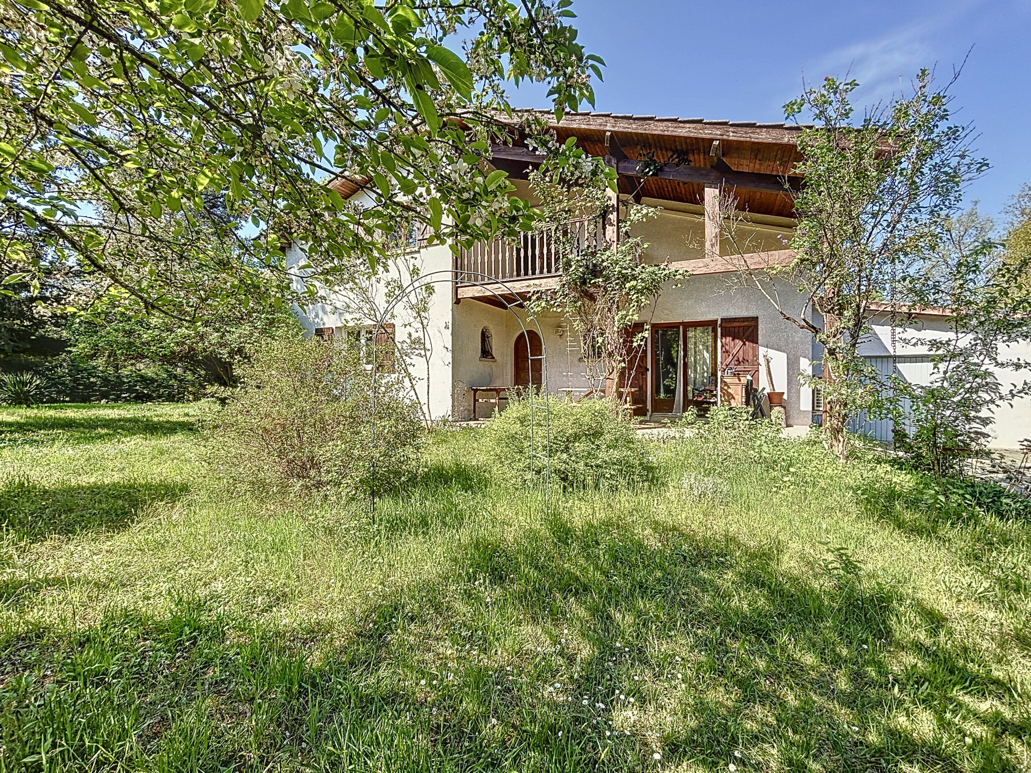Côté extérieur, vous trouverez un joli jardin arboré, deux terrasses carrelées dont une à l'arrière de la maison de 60m2 ainsi qu'un garage de 34 m2.