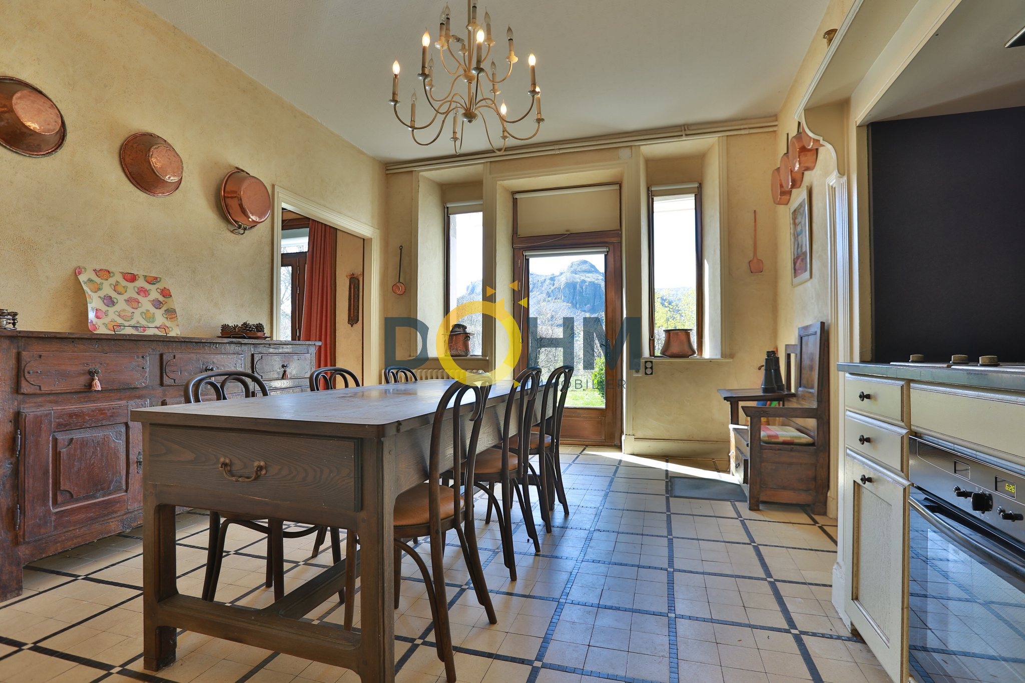 La partie habitable, en rez de jardin est composée d'une cuisine fonctionnelle, ainsi qu'un grand salon séjour séparé avec de beaux volumes ou le charme d'antan donne un aspect authentique et chaleureux.
