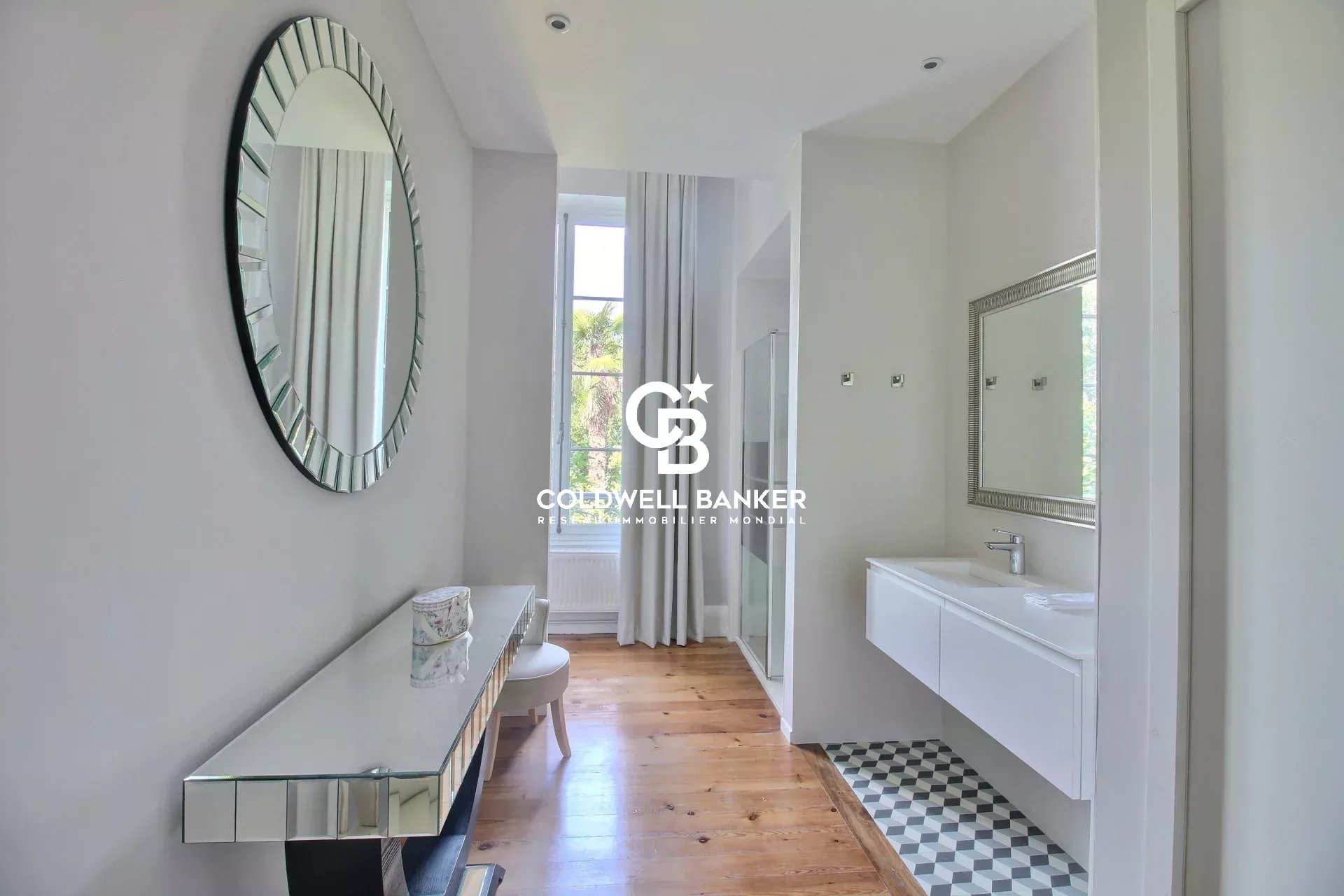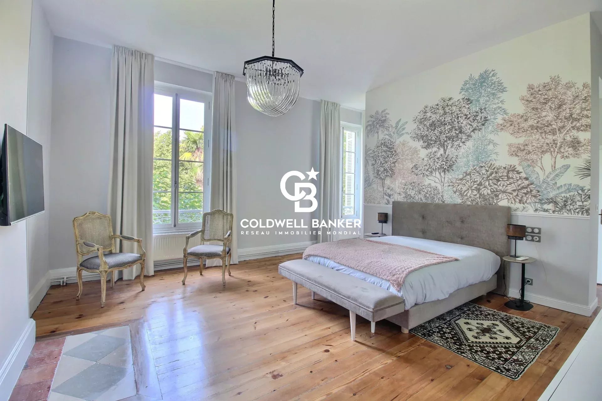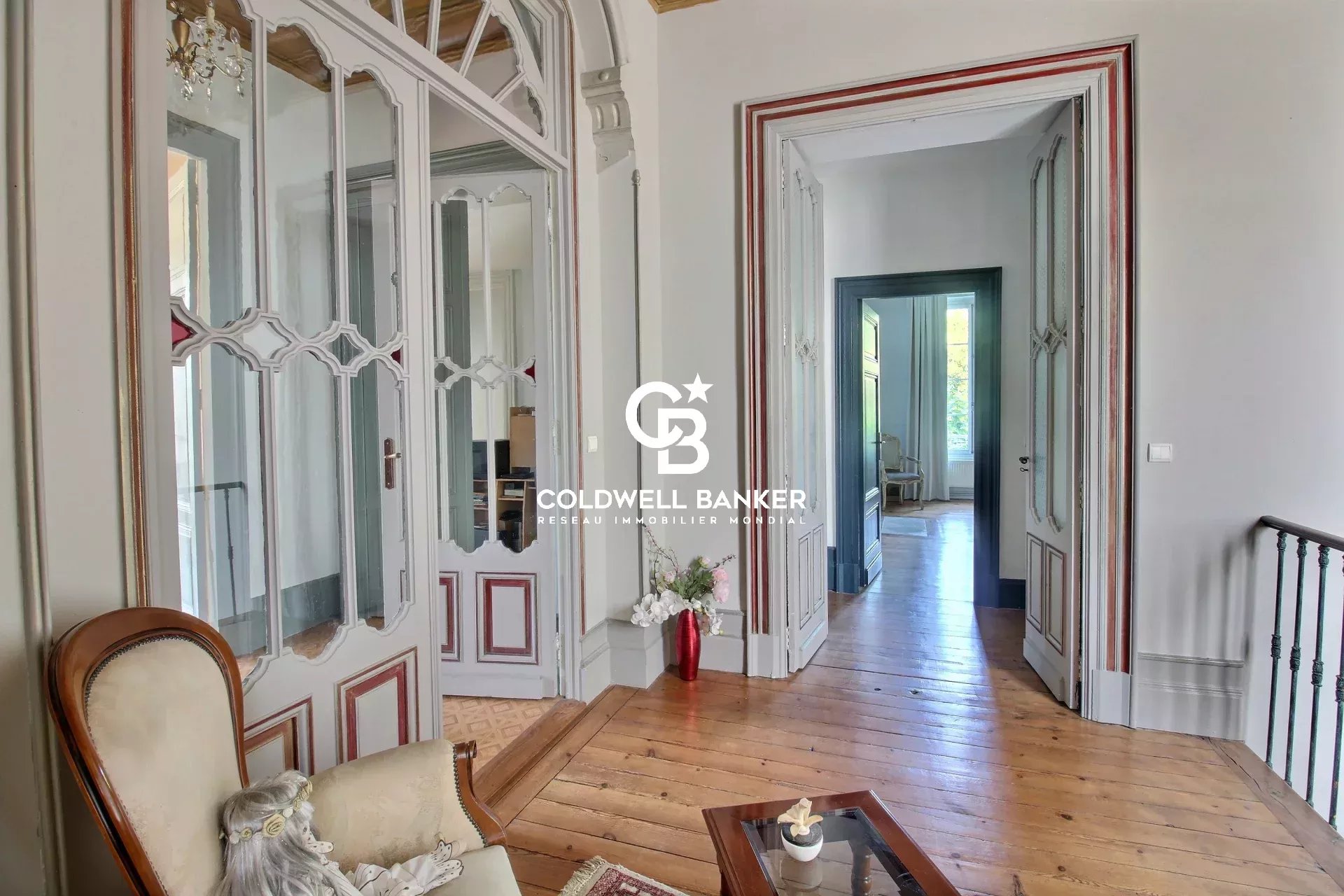 Coldwell Banker Immoba Realty est fier de vous présenter cette exceptionnelle maison de maître du XIXème siècle, dans un parc de plus de 2 000 m², en plein cœur du centre-ville d'Agen, à 5min de la gare TGV reliant Paris, à 1h de l’aéroport international de Toulouse et 1h30 de celui de Bordeaux. Cette superbe construction en pierre du XIXème siècle, hôte d’un ancien restaurant étoilé au Michelin, est une demeure d'exception où luxe, élégance et confort se rencontrent. La bâtisse principale offre une entrée majestueuse, trois salons de réceptions ornés de prestations anciennes, une cuisine de chef étoilé, le tout complètement ouvert sur l’extérieur. Parquet massif, cheminées, grandes fenêtres, boiseries, carreaux ciment, hauteur sous plafond… l'âme de la belle époque se dégage... Un bel escalier en pierre distribue au premier étage cinq chambres spacieuses et quatre salles de bain dont une grande suite parentale. Au second étage, une chambre et sa salle de bain, un espace bureau ainsi qu’un grand grenier de 175 m² aménageable à souhait. Au sous-sol, la surprise : la trace des anciens remparts de la ville sur lesquels a été construit la maison, ainsi que de magnifiques caves. Parking possible pour 20 voitures. Un appartement indépendant T3 (possible gardien) avec entrée séparée complètent cet ensemble. (+ possibilité d'acquérir en sus, un autre appartement T3 loué) Une vraie demeure d’exception alliant authenticité et élégance, parfaite pour une résidence ou une activité de prestige (restauration, chambre d’hôte…). Contactez moi pour organiser une visite privée et laissez-vous séduire par cette perle rare ! DPE C (163), GES C (28) Estimation coûts annuels d'énergie : 5800-8100€/an Honoraires à charge vendeur inclus. Pour plus d'informations, contact : Vincent Macary Agent commercial indépendant RSAC 909 975 096 / RCP 127100479 Retrouvez tous nos biens sur le site IMMOBA.fr