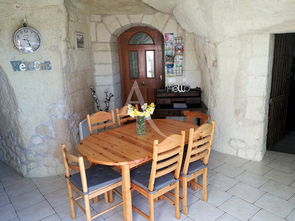 Laissez-vous séduire par cette propriété troglodytique unique d'une superficie de 73 m², offrant une vue exceptionnelle sur le Cher depuis sa terrasse ensoleillée. Située dans une impasse, cette maison allie cachet et confort moderne. Elle se compose d'un salon, d'une salle à manger conviviale, d'une cuisine aménagée et équipée, de deux chambres, d'une salle d'eau et d'un wc séparé. Egalement, d'une impressionnante cave d'environ 300 m de profondeur. Un agréable jardinet complète ce bien avec la possibilité d'y stationner un véhicule. Beau potentiel en exploitation gîte, avec très bon rendement locatif à la clé. Idéale pour un jeune couple, une résidence secondaire pleine de caractère, ou un investissement locatif. Mobilier compris dans la vente.