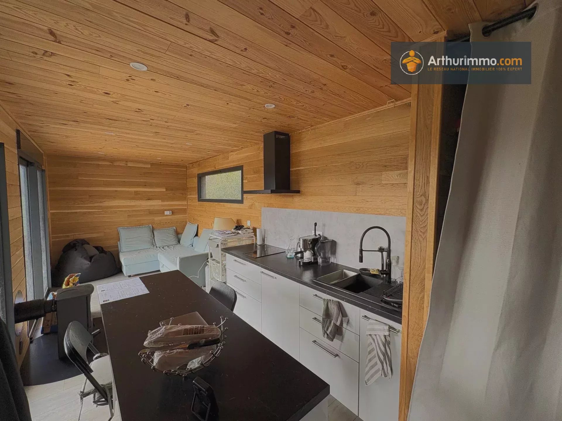 Découvrez ce charmant habitat léger d'environ 30 m², parfaitement agencé offrant confort et fonctionnalité. Idéal comme résidence secondaire ou pour un mode de vie minimaliste. Cette tiny house propose un espace de vie comprenant un séjour avec une cuisine ouverte aménagée et semi-équipée, un salon et une salle à manger avec un placard, une salle d'eau moderne avec toilettes et douche à l'italienne, ainsi qu'une chambre avec dressing. À l'extérieur, une belle terrasse en mélèze prolonge l'espace de vie et offre un cadre parfait pour profiter des beaux jours. Important : la vente concerne uniquement la tiny house, aucun terrain n'est inclus. Cette habitation peut être déplacée suite à l'achat d'un terrain, vous permettant ainsi de choisir le cadre de vie qui vous correspond le mieux. Construction en chêne et pin de 2023. Double vitrage ALU. Poêle à bois. Chauffe-eau 80L. Toilettes sèches. Isolation murs et plafond sur 20 cm de fibre de bois. Toit terrasse. À découvrir sans tarder ! Honoraires charge vendeur. Pour plus d'informations : Arthurimmo.com Lavelanet, 2 avenue Alsace Lorraine 09300 LAVELANET, ouvert du lundi au vendredi, de 9h à 12h et de 14h à 18h, le samedi de 9h à 12h. Tél : 05 34 14 64 66 Plus d'infos : Arthurimmo Lavelanet, 2 avenue Alsace Lorraine, du lundi au vendredi, de 9h à 12h, et de 14h à 18h, le samedi, de 9h à 12h, et sur rendez-vous. Tél : 05.34.14.64.66