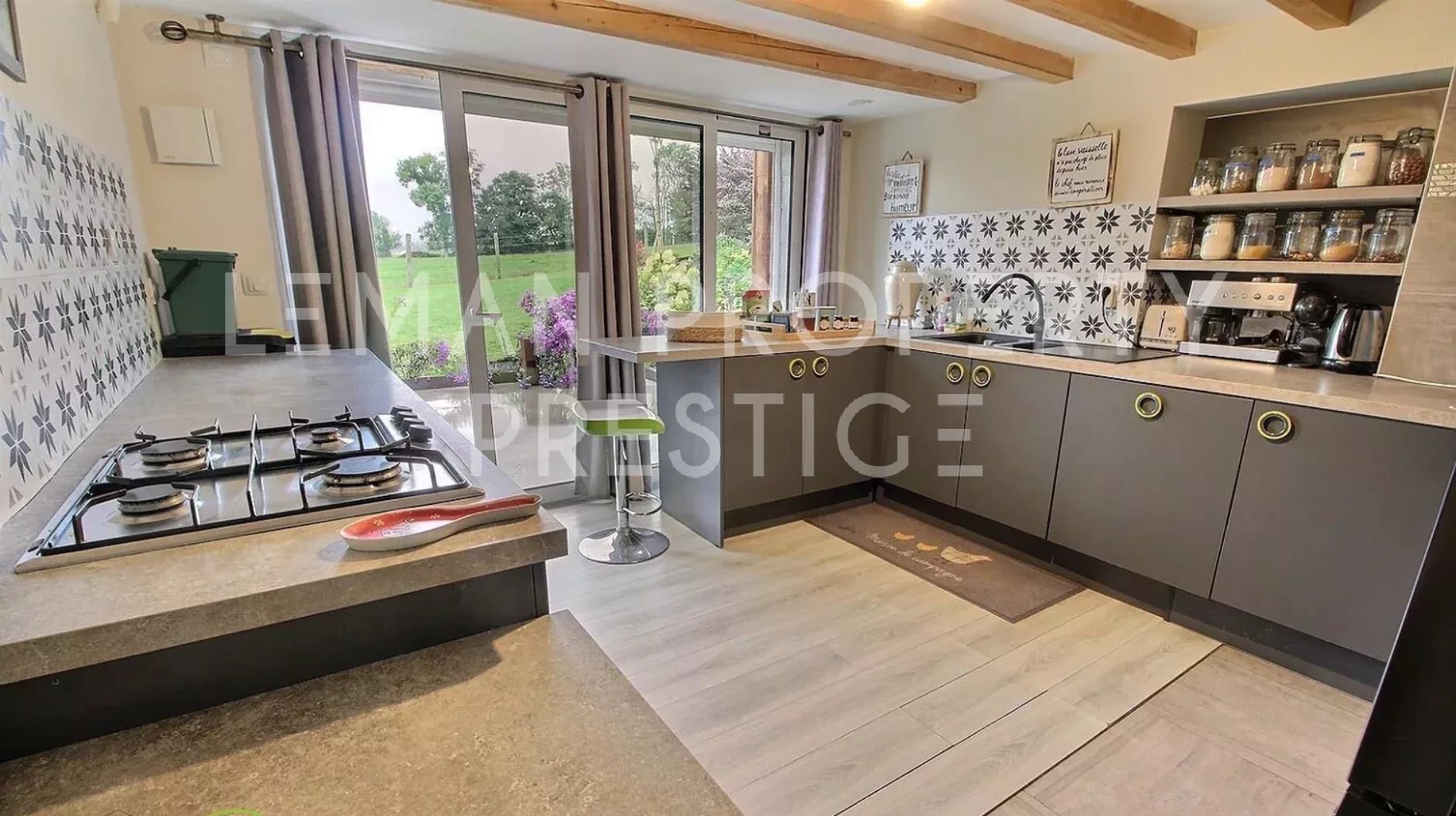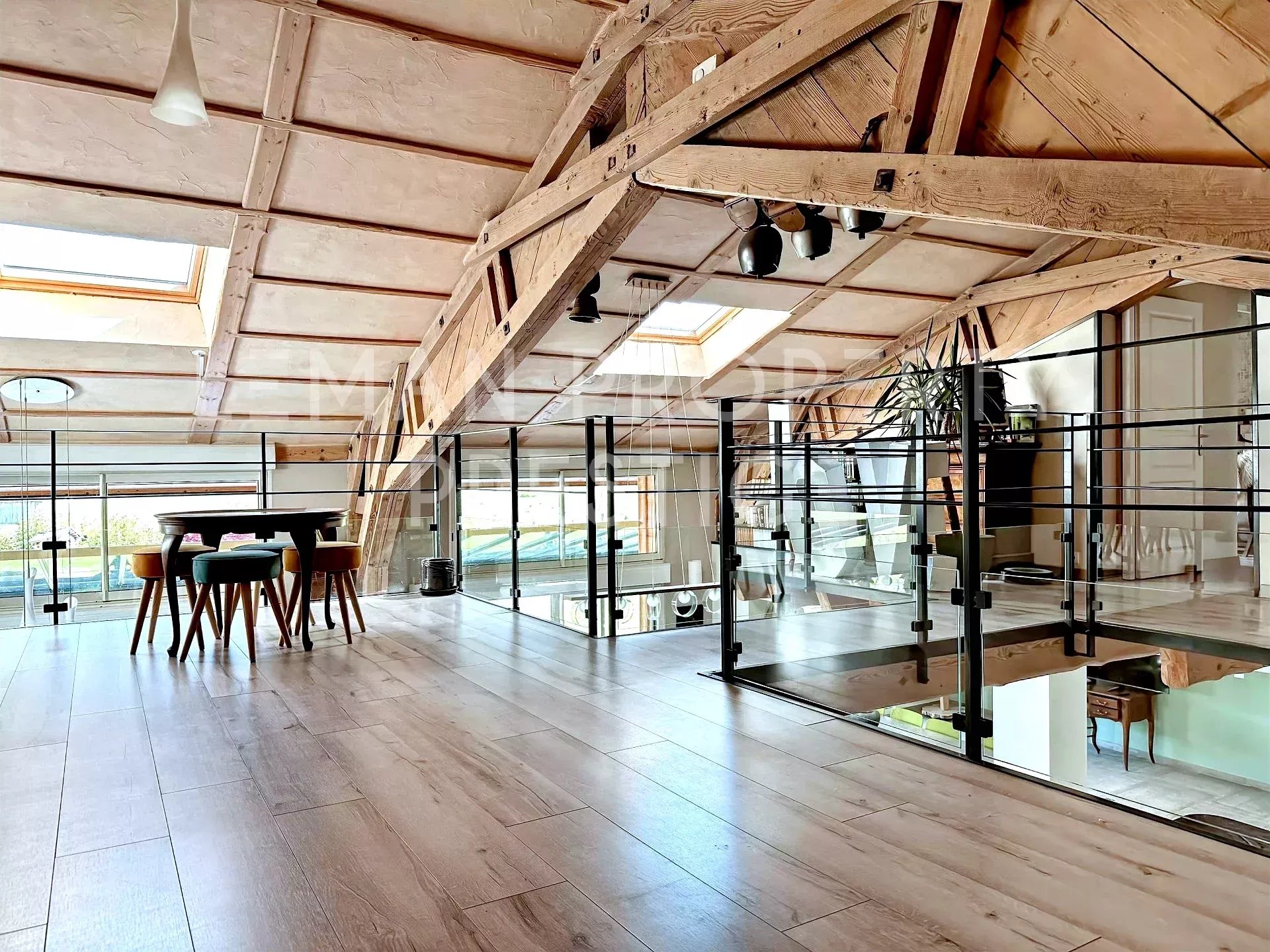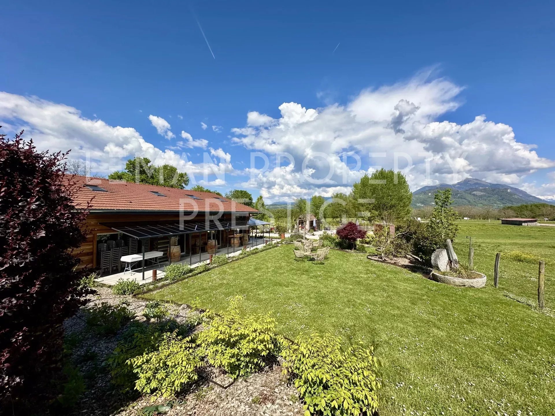 Découvrez une propriété unique au cœur des paysages alpins, offrant une vue panoramique à 360° sur les montagnes environnantes. Ce bien rare dans le marché qui est initialement un Gîte de 4 étoiles, est proposé aujourd'hui à la vente devenant une réelle opportunité d'acquérir une propriété hors du commun. Ceinturée de plusieurs hectares Agricoles Protégées, cette propriété est composée de deux bâtisses d'environ 400m2 habitables au total, édifiées sur un terrain de plus de 4600m2. Construction de 1999 et rénovée au fil du temps, le bien propose un style moderne avec des belles finitions et des matériaux de qualité. Alliant tranquillité et accessibilité, bénéficiant d'une situation extraordinaire à seulement 15 minutes de Genève, 25 minutes d’Annecy et 35 minutes des pistes de ski. La première maison de 310 m² dispose d'une vaste pièce de vie d'environ 110m2, où la lumière naturelle est abondante grâce à ses grandes ouvertures. Vous serez séduits également par la belle hauteur sous plafond, la mezzanine qui surplombe ce volume en harmonie ainsi que par le majestueux poêle suédois en pierre réfractaire qui domine cette pièce. La cuisine indépendante est entièrement équipée avec des équipements de qualité professionnelle. L'espace nuit pour cette bâtisse est de 6 chambres, dont 3 suites avec sa propre salle d'eau, une salle de bains et 6 toilettes au total. La seconde, d'environ 90 m² se dispose ainsi : Au rez-de-chaussée : une cuisine équipée et moderne, ouverte sur la pièce de vie traversante et baignée de lumière. Cet espace charmant et cosy et agrémenté d'un poêle à bois et donne sur une terrasse privative. Une salle d'eau avec douche italienne et toilettes. Une pièce de rangement et installations techniques. À l'étage : Deux chambres. Ne manquez pas cette opportunité rare d’acquérir un bien d’exception bénéficiant de cette situation idyllique. Contactez-nous dès maintenant pour organiser une visite et laissez-vous séduire par le charme et le confort de cette propriété. NB : - Une source est captée dans le terrain que vous pourrez exploiter. - Il existe la possibilité d'acquérir davantage de terrain agricole pour vos projets personnels. Honoraires à charge du vendeur. Énergie - Consommation conventionnelle 212.3 kWhEP/m².an (D) Énergie - Consommation finale 157.5 kWhEF/m².an (C) Énergie - Estimation des émissions 6.5 kg CO2/m².an (B) « Les informations sur les risques auxquels ce bien est exposé sont disponibles sur le site Géorisques : georisques.gouv.fr ».