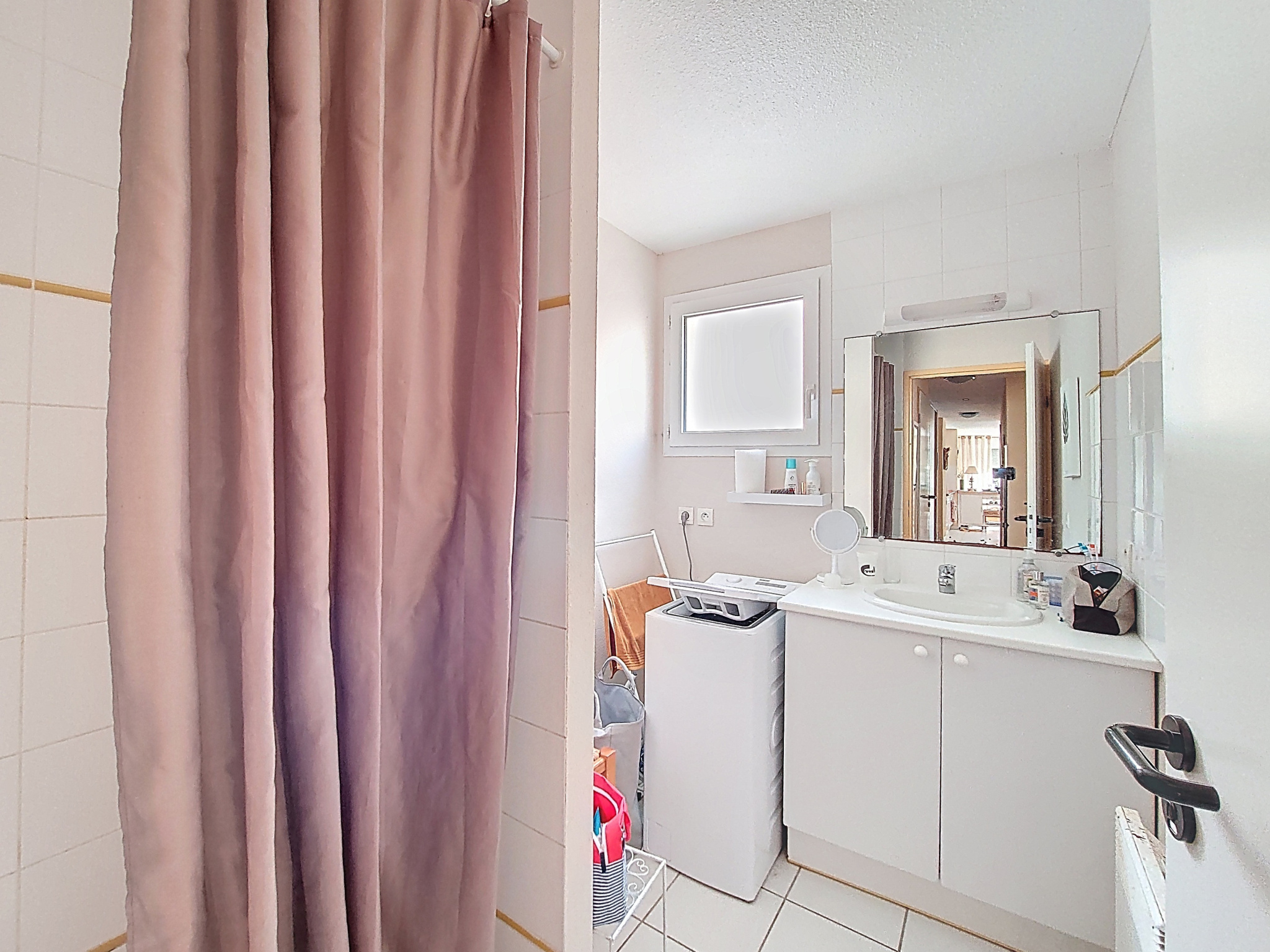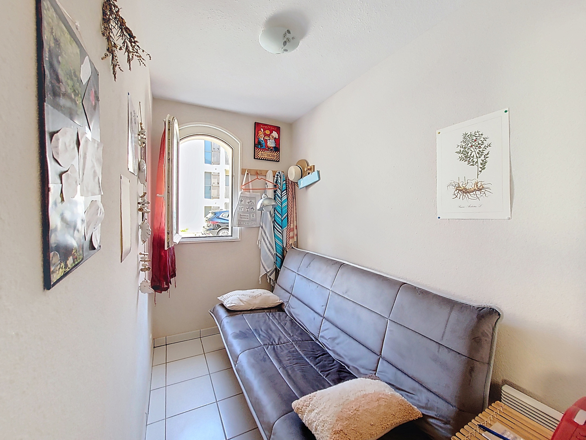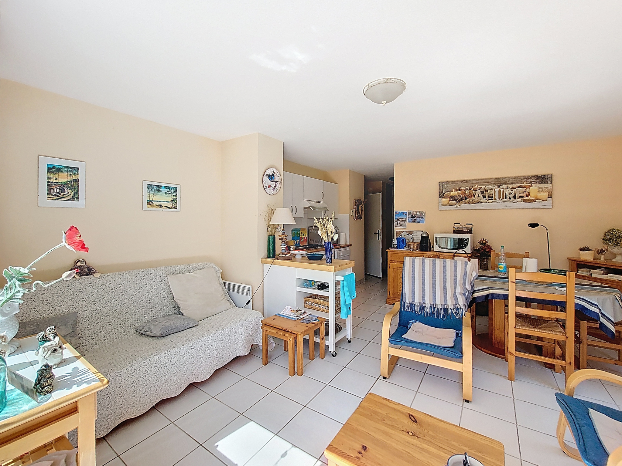 L'espace de vie comprend une cuisine fonctionnelle, ouverte sur salon séjour, une chambre avec placard intégré, ainsi qu'une chambre cabine pouvant accueillir un couchage en 140. Une salle d'eau et un WC indépendant complètent cet agencement optimisé.
