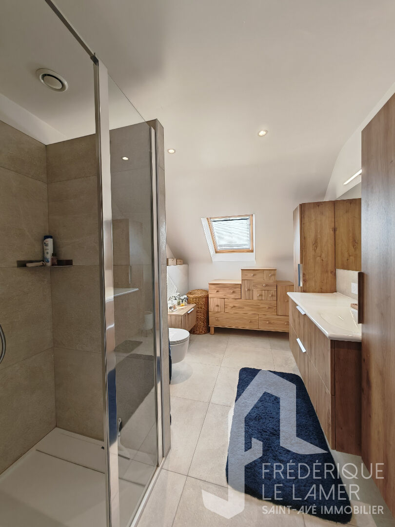 SAINT AVE - FREDERIQUE LE LAMER - SAINT AVE IMMOBILIER Située en impasse sur une parcelle de 1399 m², coup de coeur pour cette maison spacieuse, baignée de lumière, qui offre à ce jour plusieurs possibilité, une seule entité d'une superficie totale de 188 m² ou deux logements séparés avec accès et entrée indépendants , Parfait pour bénéficier d'un revenu locatif, installer son activité professionnelle ou un projet intergénérationnel. Le premier logement va vous séduire par sa très belle pièce de vie, il comprend : - entrée , WC, séjour avec poêle à bois, cuisine ouverte aménagée et équipée, vaste salon baigné de lumière, et grand bureau/salon TV Belle terrasse conviviale Garage et cellier - au demi-niveau supérieur : dégagement, deux chambres, salle d'eau Jardin arboré Le second logement va vous permettre d'accueillir un proche, concrétiser votre projet professionnel, générer du revenu locatif. Il est composé : - entrée, séjour, chambre, pièce pour cuisine, cellier, dégagement avec rangement, WC, salle d'eau. Plusieurs espaces pour stationner vos véhicules N'hésitez pas à nous contacter pour des photos supplémentaires. CE QUE L'ON AIME : luminosité volumes généreux très bon état général LES PLUS : revenus locatifs possible entrée séparée pour préserver l'intimité Prêts à accueillir ses nouveaux habitants Un bien rare à découvrir sans tarder (4.50 % honoraires TTC à la charge de l'acquéreur.)
