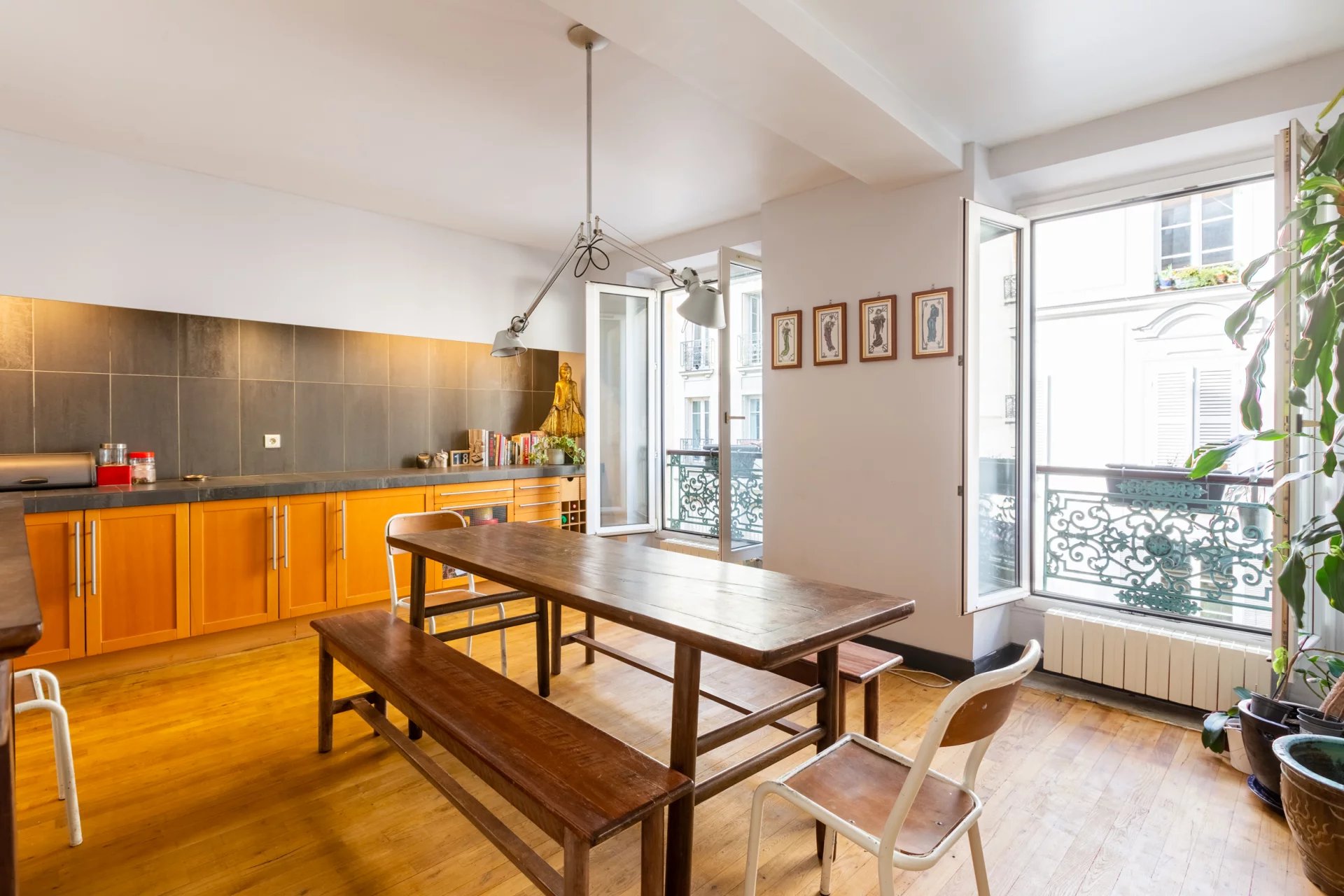 Cleo propose à la vente un appartement familial de 154m² (4 ch) au 3ème étage d’un immeuble en pierre de taille situé rue du Paradis. La visite révèle d'abord un séjour qui distribue une belle enfilade de pièces avec 6 fenêtres : une grande cuisine / salle à manger, le séjour et une chambre de 24m². Une deuxième chambre, sur cour, qui peut aussi faire office de bureau, jouxte cet espace avec une salle d'eau. A l'opposé, on découvre deux autres chambres spacieuses sur cour avec salles de bains attenantes. Une des deux chambres jouit également d'un grand dressing. Des WC invités et de nombreux rangements complètent la description. Idéalement situé dans le quartier vivant et recherché de Saint-Denis Paradis, découvrez une opportunité rare au cœur du 10ème arrondissement. À deux pas des lignes de métro 4 et 7. Accès à pieds aux Gare de l'Est et Gare du Nord. Parking Indigo à proximité. A noter : 3ème étage avec ascenseur. Chauffage individuel à condensation (gaz). Charges de copropriété : 320€ / mois. Appartement constitué de deux lots de copropriété désignés comme bureaux au règlement de copropriété. Une activité commerciale paraît donc envisageable pour les besoins mixtes habitation / bureaux. Frais d'agence réduits : 1,85%.