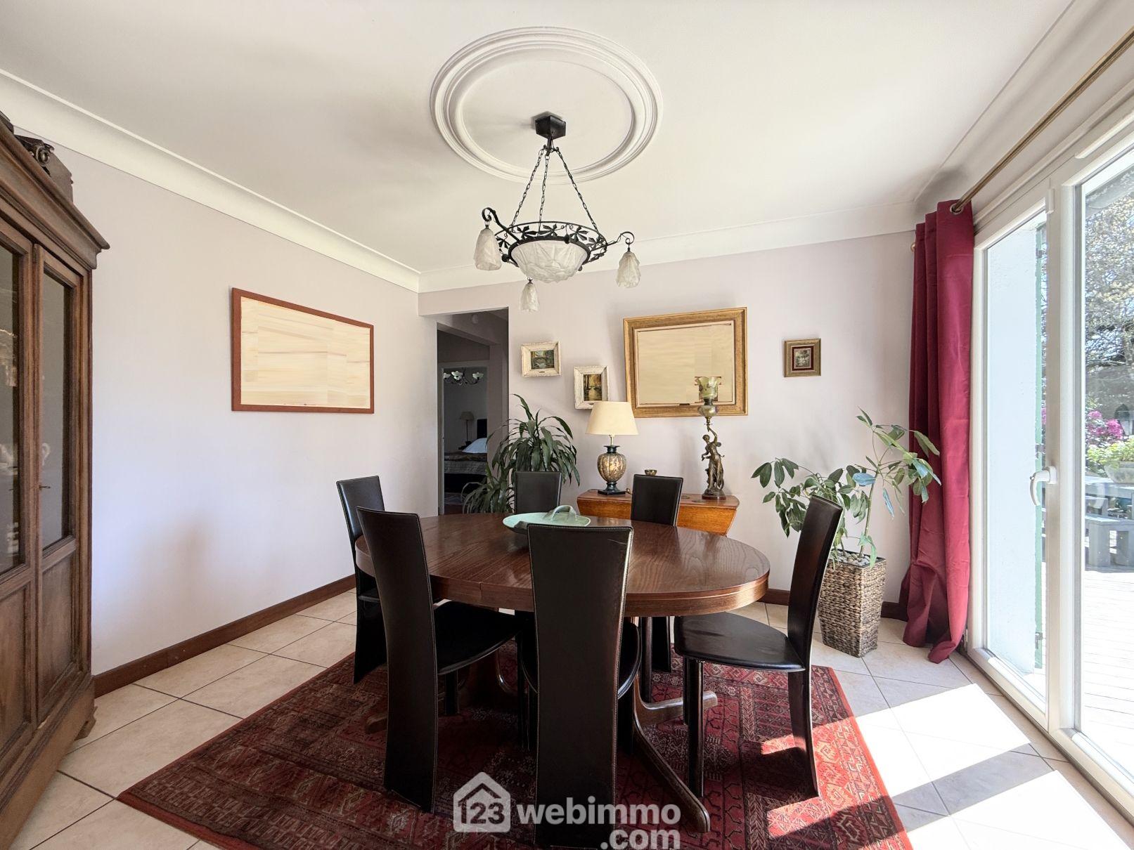 La maison se compose au rez-de-chaussée, d'un hall d'entrée avec dressing, d'un ensemble d'espaces ouverts les uns vers les autres de 55 m², à savoir une cuisine SCHMIDT aménagée et équipée de 11 m² ouverte sur le salon de 31 m² avec cheminée et un espace salle à manger de 13 m². Au sud le rez-de-chaussée se poursuit par une chambre de 15 m² avec dressing, un bureau aménageable en chambre de 15 m² dont la baie vitrée, tout comme celle du salon et de la salle à manger, s'ouvre sur la terrasse de 40 m² orientée sud-ouest. Une grande salle de bains avec 2 lavabos, baignoire et douche de 7 m² ainsi qu'un WC séparé avec lave-mains et un débarras parachèvent ce rez-de-chaussée de 100 m².