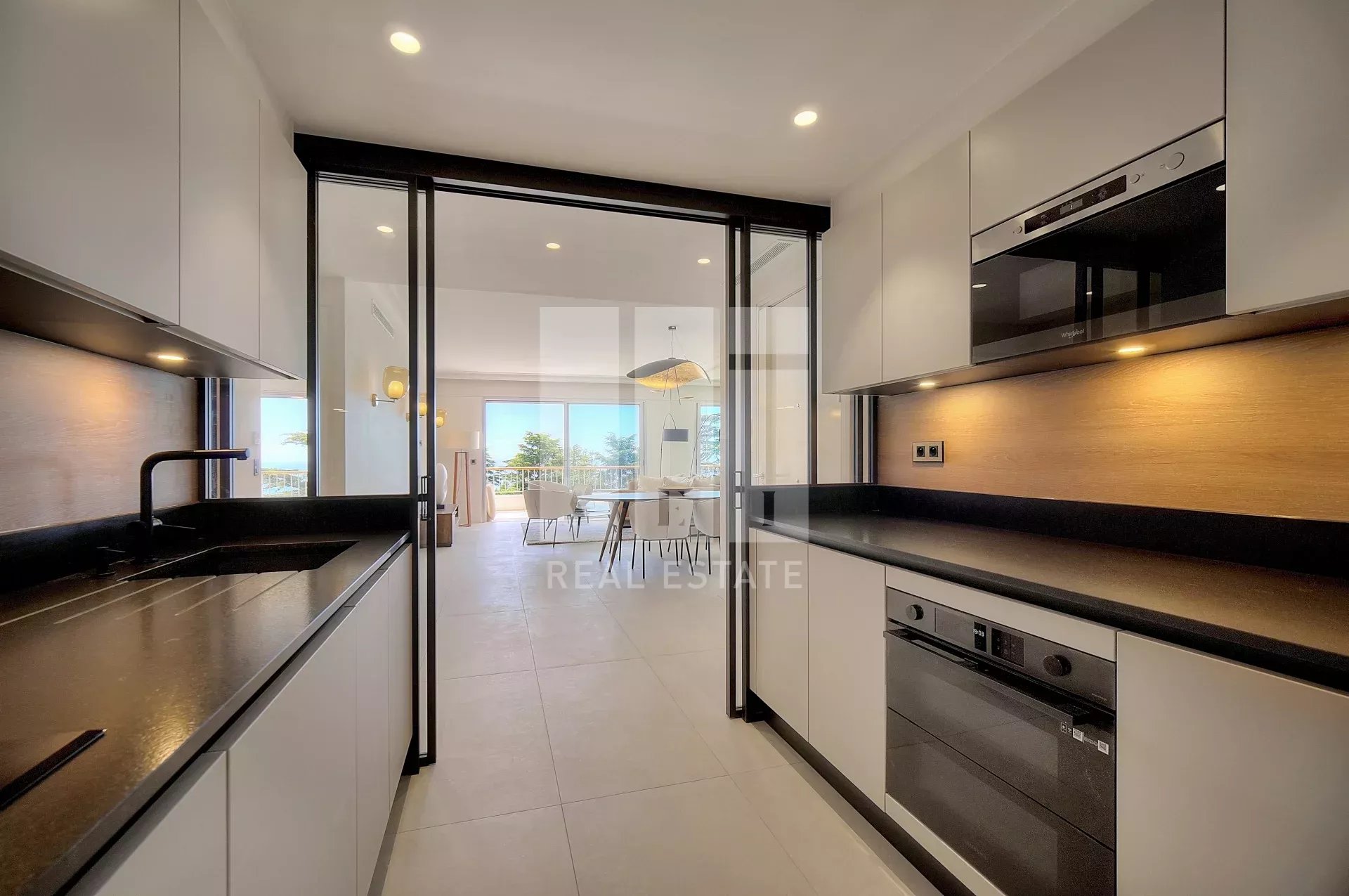 Situé dans le prestigieux secteur résidentiel de Cannes Californie, cet appartement se trouve dans une résidence sécurisée offrant de nombreux services : conciergerie 24h/24, piscine, golf, parc, tennis, terrain de basket, aire de jeux pour enfants, salle de fitness et navette privée assurant plusieurs rotations par jour vers le centre-ville de Cannes. Ce superbe appartement traversant de 4 pièces, entièrement rénové, est équipé de la climatisation intégrée et de la domotique. Il comprend un hall d'entrée, un lumineux séjour ouvrant sur une terrasse avec vue panoramique sur la mer et le parc, une cuisine neuve entièrement équipée, une grande chambre en suite orientée plein sud avec accès à la terrasse, un dressing aménagé, une salle de douche avec double vasque et WC, un toilette indépendant, ainsi que de nombreux placards de rangement. Deux autres chambres sont présentes, dont une très grande avec placard intégré, une salle de douche et WC. L'appartement est vendu avec une cave. Possibilité d'acquérir en plus un spacieux garage doté d'une porte électrique .