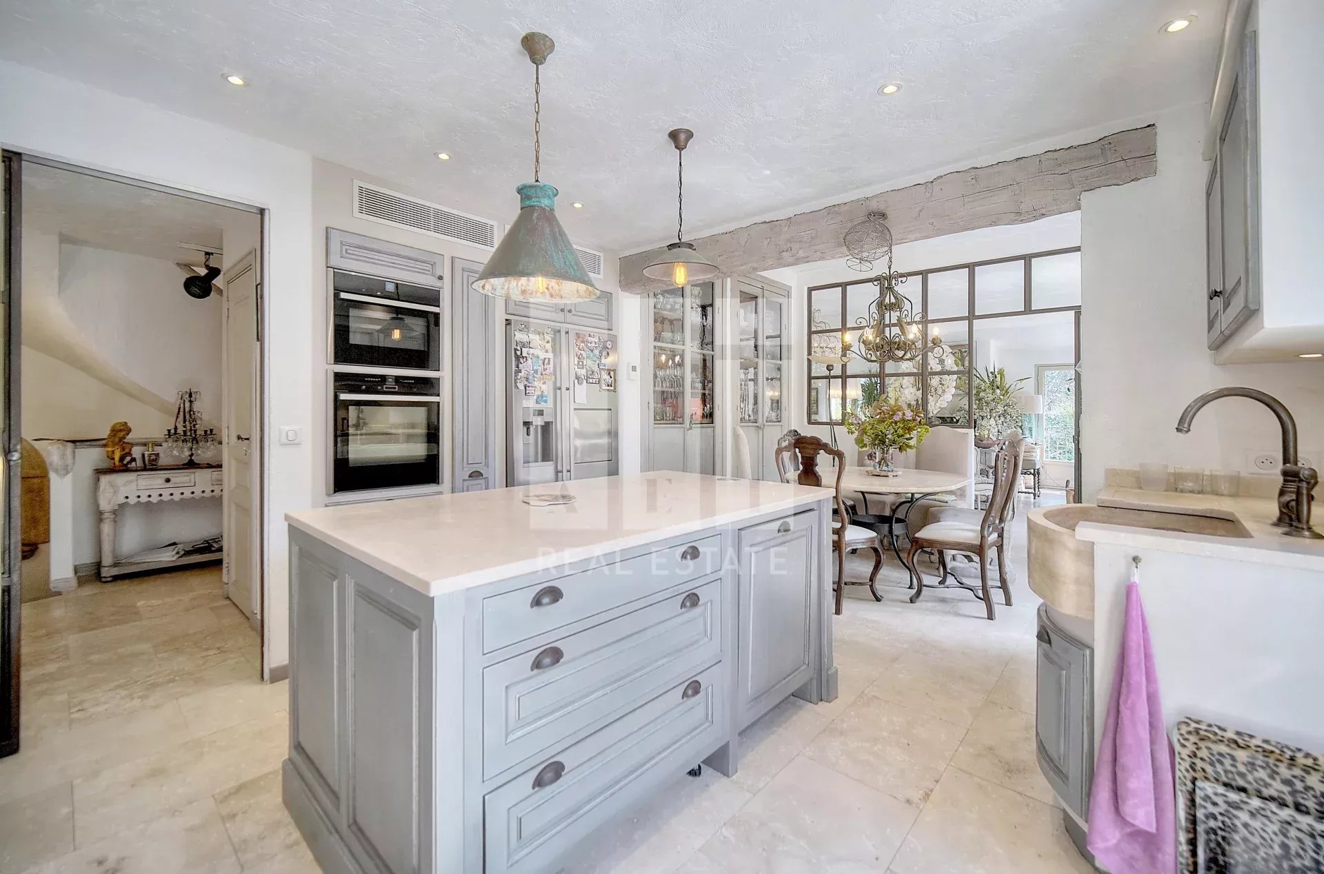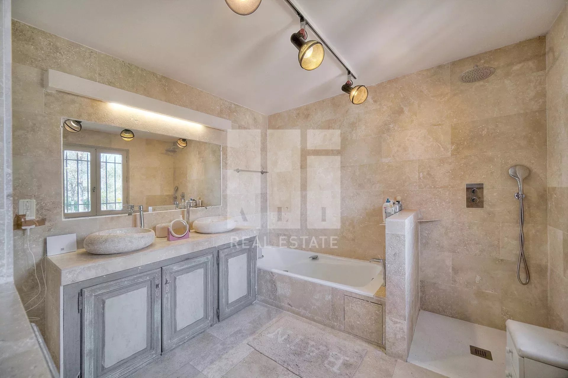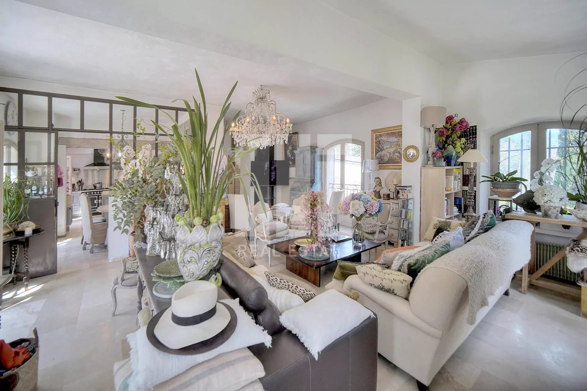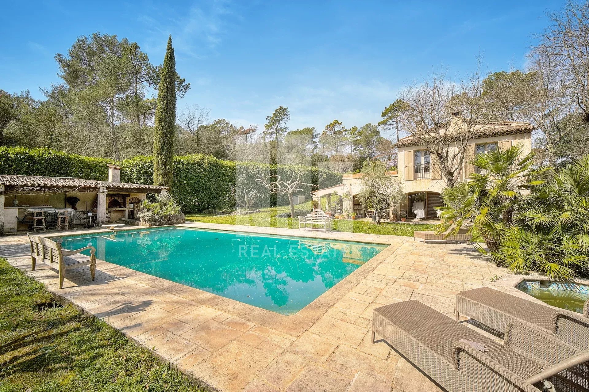 Située à Valbonne, au calme et à l'abris des regards, sans vis à vis, superbe propriété dans son écrin de verdure aux portes de la foret et proche des commodités. La propriété sur 7000 m2 de terrain plat, idéale pour les amoureux de la nature et des chevaux, se prête pour y faire une écurie privée avec son accès direct à la forêt. La partie habitation se compose d'un Mas de 360 m2 sur 3 niveaux : Rez-de-jardin : entrée, cave , pièce à aménager de 80 m2 environ, 1 buanderie et 1 bureau le tout ouvert sur une large terrasse couverte. Rez de jardin supérieur : salon séjour ouvert sur terrasse avec vue foret jardin et piscine 3 chambres avec ouvertures sur le jardin 2 salles de bain avec douche et wc A l'étage : chambre de maitre avec double dressing , salle de bain avec douche, baignoire et wc ,le tout ouvert sur 3 terrasses tropeziennes L'espace extérieur dispose d'une piscine, d'un Jacuzzi avec pool house à aménager, une large terrasse en pierre. Un carport pour stationner 2 voitures, une dépendance à rénover, actuellement aménagée en studio avec mezzanine. Un atelier avec un abris de rangement pouvant être amménager selon vos besoins Possibilité d'agrandir la propriété avec un terrain voisin de 9000 m2 non constructible. Eau par forage avec puit Une partie des 7000 m2 de terrain peut être détachée et est constructible pour une surface au sol de 100 m2 soit 200 m2 zone à 2000 m2.