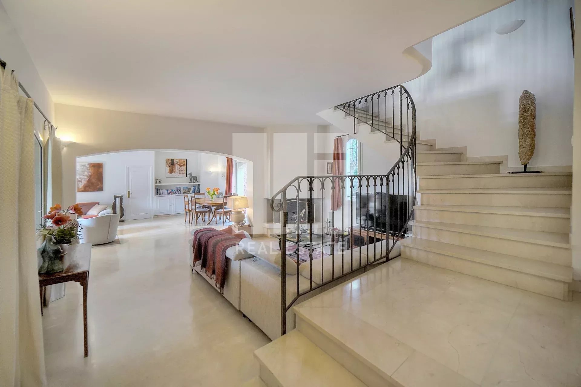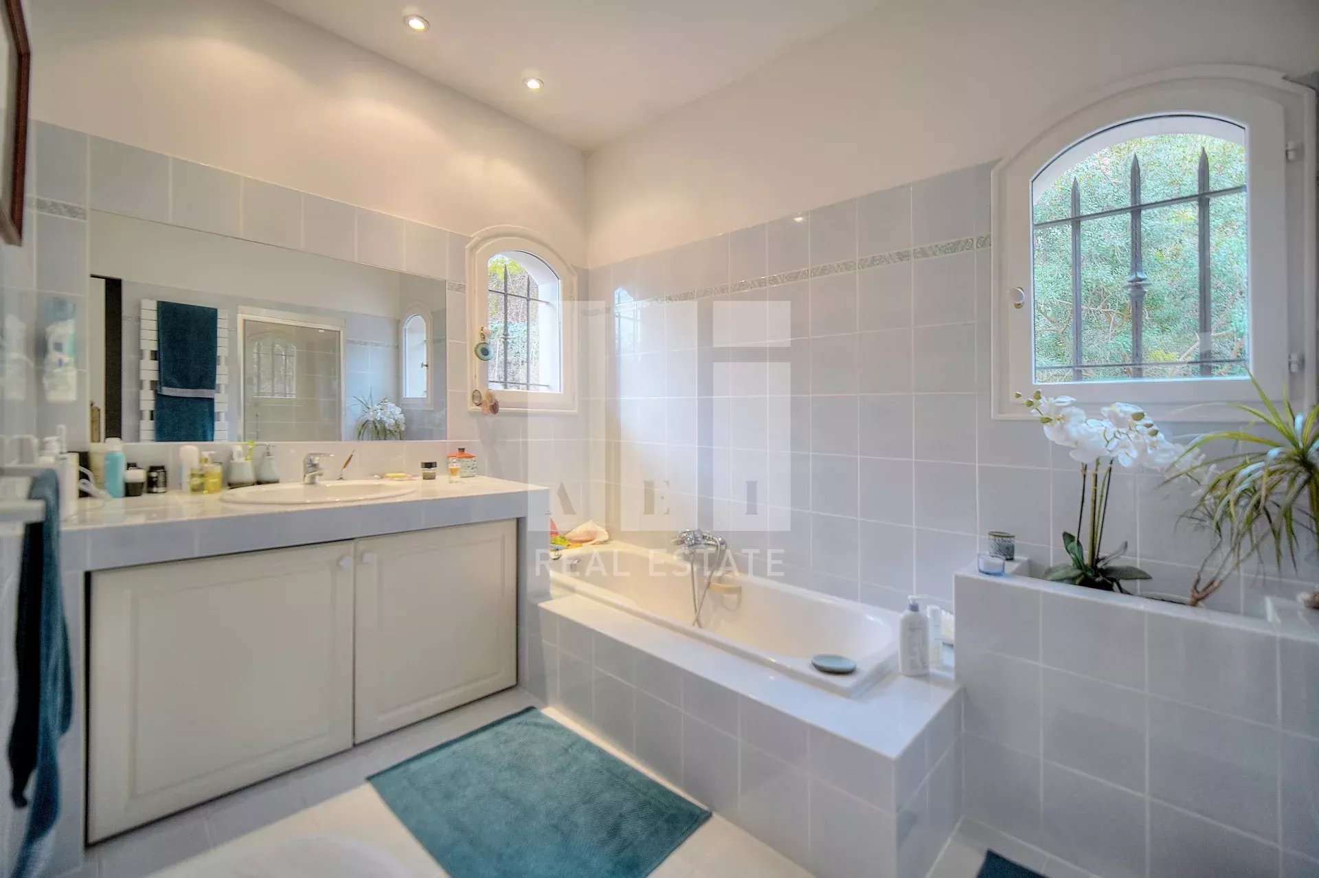 Superbe villa familiale idéalement située sur la commune de Châteauneuf-de-Grasse à proximité immédiate du village de Valbonne et de toutes les commodités, au calme avec une vue dégagée. Dans un écrin de verdure, venez découvrir cette maison d'architecte d'environ 260 m² sur un joli terrain paysagé de 2 530m² avec piscine et pool house. La villa se compose comme suit : Au rez-de-chaussée : entrée, double séjour (salon cheminé, salon TV), cuisine indépendante, salle à manger, 1 chambre de maître (salle de bains et dressing), 3 chambres, 1 salle de douche/WC, 1 buanderie. Très belles terrasses couvertes devant la cuisine. A l'étage : 1 bureau avec projecteur cinéma (possibilité 5ème chambre) Sise sur un très beau terrain entièrement paysagé, vous profiterez du pool house avec sa cuisine d'été et salle d'eau/WC. Rare ! Une source avec un bassin à poissons (carpes koï, etc...) sur le terrain permet l'arrosage toute l'année du jardin avec potager et arbres fruitiers. Un double garage, un atelier, une cave à vin, et des espaces de rangements complètent ce bien. A découvrir rapidement !