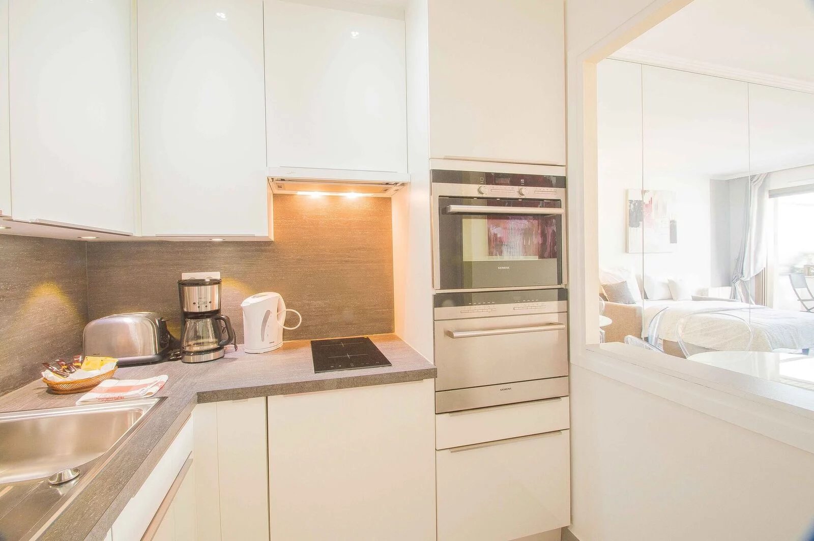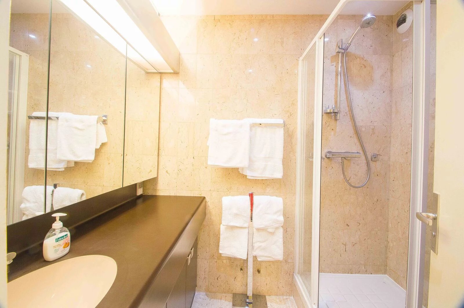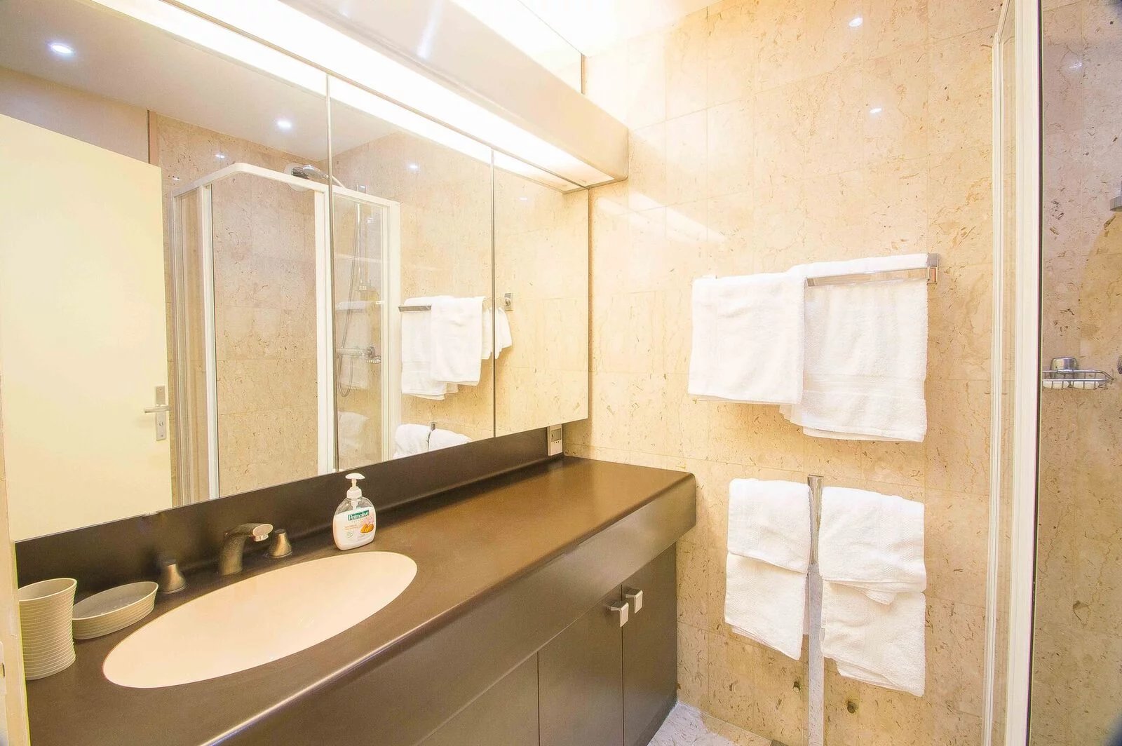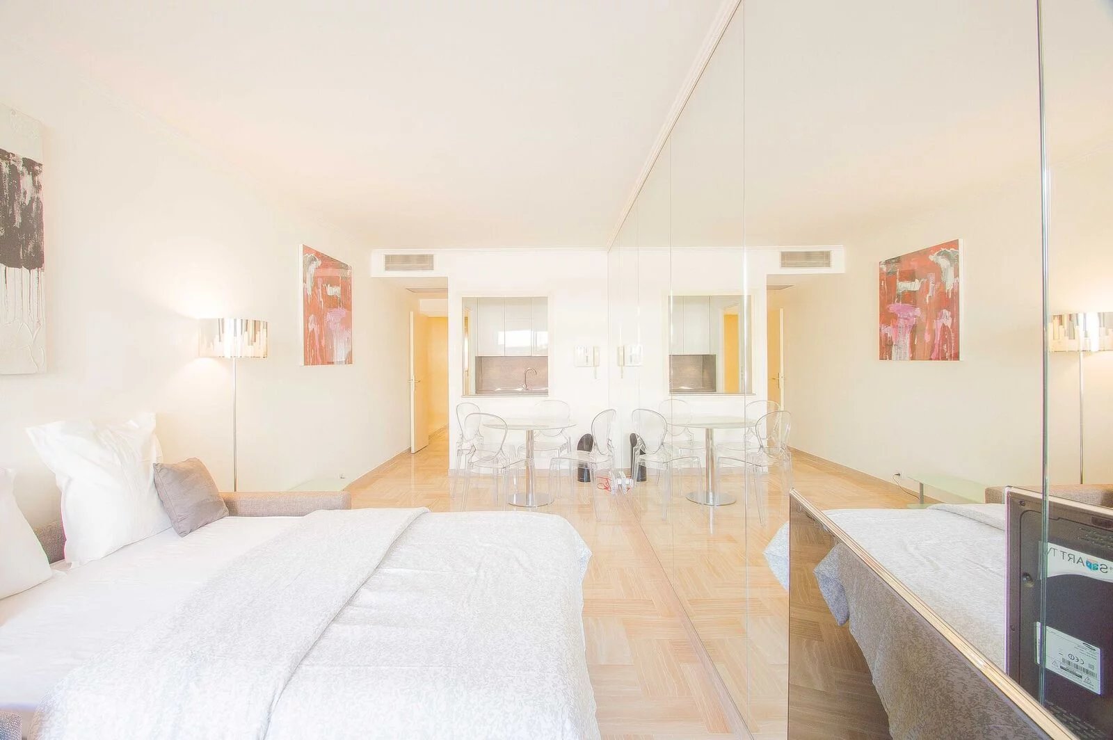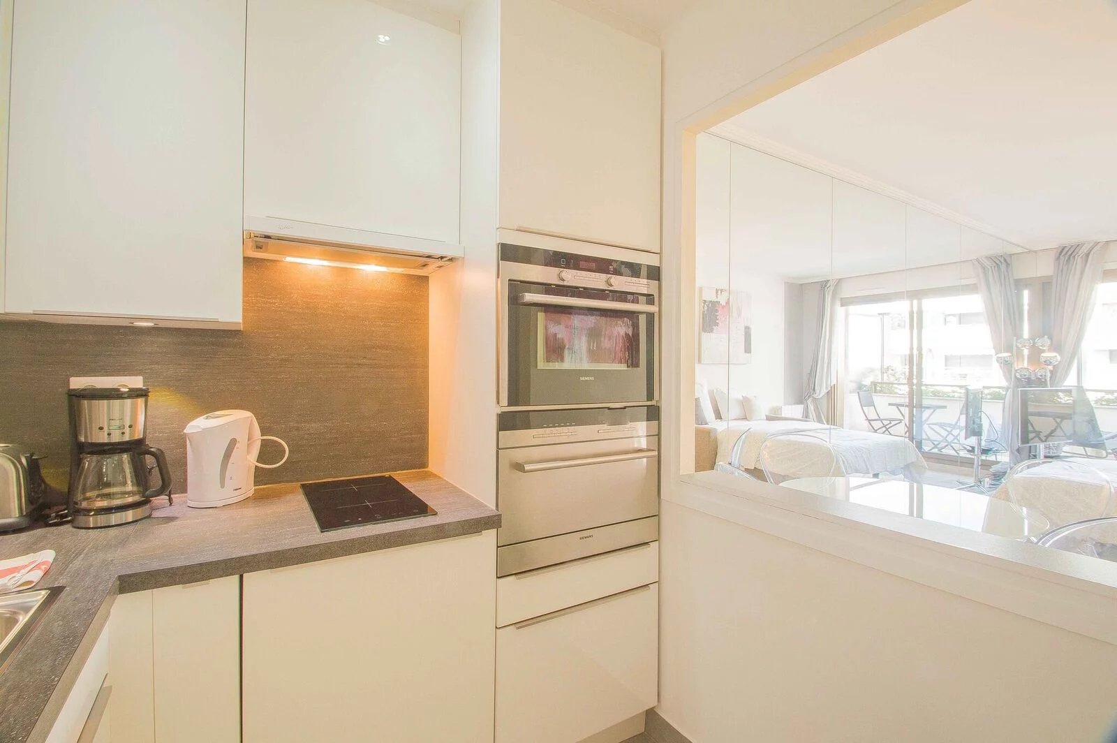 Magnifique appartement entièrement rénové avec goût au 6ème étage. Il est composé d'une entrée avec rengements, une salle de douche, une cuisine indépendante (ouverte avec un bar) entièrement équipée (four, micro-onde, grille-pain, machine à café, plaques de cuisson, hotte, lave vaisselle) Un coin repas, un canapé lit de qualité, une télévision à écran plat. Et la terrasse avec un transat. Appartement idéal pour séjours de vacances en couple comme pour les séjours professionnels seul.