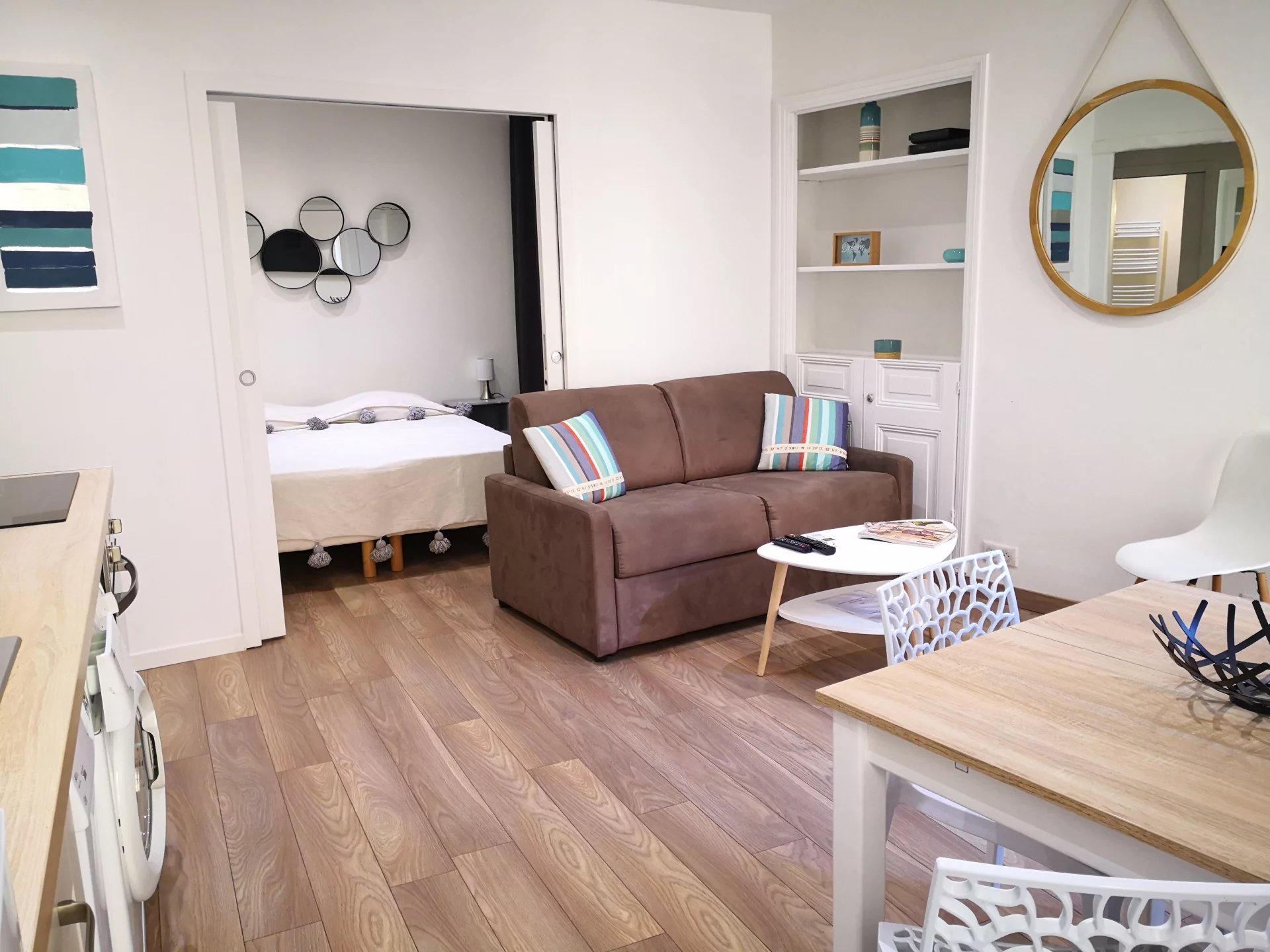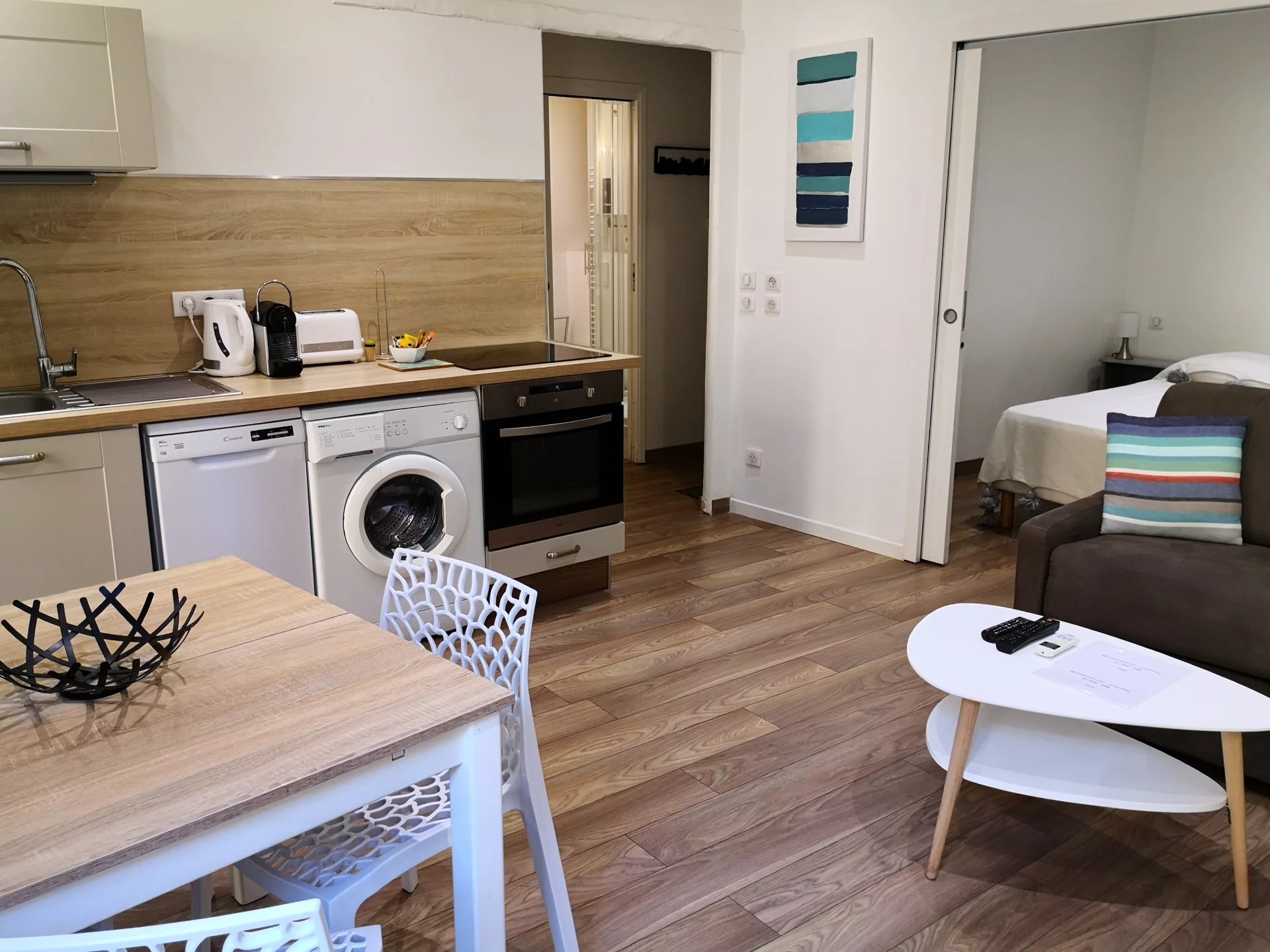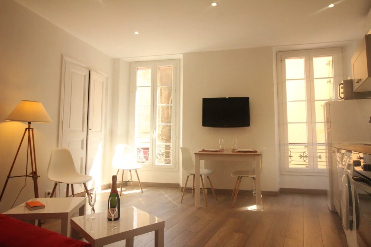 Dans un beau petit immeuble aux accents de provence, appartement de Type 3 P pouvant accueillir jusqu'à 6 personnes. Cez logement se compose d'une entrée, un salon avec une cuisine américaine, une chambre avec salle d'eau en suite, un coin nuit, une seconde salle de douche. Cet appartement a été entièrement rénové en 2017. Prestations de qualité, acces internet, lave linge, lave vaisselle, double vitrage, climatisation, chaines TV internationales.