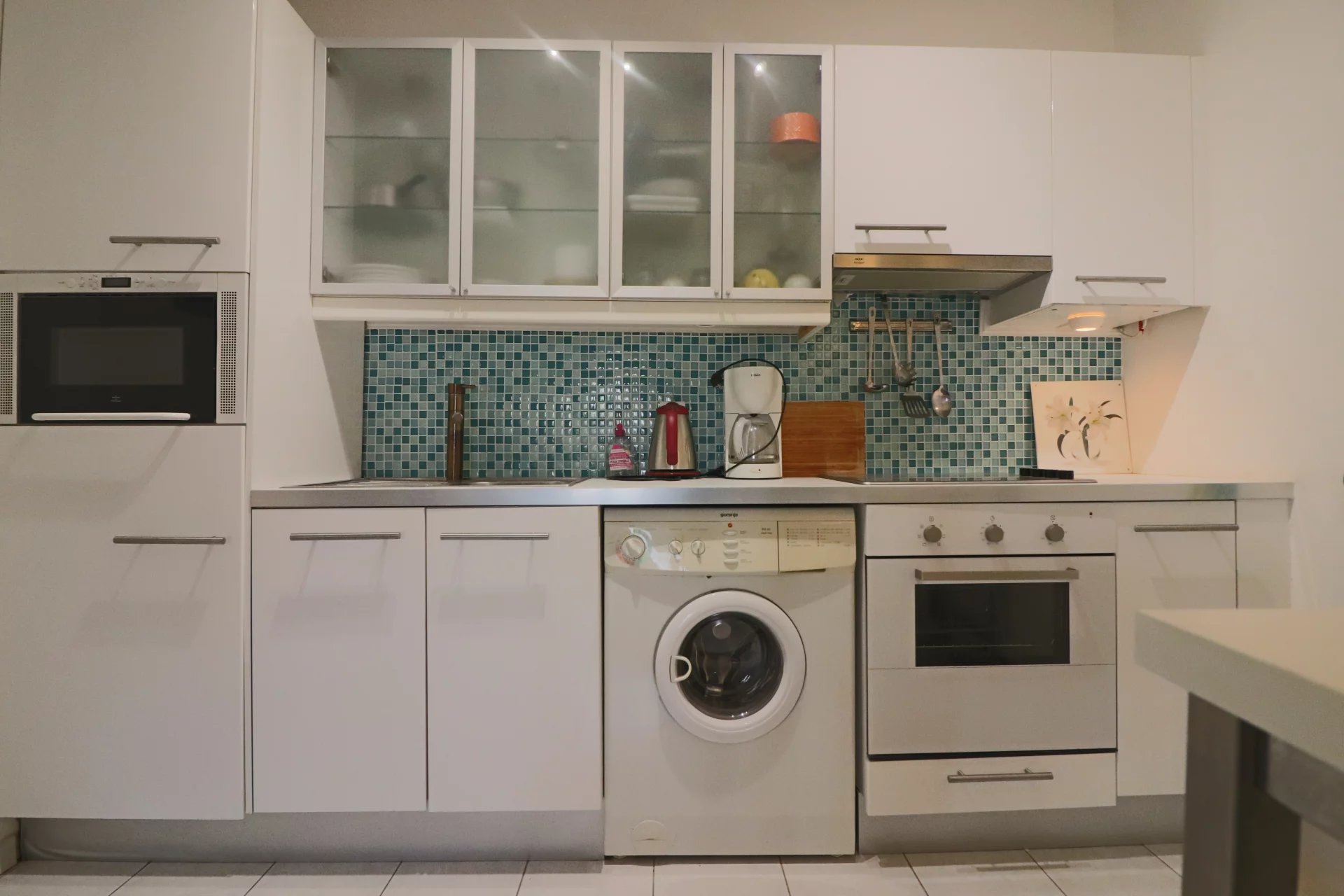 3° et dernier étage d'un immeuble ancien ( sans ascenseur) Agréable studio de 30 m² pour 2 personnes, Composé d'un séjour avec 2 lits simples, une cuisine équipée (plaque de cuisson, réfrigérateur, four, machine à laver), une salle de douche. Le logement est calme, il est cllimatisé Accès internet gratuit. Appartement rénové en 2019.