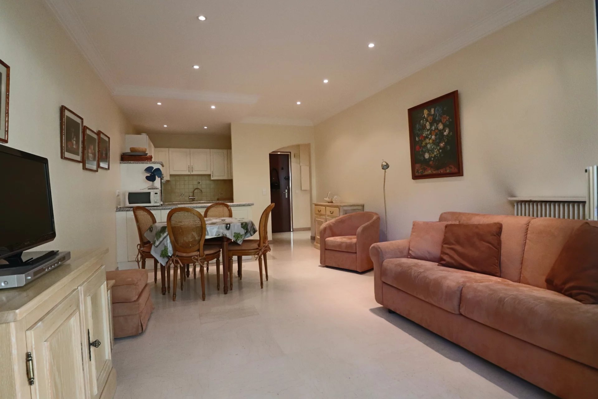 Cannes Conseil vous propose en centre ville, un 2 Pièces pour 4 personnes, avec une grande terrasse. Situé au Centre de Cannes, à proximité commerces, palais des festivals, résidence de bon standing, beau 2 Pièces très bien agencé. Cuisine américaine équipée, terrasse, salle de douche et wc individuel.