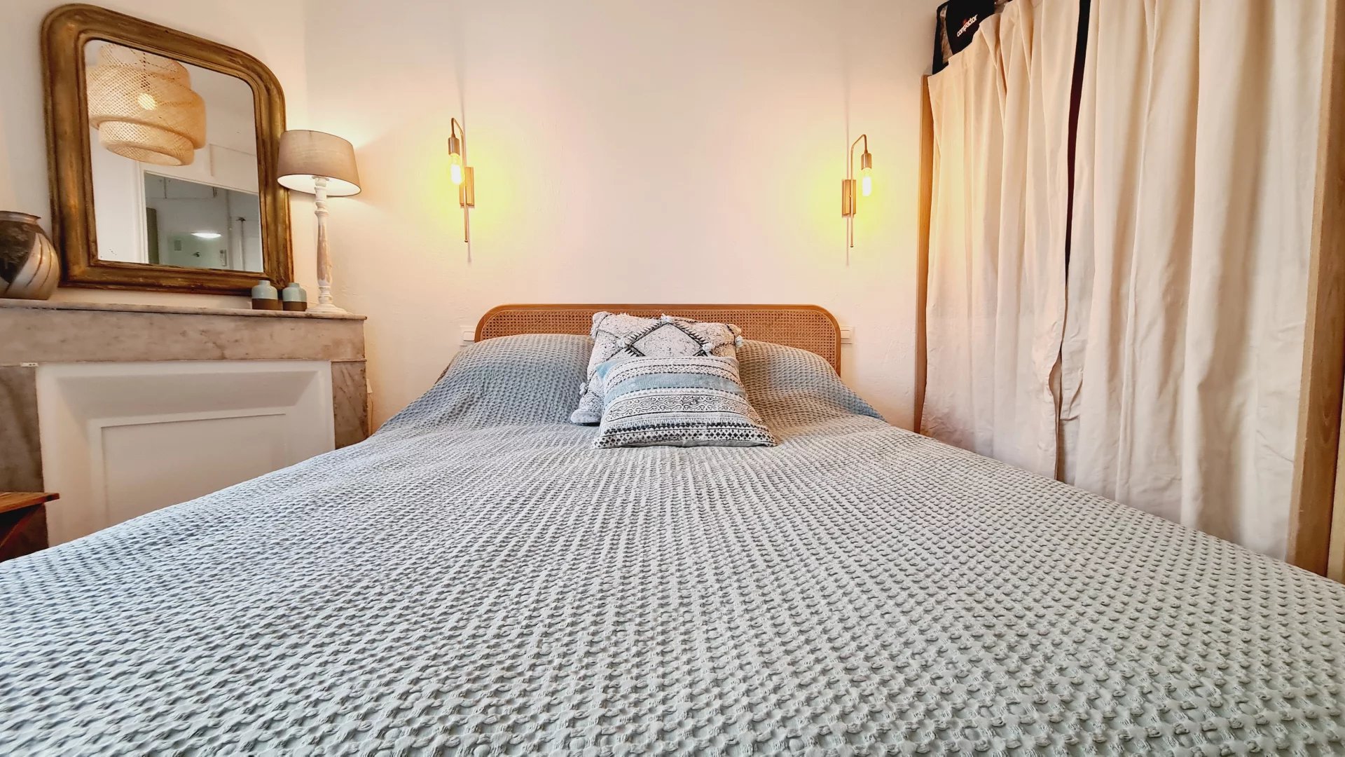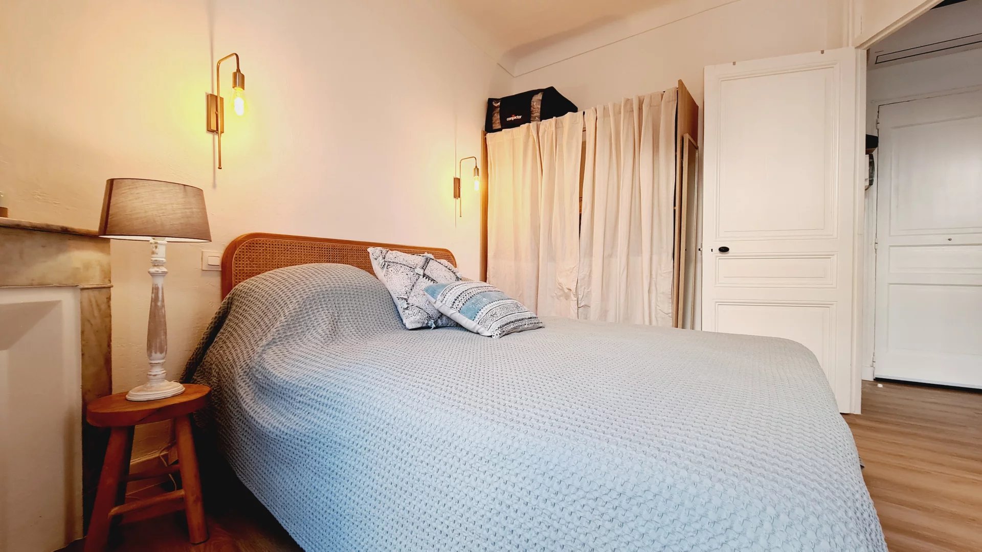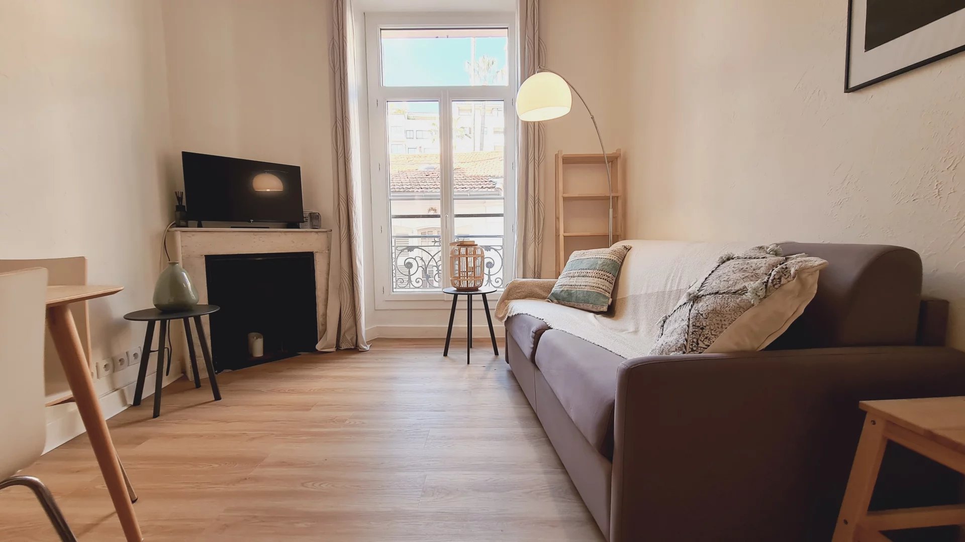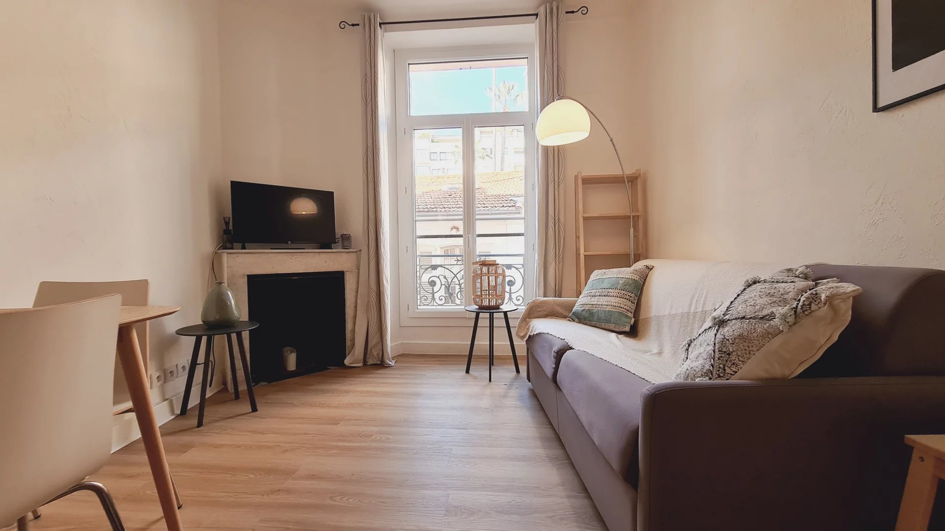 Cannes centre, Zone piétonne, au 2° étage d'un petit immeuble sans ascenseur, appartement tyope T2 en très bon état. Il se copose d'un salon avec coin cuisine, un espace repas et un canapé lit, une chambre avec un coin bureau, un grand lit et du rangement. salle de douche avec wc L'appartement est climatisé, dispose d'un accès internet et de double vitrage Idéal vacances et congrès