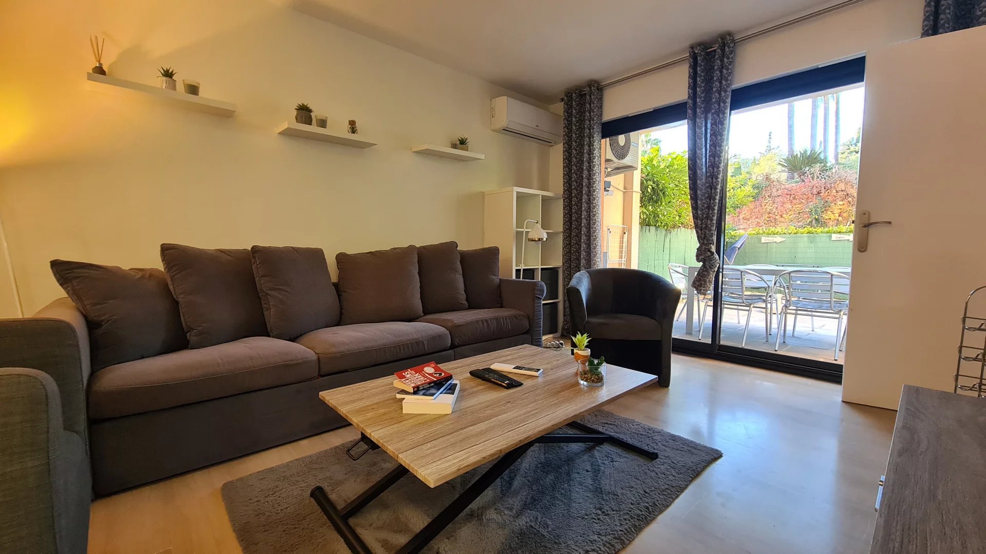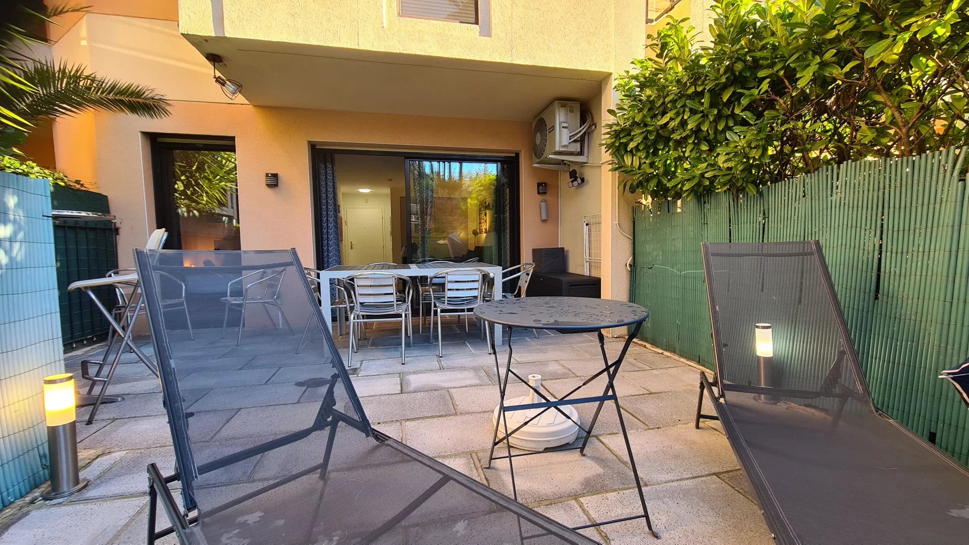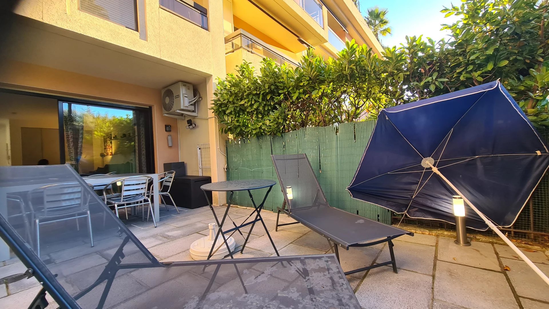 Quartier résidentiel, dans une résidence arborée de standing avec 2 piscines, appartement de 2 pièces pour 4 personnes. Il se compose d'un hall d'entrée desservant un salon et une chambre exposés Ouest avec jardin privatif aménagé, une cuisine séparée et une salle de bains. Le logemet dispose d une climatisation dans le salon et d un garage pour votre confort.