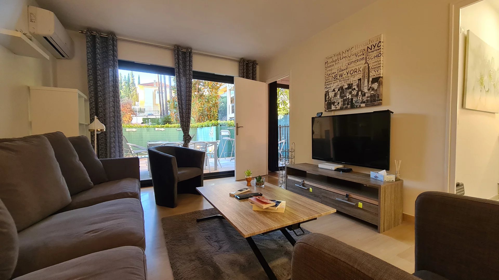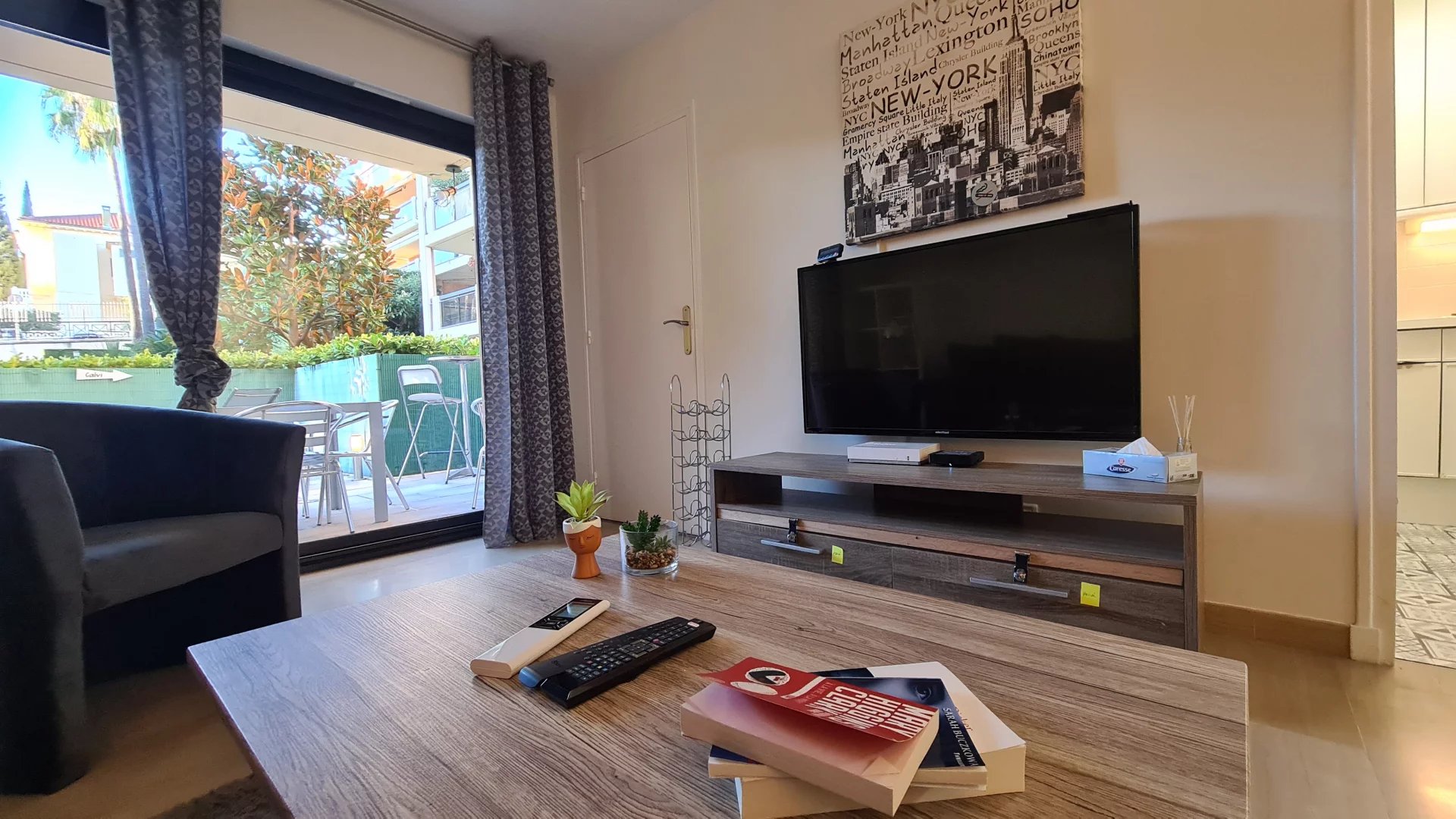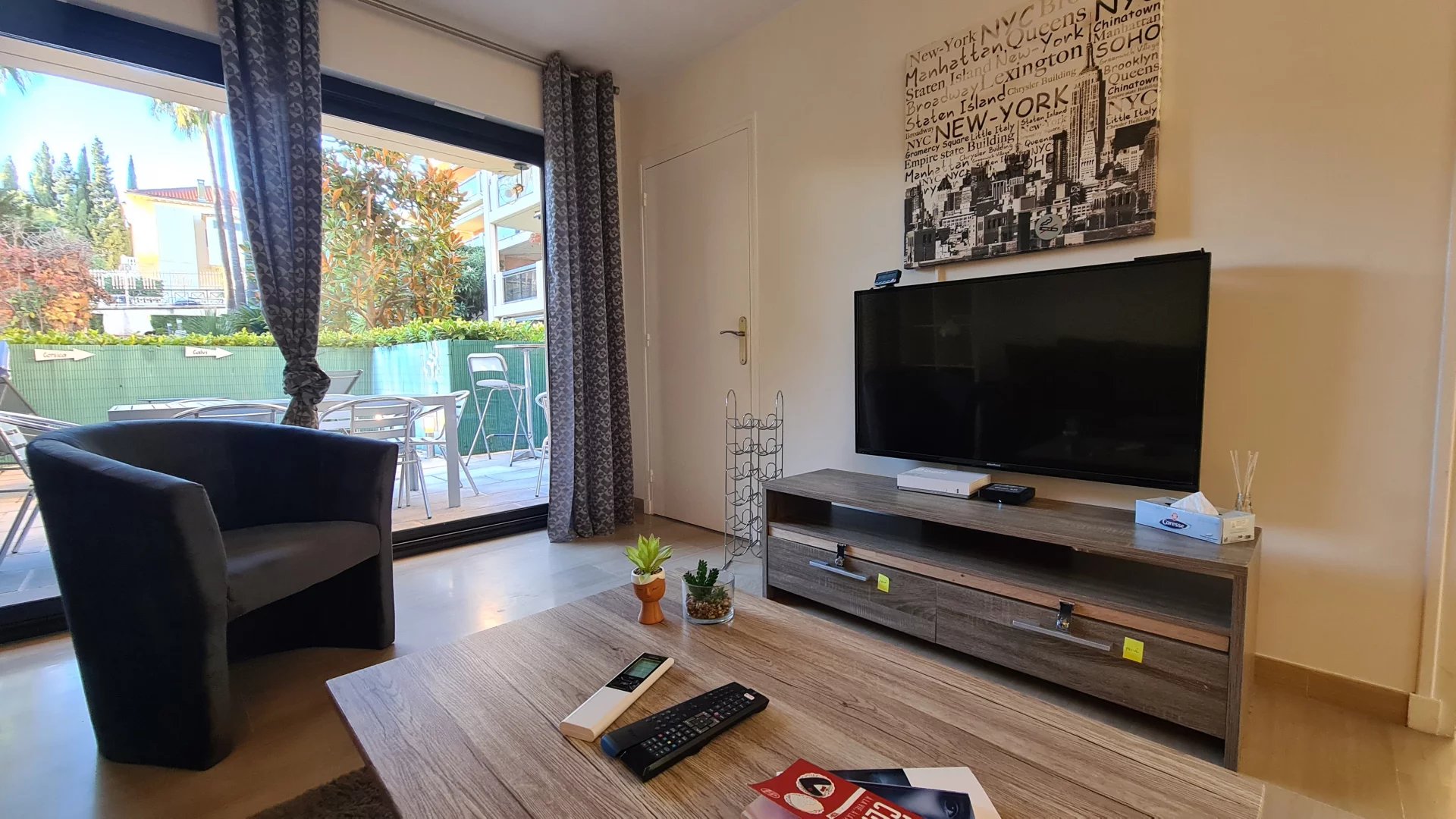 Quartier résidentiel, dans une résidence arborée de standing avec 2 piscines, appartement de 2 pièces pour 4 personnes. Il se compose d'un hall d'entrée desservant un salon et une chambre exposés Ouest avec jardin privatif aménagé, une cuisine séparée et une salle de bains. Le logemet dispose d une climatisation dans le salon et d un garage pour votre confort.