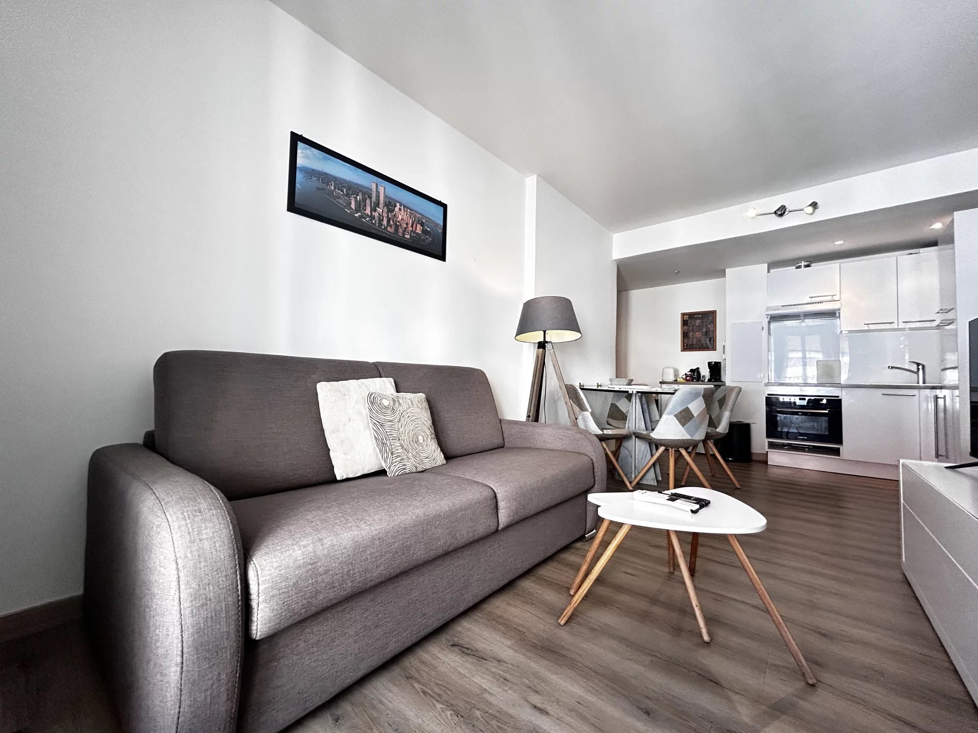 appartement type 2 pièces au 3 ° étage avec ascenseur. Entièrement rénové en 2017 appartement composé d'une entrée, un séjour avec canapé lit, une cuisine américaine, une chambre avec lit double et placard, une salle de douche avec WC. Balcon Acces internet wifi gratuit Climatisation dans la chambre et le salon.
