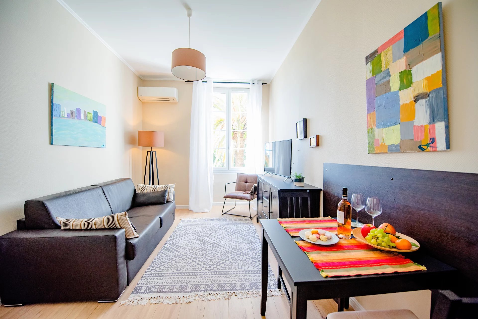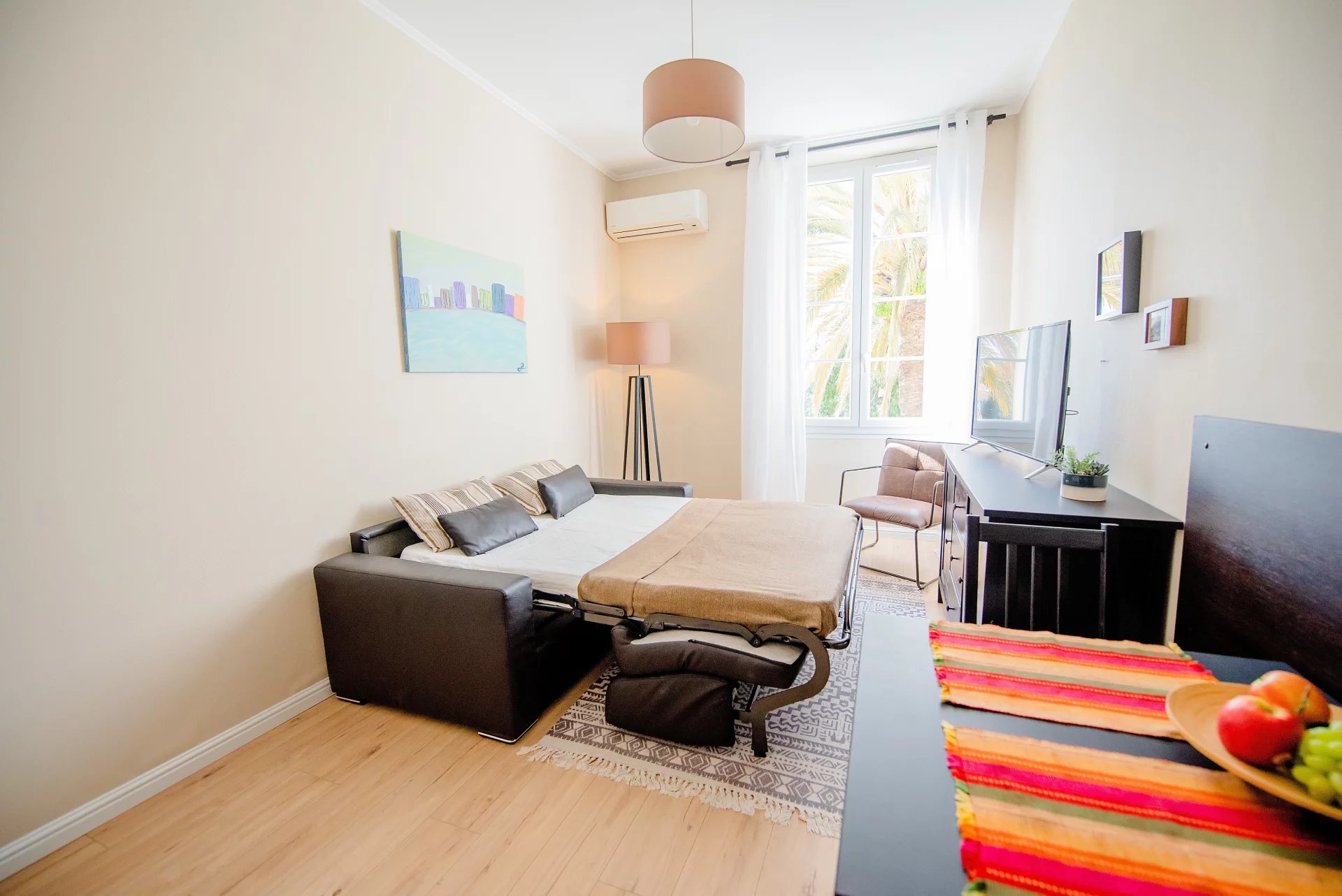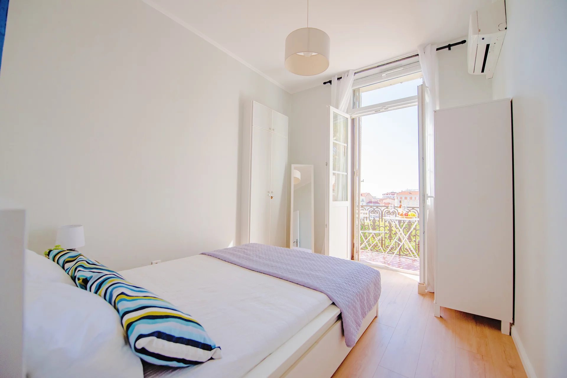Boulevard d'Alsace, résidence belle Epoque, au 2° étage avec ascenseur, appartement 2 P rénové en 2015. Cet appartement peut accueillir jusqu'a 4 personnes, il se compose d'une entrée, une pièce principale avec canapé lit, climatisation, téléviseur, une petite cuisine équipée, une chambre avec balcon et placards, une salle de bains avec wc. L'appartement dispose d'une vue dégagée, il est en retrait du Boulevard, mais à moins de 5 minutes à pied de la Gare SNCF et proche des plages;