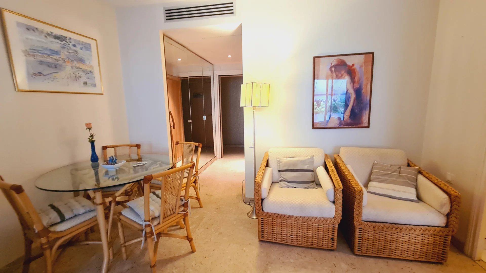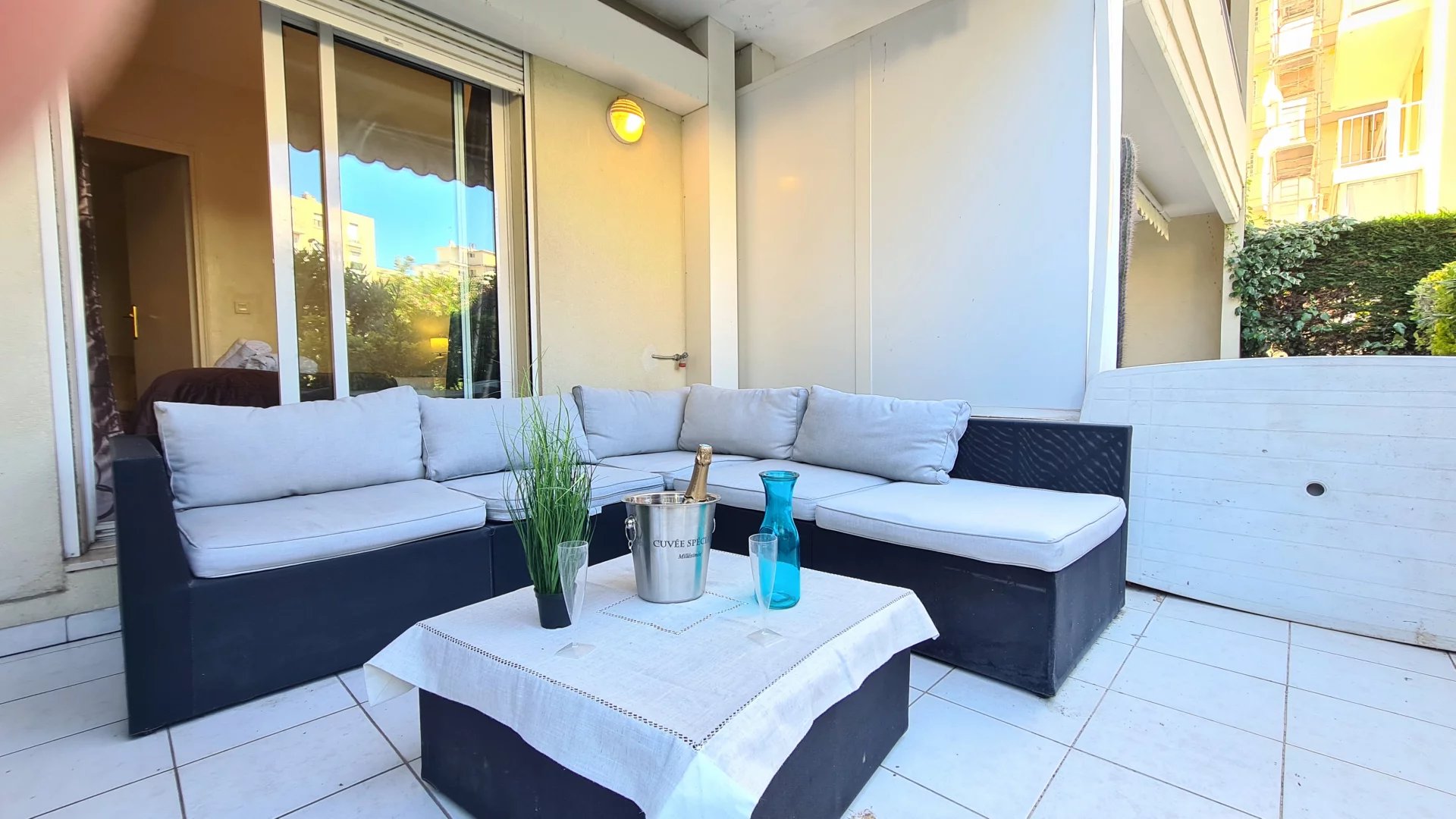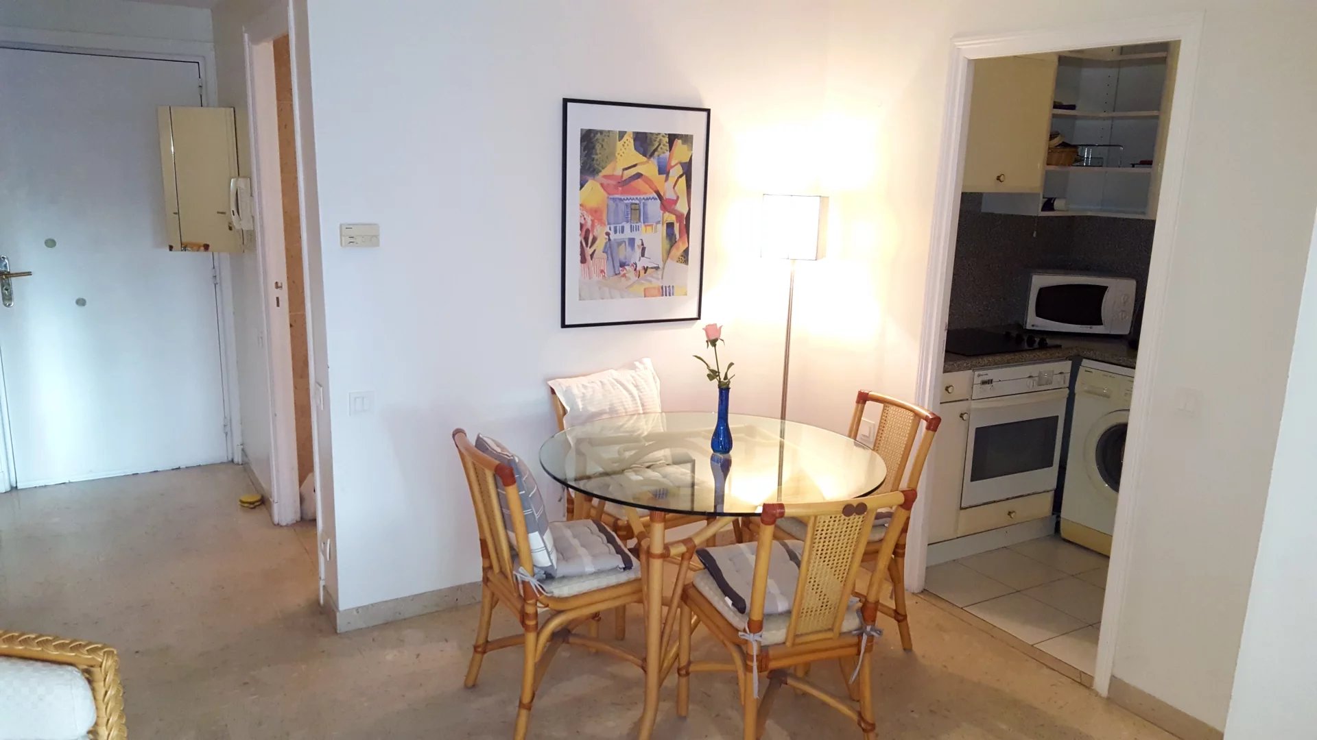 Cannes Conseil Immobilier vous propose cet appartement dans une résidence avec piscine, proche de la Croisette et de l'hotel Martinez. Ce 2 pièces de 34 m² pour 4 personnes maximum , entièrement équipé et climatisé. Il est composé d'un salon avec un canapé lit, d'une cuisine individuelle, une salle de bains, une chambre avec un lit double de 140 cm et une grande terrasse exposée sud avec du mobilier d'extérieur.. Accès internet gratuit.