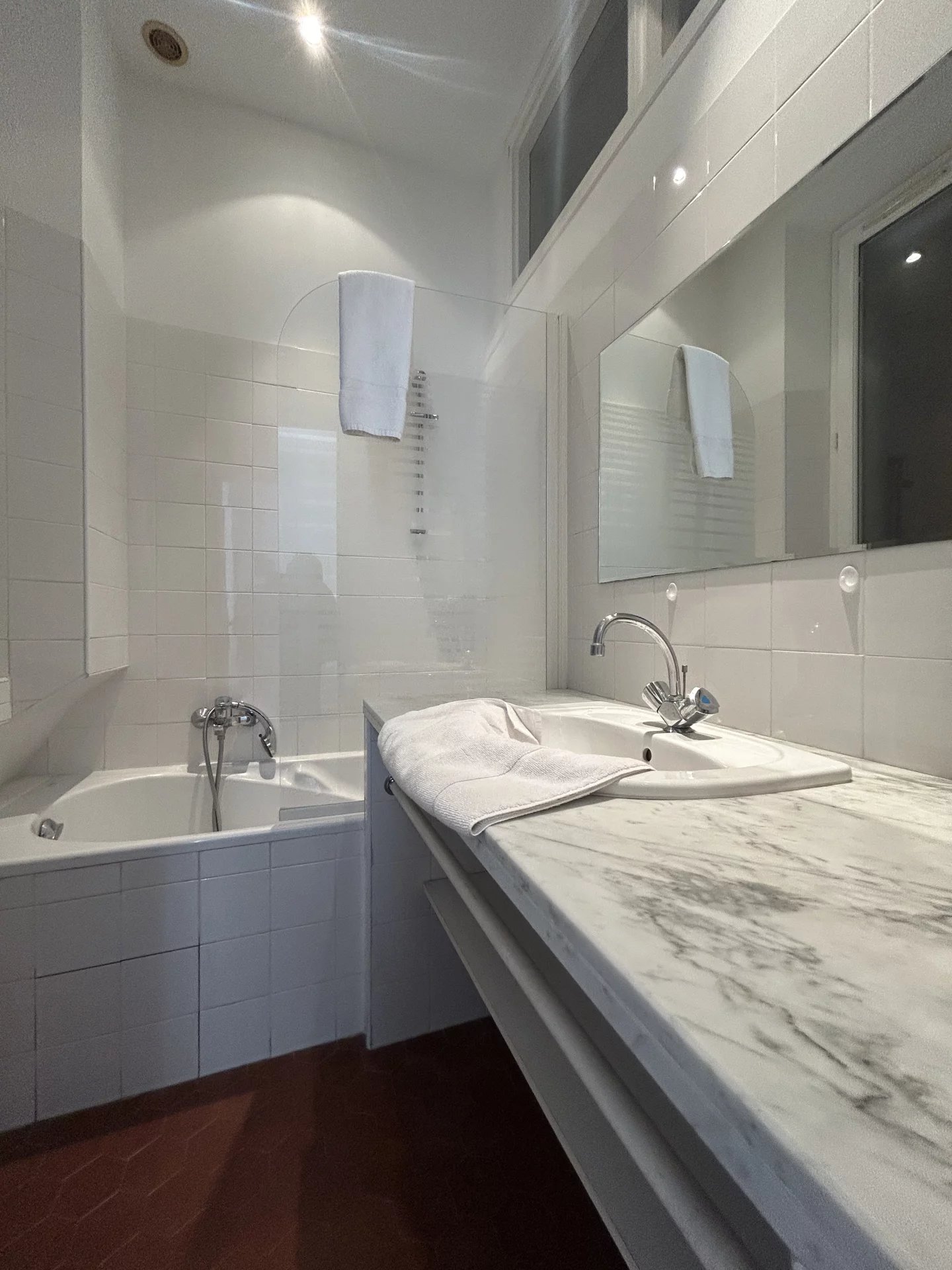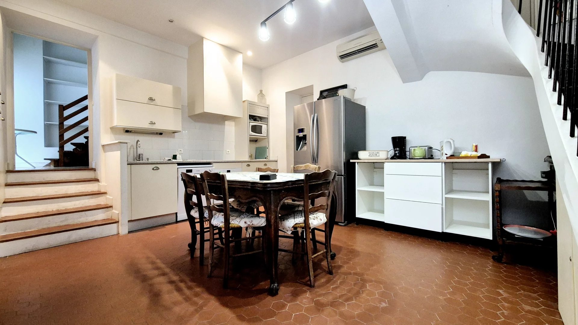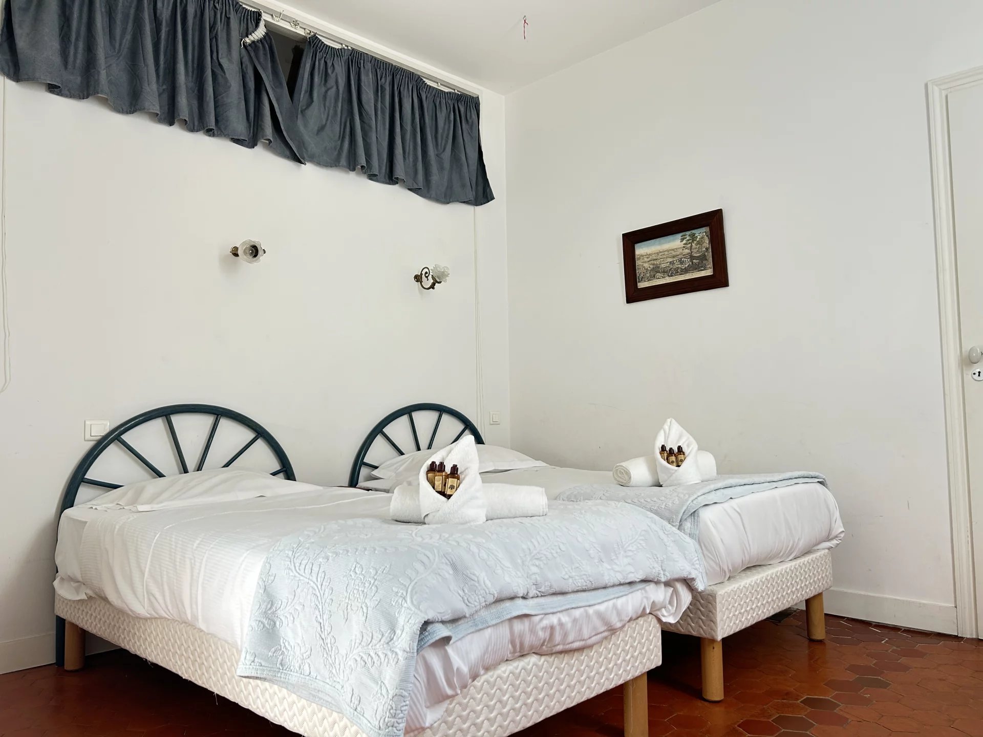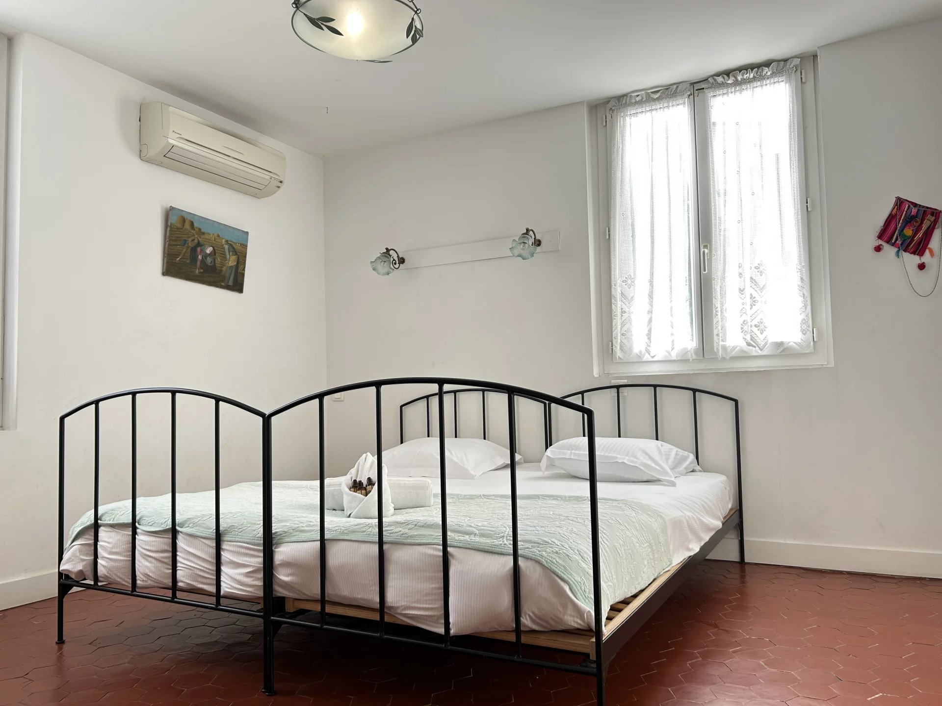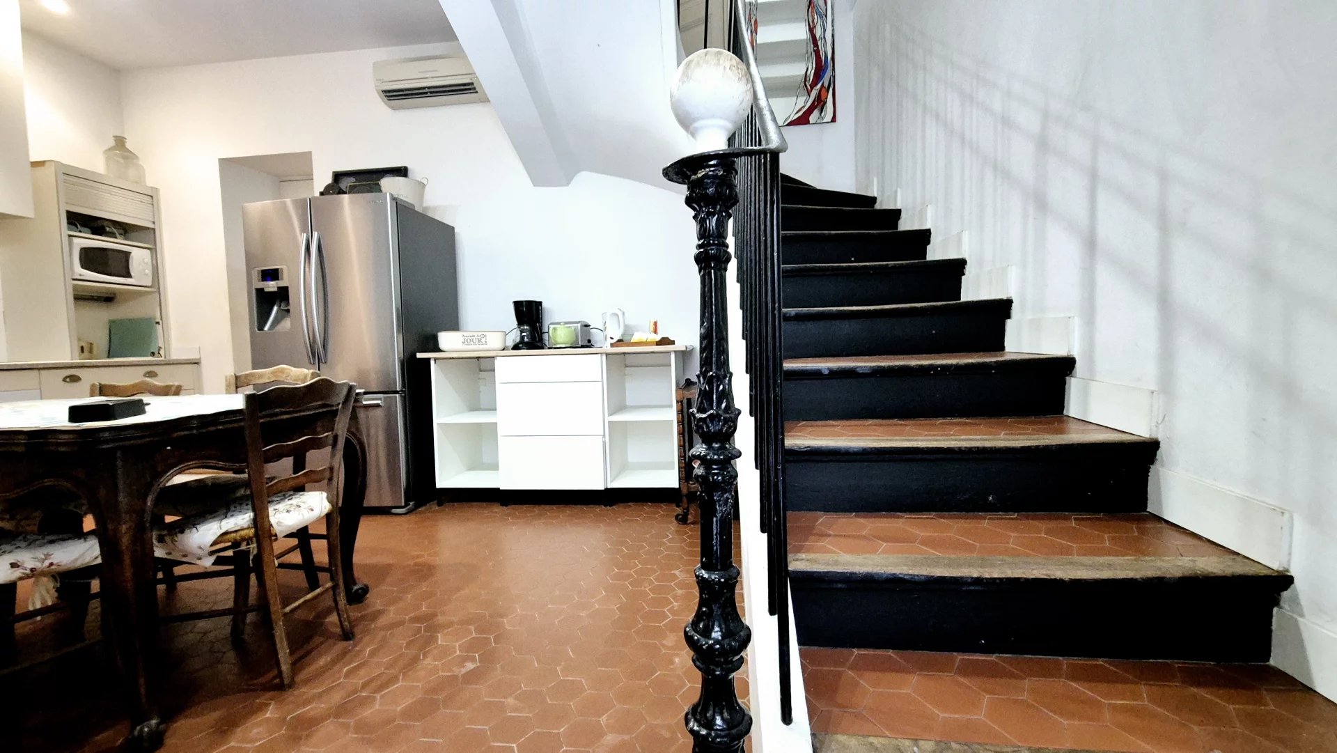 Maison de ville pouvant accueillir jusqu'a 10 Voyageurs. Cette maison sur 3 Niveaux se compose en son Rez de Jardin, d'un salon, une salle à manger, une cuisine toute équipée, un chambre avec couchage en Mezzanine et une salle de douche avec wc. Au premier étage, 2 chambres avec salle de bains et salle d'eau, 2 chambres au niveau supérieur, avec salle de douche et un wc. Grande terrasse privative. Chaque chambre a sa salle de Bains ou douche, une climatisation, une TV. Acces Internet wifi dans toute la maison