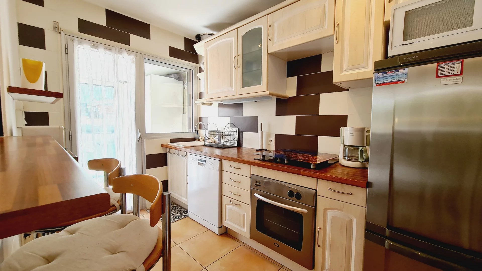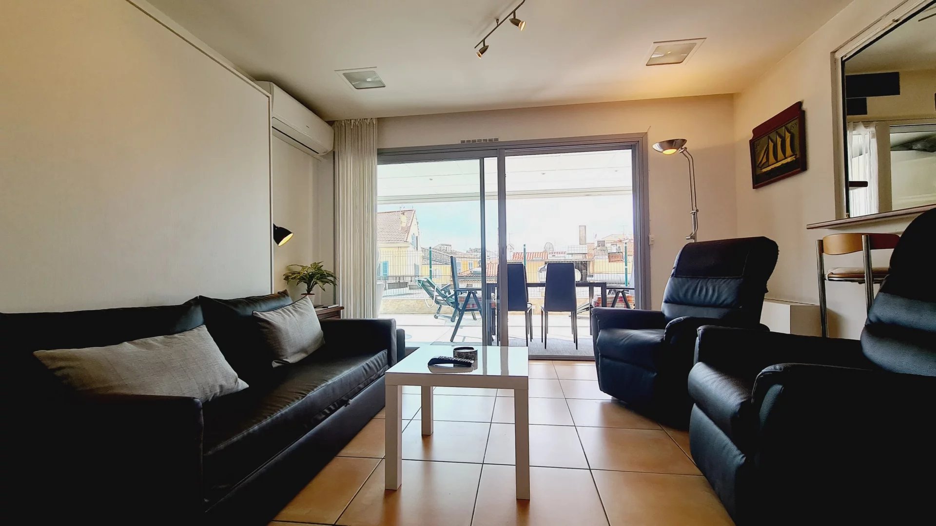 Immeuble de bon standing, 1 ° étage avec ascenseur, au calme, agréable appartement 3P en excellent état. Toutes facades Sud, donnant sur une terrasse ensoleillée. Le bien se compose d'un salon avec un canapé lit, une chambre avec un lit double, 1 Chambre avec 2 lits superposés, une cuisine individuelle, salle de douche et wc séparé. Appartement climatisé, acces internet, cuisine très bien équipée.