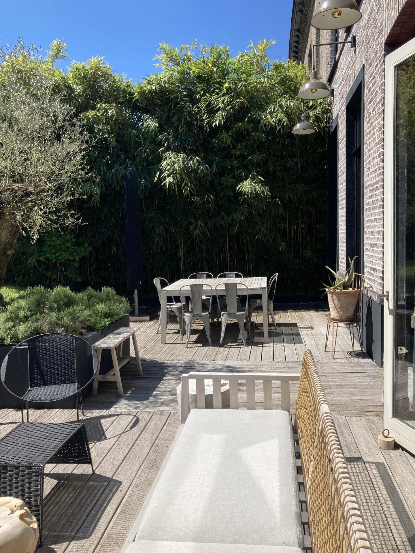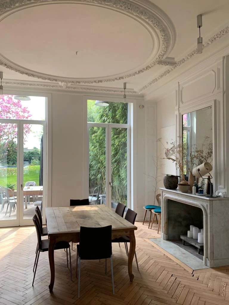 Au cœur de Wambrechies, à deux pas des commerces, découvrez cette superbe maison de caractère, ayant conservé tout le charme de l'ancien : moulures, cheminées d'époque, parquet en chevron et belle hauteur sous plafond. Vous serez immédiatement séduits par sa pièce de réception traversante de plus de 50 m², baignée de lumière, idéale pour recevoir dans une atmosphère chaleureuse et élégante. Cette pièce de vie ouvre directement sur une vaste terrasse et un magnifique jardin exposé plein Sud, d’environ 500 m², agrémenté d’une piscine de nage, véritable havre de paix en pleine ville. La cuisine, spacieuse et conviviale, bénéficie elle aussi d’un accès direct au jardin, pour des repas ensoleillés en toute intimité. Le rez-de-chaussée comprend également une buanderie fonctionnelle, un WC, un garage une voiture, ainsi qu’un atelier attenant. À l’étage, un grand palier distribue deux superbes chambres de 20 m² avec rangements intégrés, une salle de bains lumineuse avec baignoire et douche, ainsi qu’un WC séparé. Au second, trois chambres supplémentaires (11, 13 et 15 m²), également avec rangements, entourent un palier spacieux. Une deuxième salle de bains avec douche et baignoire, ainsi qu’un WC indépendant, complètent ce niveau. Aucun travaux à prévoir – la maison est parfaitement entretenue et offre un cadre de vie exceptionnel alliant le cachet de l’ancien au confort moderne. Un bien rare sur le secteur, idéal pour les amoureux de belles maisons avec jardin, dans un quartier prisé et vivant.