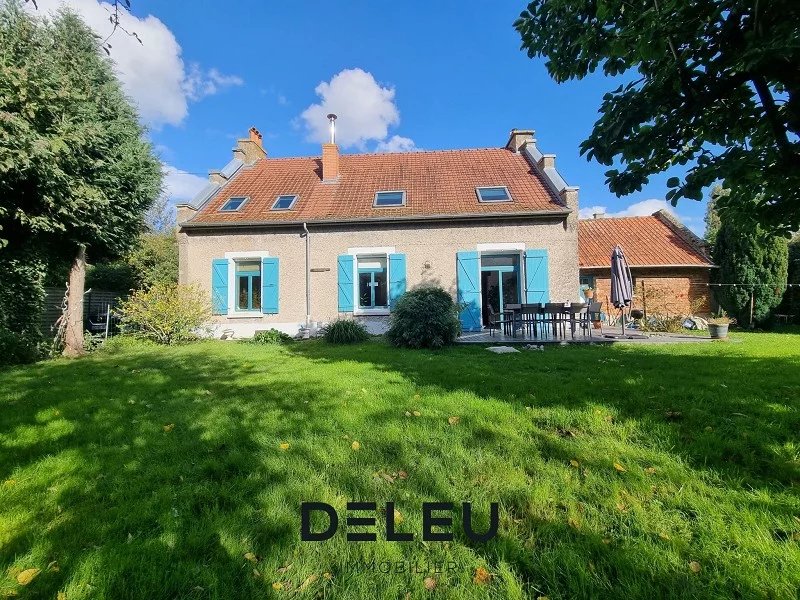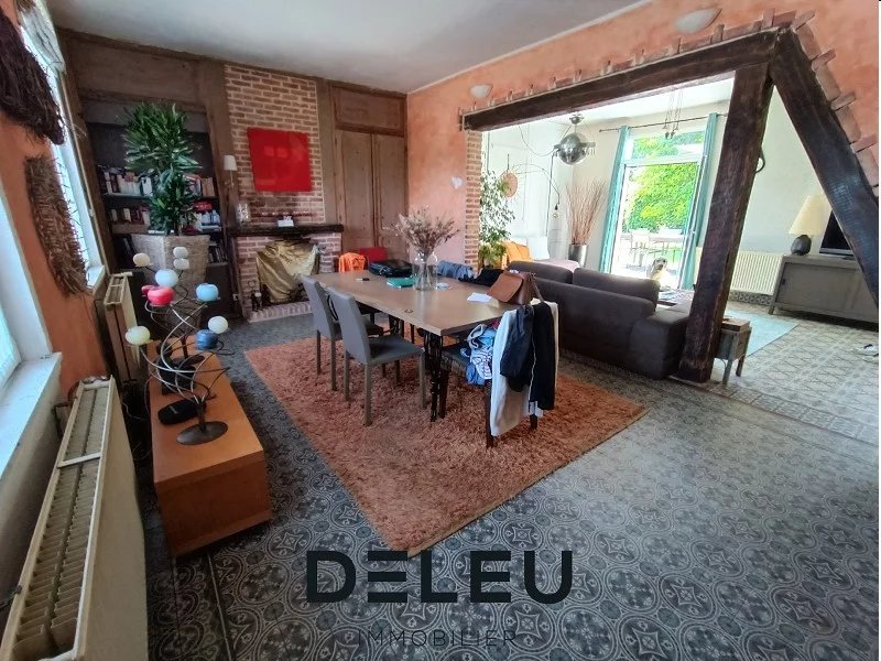 MAISON DE CAMPAGNE 160M2 AVEC 4 CHAMBRES, BUREAU, JARDIN, GARAGE ET PARKING PRIVÉ (mandat n°470) Située entre campagne et bord de la lys, cette jolie fermette se compose de 4 chambres dont 1 avec dressing, garage, parking privé et jardin arboré. Au rez-de-chaussée : Hall, WC, salon séjour spacieux et traversant avec cachet de 55m2 auquel s'ajoute une cheminée avec insert, grande cuisine équipée indépendante de 14,3m2. Salle de bain complète avec coin buanderie ainsi qu'un cellier, garage attenant et une cave complète cette charmante maison. A L'étage : un magnifique parquet d'origine saura vous séduire avec un palier distribuant 4 belles chambres (16/15,7/11,93/25,5m2) dont une avec dressing de 12m² ! Jardin intimiste clos et arboré orienté Sud-Ouest avec terrasse. CACHET, BEAU POTENTIEL, TRAVAUX A PREVOIR ! UNE VISITE S'IMPOSE !!