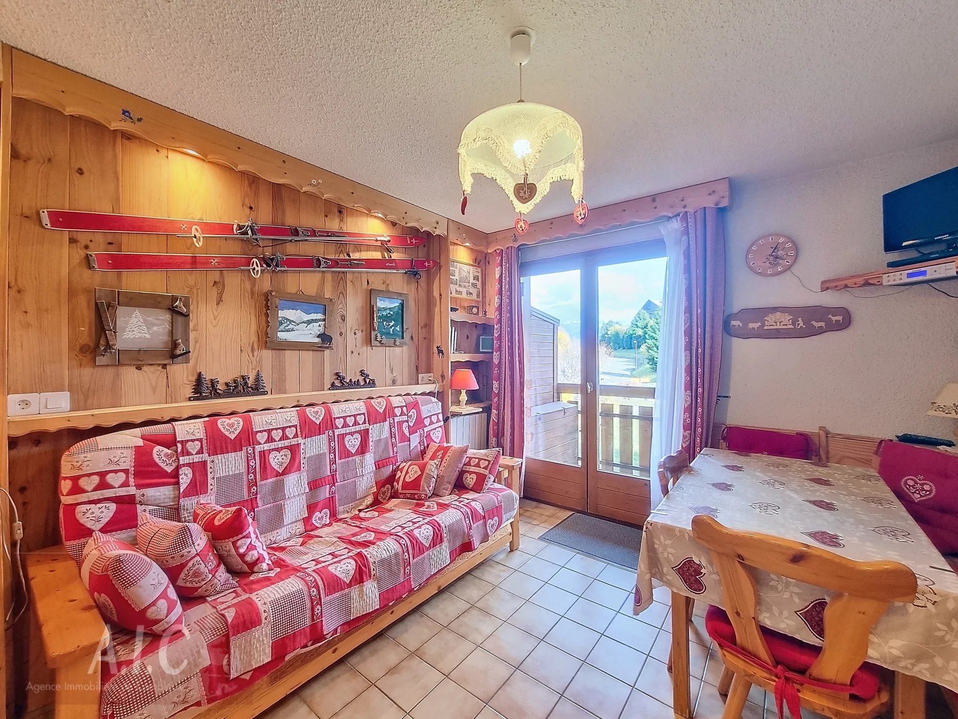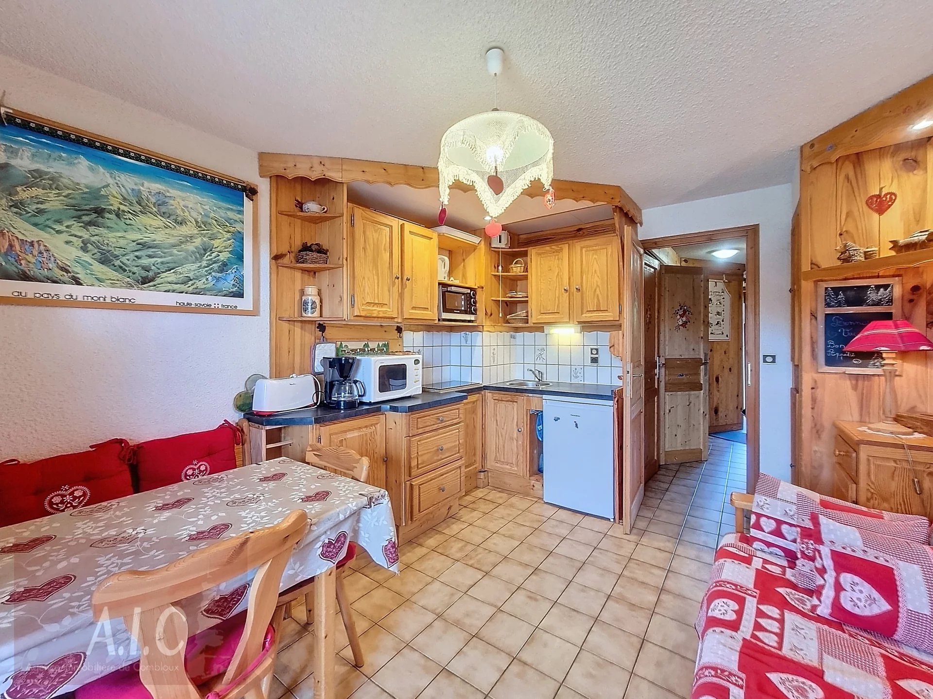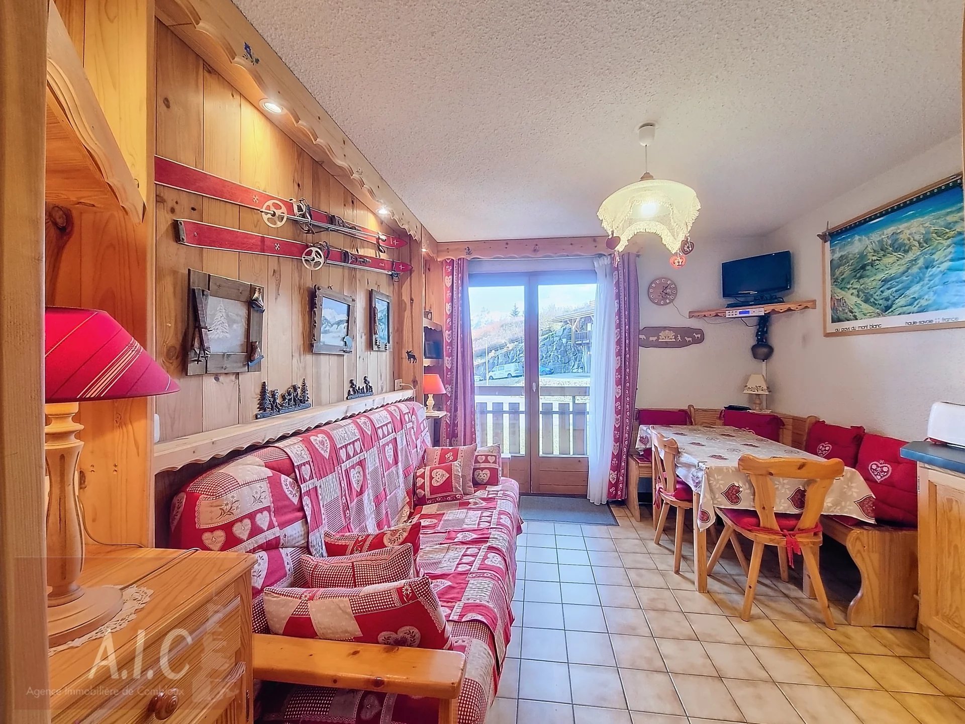 Idéalement situé, au départ du domaine skiable Les Portes du Mont Blanc, appartement de 25 m² au premier étage d'une petite résidence. Il se compose d'une entrée, coin montagne, une chambre cabine, une salle de bain, wc indépendant, coin cuisine équipée, salon donnant sur un balcon face au Mont Blanc, exposé Est. Vendu avec une place de parking intérieur, un casier à ski et une cave.