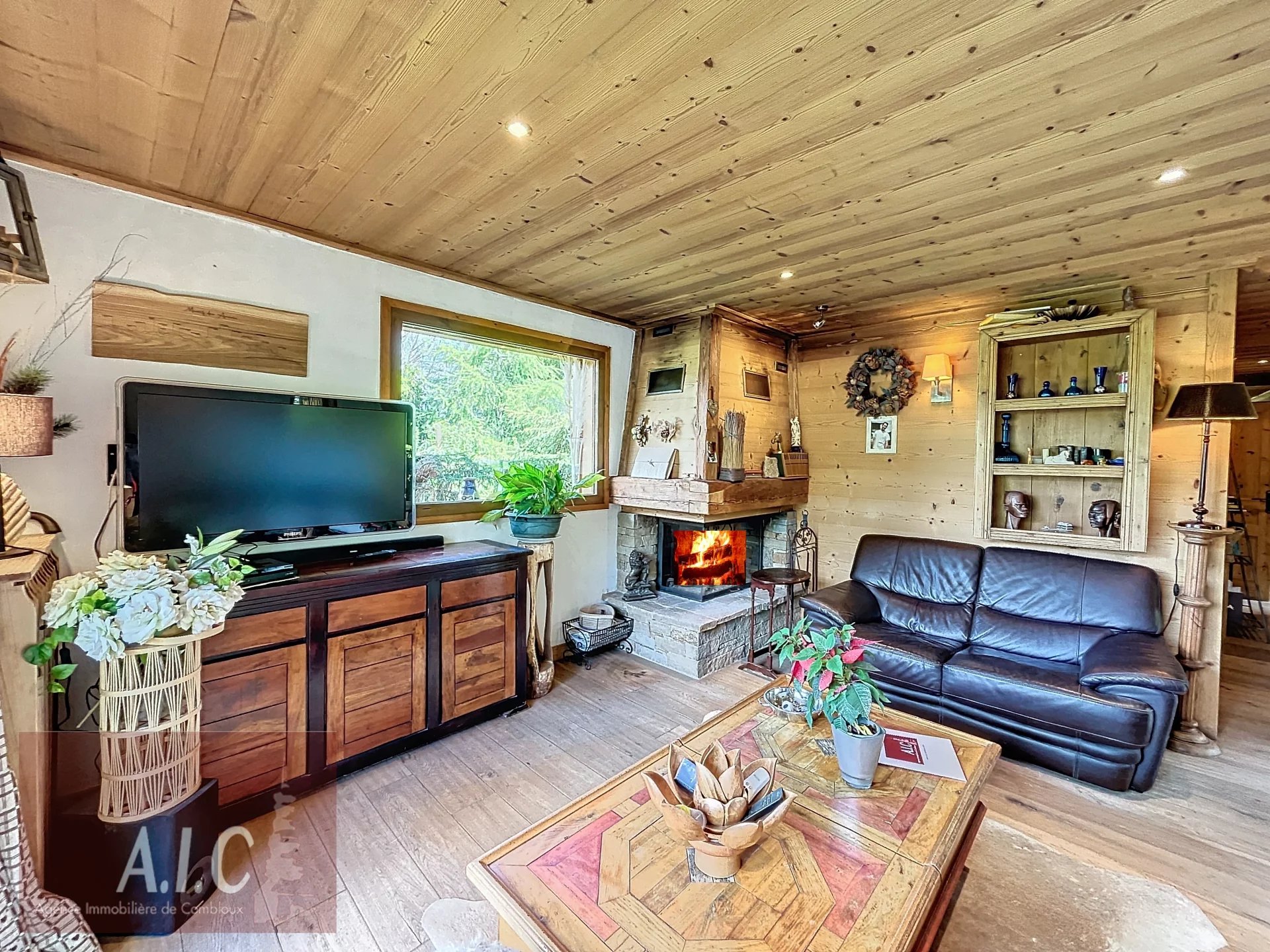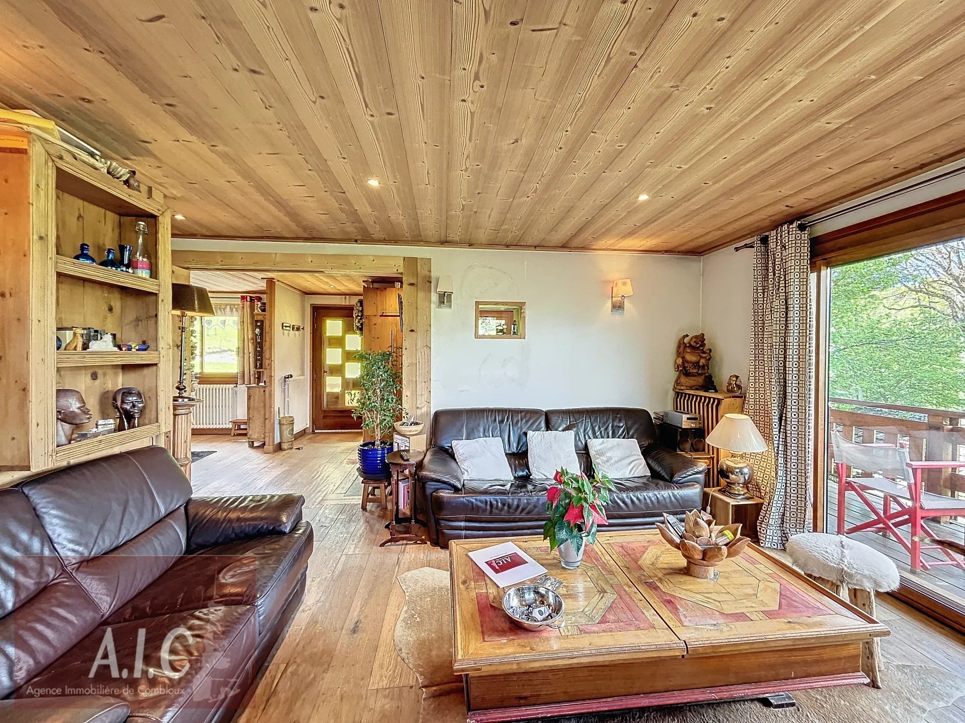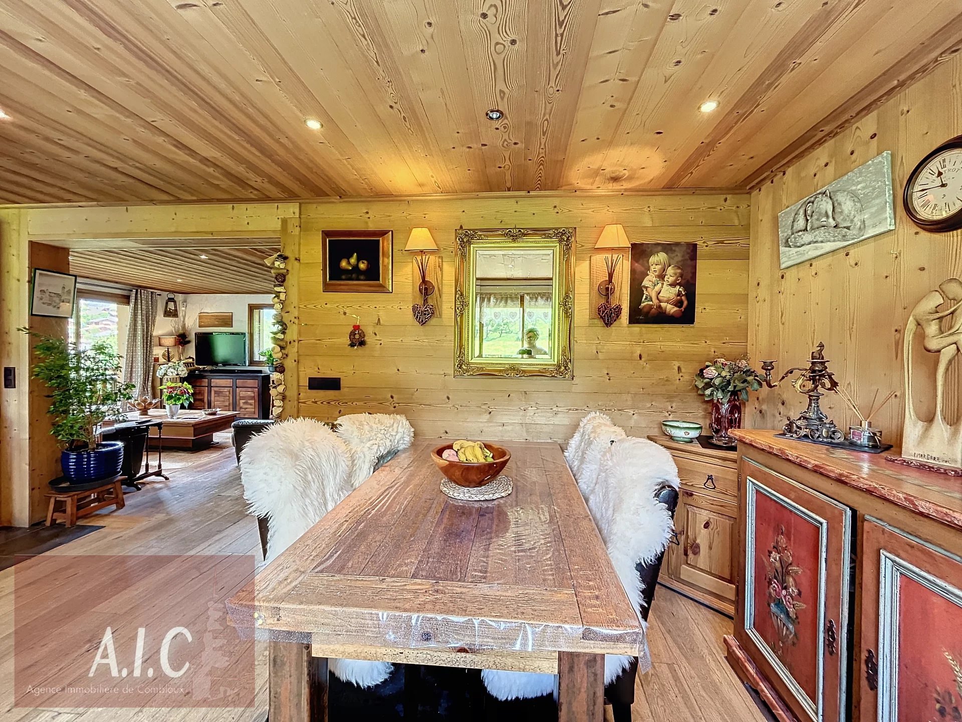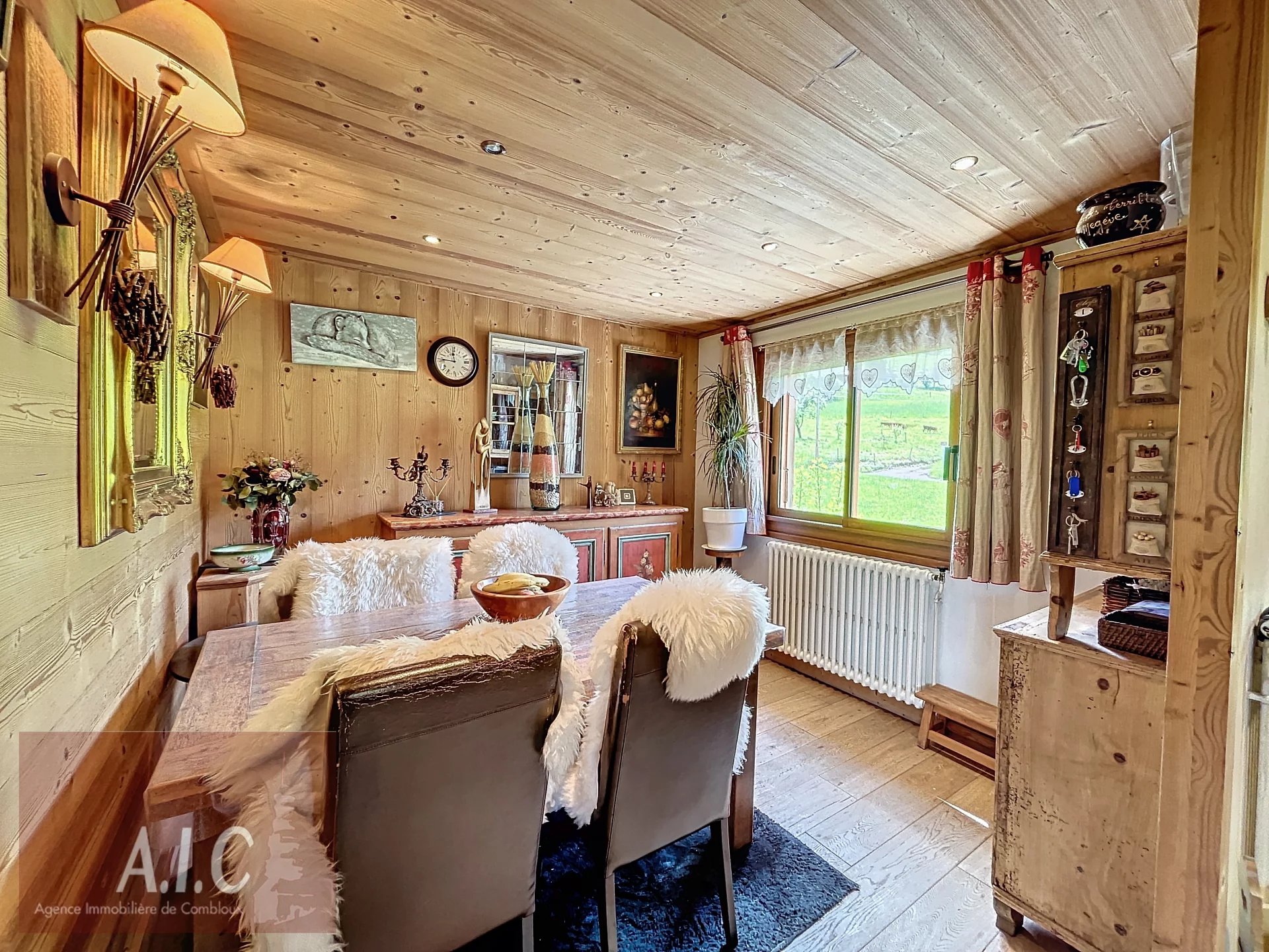 Idéalement situé, à quelques minutes du village de Combloux et de son lac Biotop par un sentier pédestre, chalet de charme très ensoleillé, d'une superficie de 140 m² sur deux niveaux, il comprend une entrée avec dressing, une cuisine ouverte toute équipée, salle à manger, salon avec cheminée donnant accès à une belle terrasse Sud ouest avec une très belle vue sur le village et les Aravis, une chambre en suite avec sa salle de douche/wc, une chambre avec sa douche. Au niveau inférieur une dépendance avec son entrée indépendante ou par l'intérieur, avec une chambre, une salle de douche/wc, une pièce de vie ou Chambre avec coin douche donnant sur un beau jardin et une belle terrasse abritée exposée Ouest. Une buanderie, chaufferie, un garage. Un terrain de plus de 2200 m² complète ce bien entouré de verdure et d'une forêt Bucolique et Ludique. Chalet avec un beau potentiel, possibilité d'aménager les Combles.