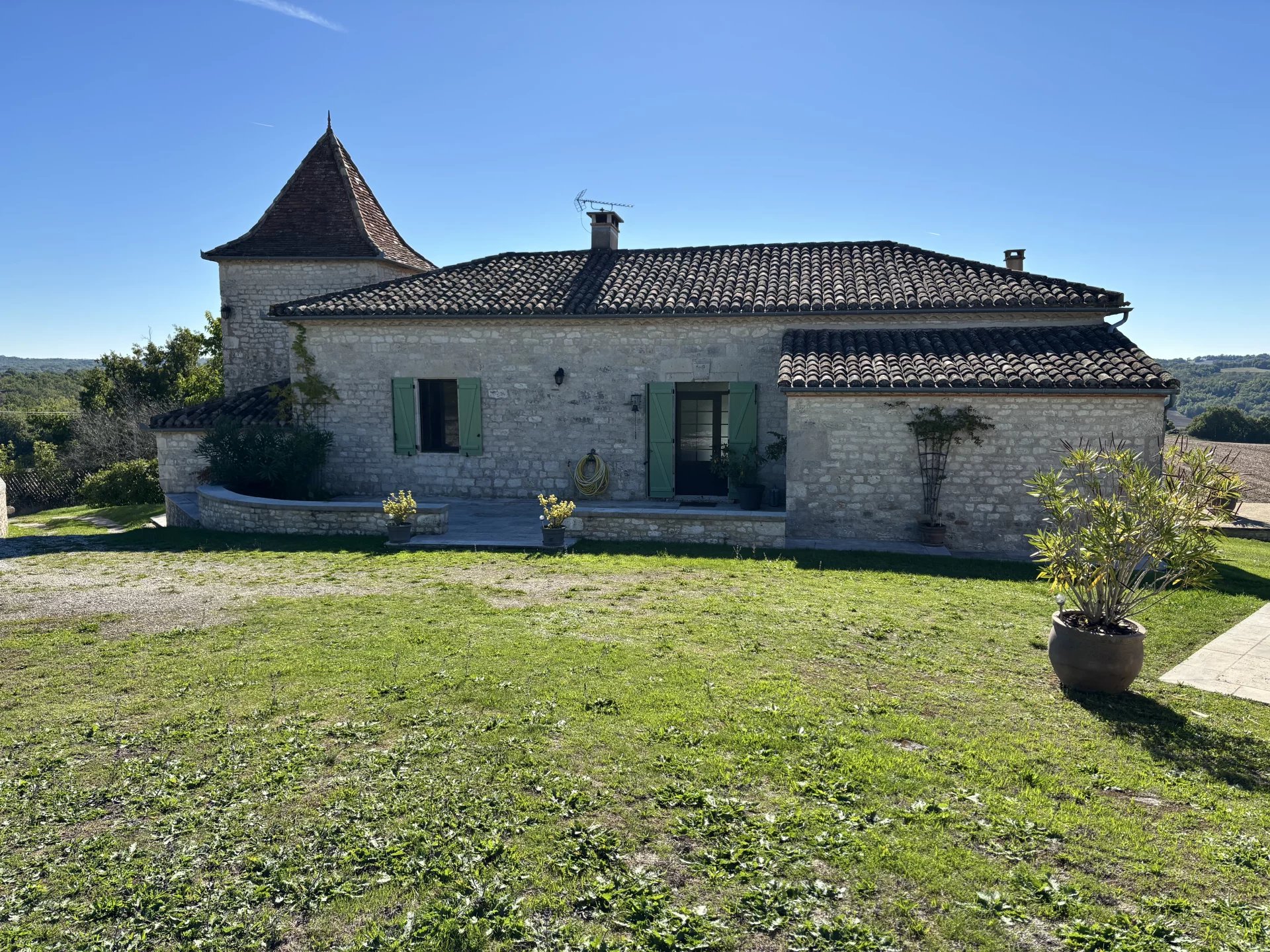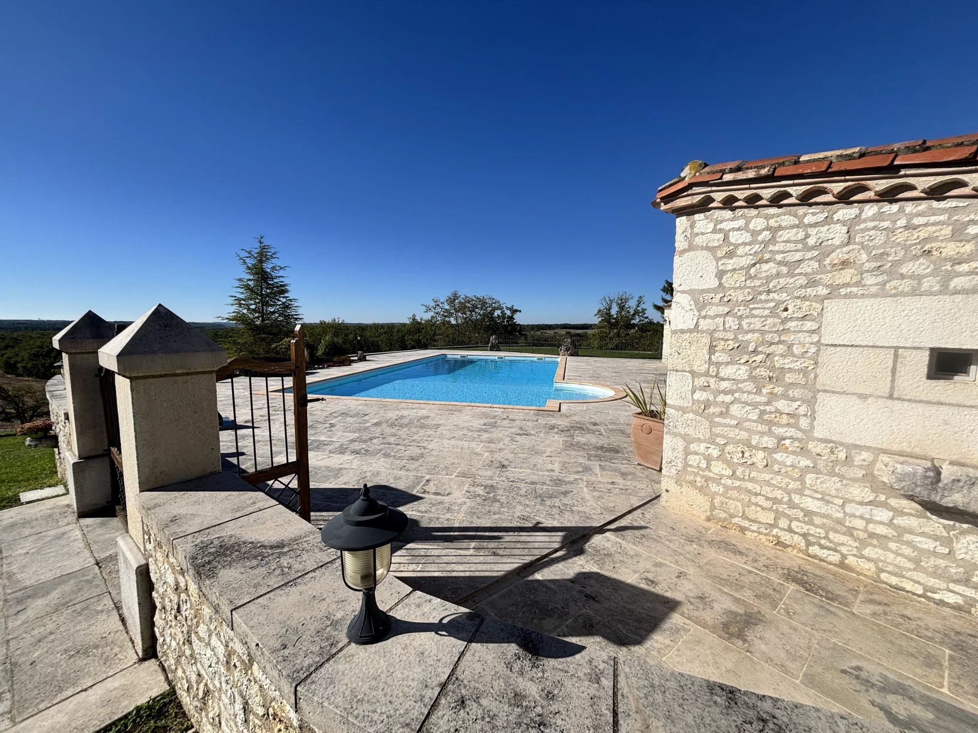 Bien située, au calme, au bout d'un charmant hameau, avec une vue magnifique et un ensoleillement optimum. Les extérieurs sont tous aménagés, avec des superbes terrasses ensoleillés, une spacieuse piscine 14 x 7 mètres. Mariage réussi entre l'authentique et le moderne. La maison, d'environ 150 M², se compose d'une cuisine avec accès à la terrasse plein sud, salon, 2 chambres avec placard, salle de bain, WC, pigeonnier avec chambre et rangement, spacieux bureau. Maison d'amis 60 m², toute refaite, cuisine ouverte/salon sur terrasse piscine, chambre avec placard, salle d'eau/WC, rangement. Grange 195 M² avec 2 portails automatisé, dont atelier 80 m², auvent pour 2 voitures. Superbe terrain arboré dominant de 8430 m². Divers: double vitrage, chaudière centrale au fioul, chauffage au sol, menuiseries aluminium, volets aluminium. Maison d'amis avec climatisation, cuisine toute équipée, très bon état, matériaux de qualité. Prix honoraires inclus : 695.000 € Prix honoraires exclus : 670.000 € Honoraires de 3.70% TTC à charge acquéreur
