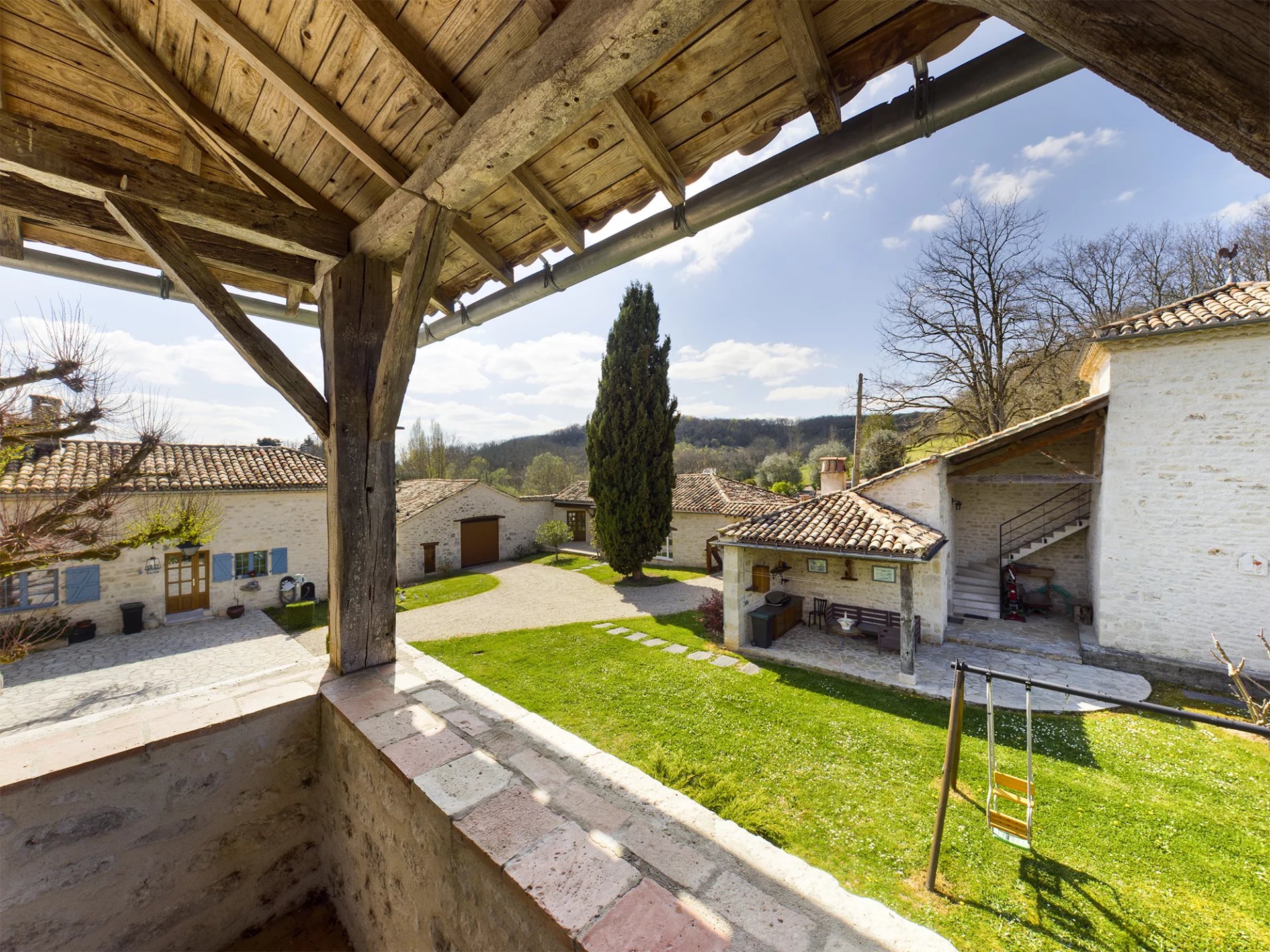 #Idéalement située, au milieu de la nature avec vue imprenable sur la bastide médiévale du 14ème, à 3 km de tout ce que le village a à offrir. Restauration de qualité pour cette bâtisse en pierre du Quercy. La cour centrale donne le ton, la maison d'environ 304 m² avec sa tour se compose: superbe hall d'entrée traversant, spacieux salon, séjour avec cheminée, cuisine toute équipée, arrière cuisine, bureau, chambre parentale avec dressing, chambre/salle d'eau avec terrasse, 2 chambres avec salle d'eau, salle de billard, cave à vin réfrigérée. Maison d'amis d'environ 64 m² , pièce de vie, chambre, salle d'eau. Grange d'environ 200 m² rénovée, garage/atelier d'environ 70 m². Un pigeonnier avec ses 3 pièces et la partie local chaudière. Un superbe espace piscine dominant. L'ensemble sur un parc exceptionnel de 15,5 hectares, entièrement paysagé, partie prairie, forêt, golf 9 trous, lac, fruitiers, entièrement clôturé avec ses 2 portails automatisés. Fluide et lumineuse, à voir absolument. Divers: double vitrage, tout à l'égout, alarme, caméras, piscine 10 x 5 mètres avec couverture, pompe à chaleur, local piscine, 2 portails automatisés avec vidéophone, terrain de pétanque, parkings. Prix honoraires inclus : 1.680.000€ Prix honoraires exclus : 1.600.000 € Honoraires de 5% TTC à charge acquéreur