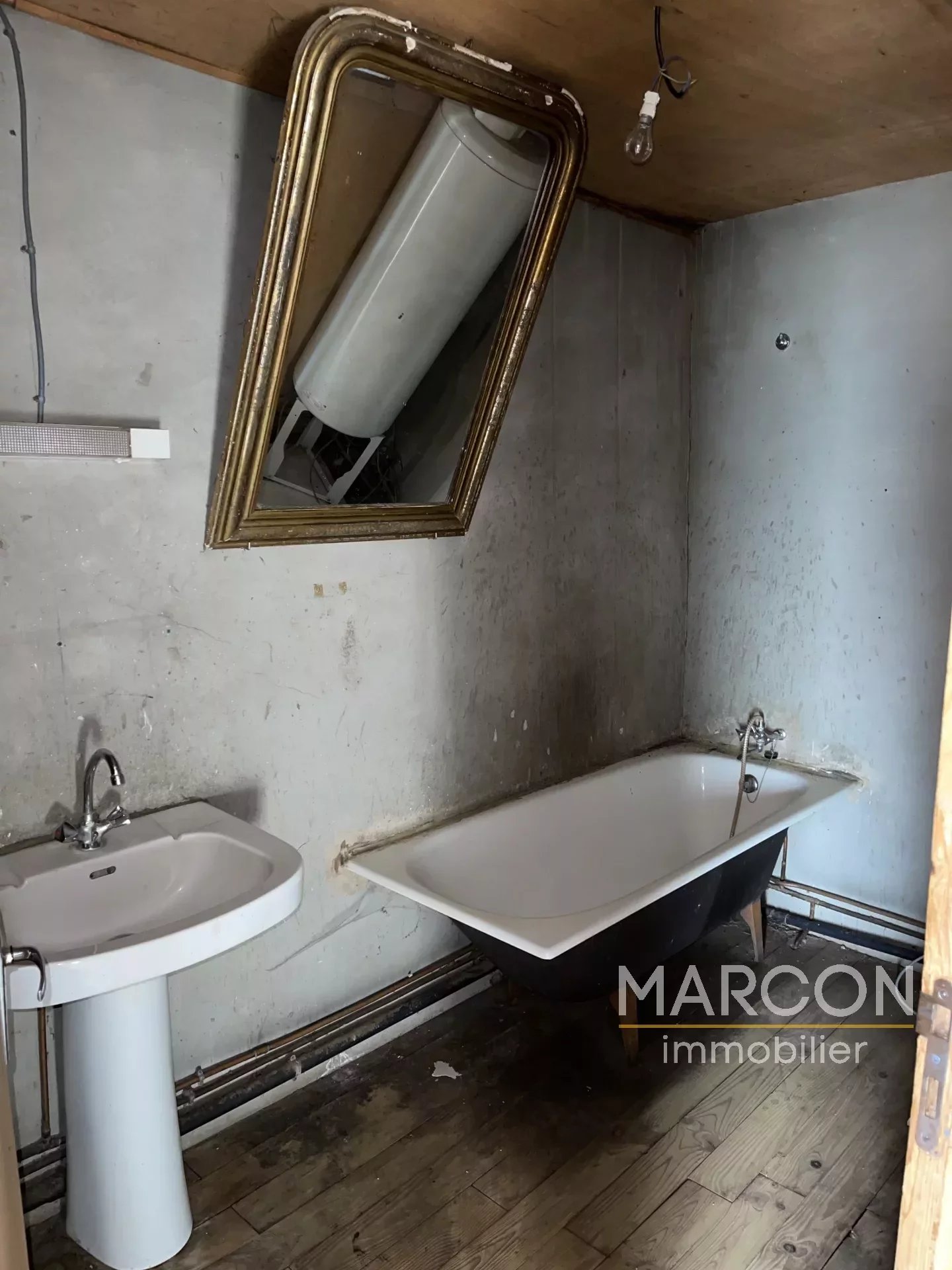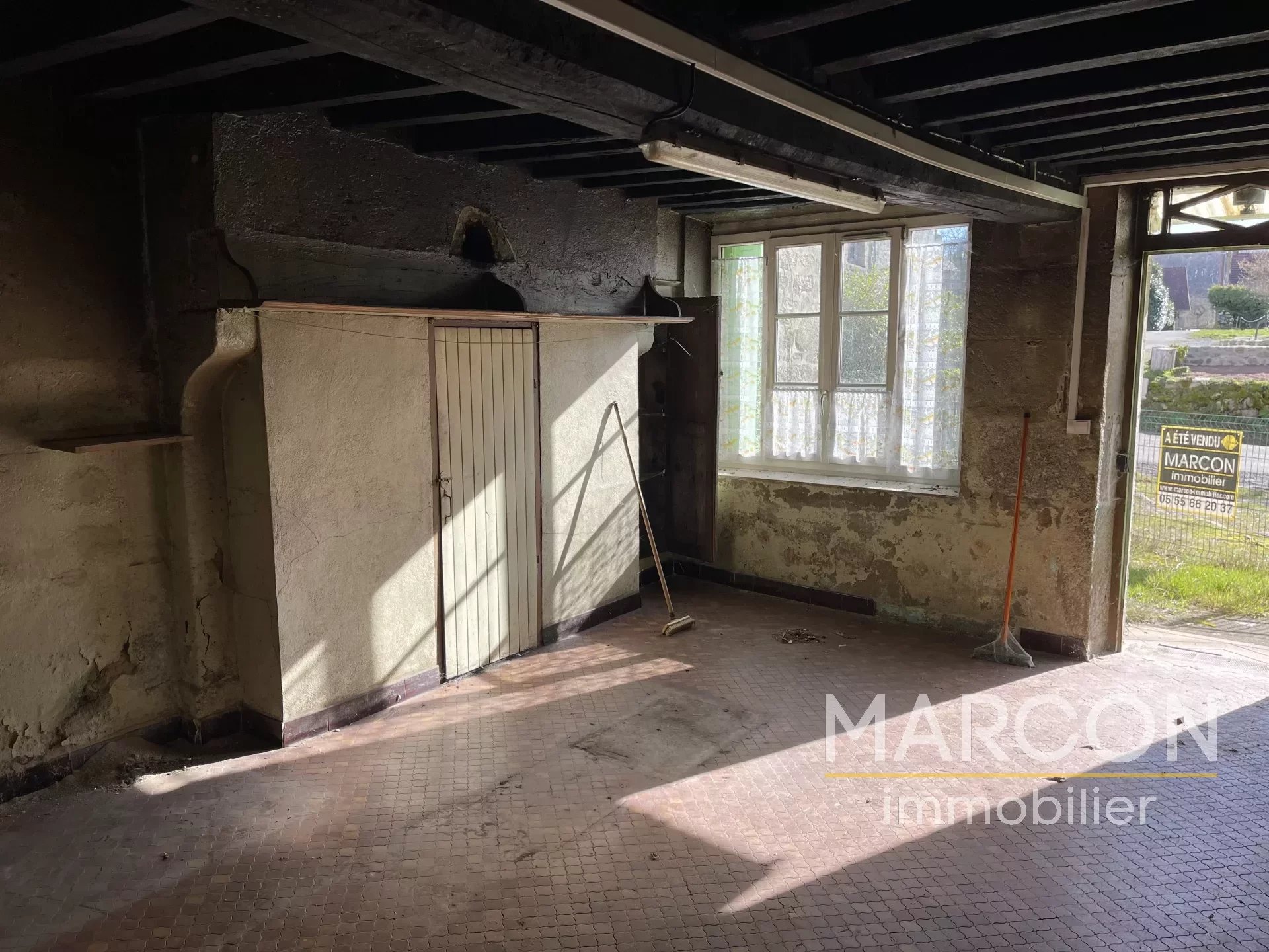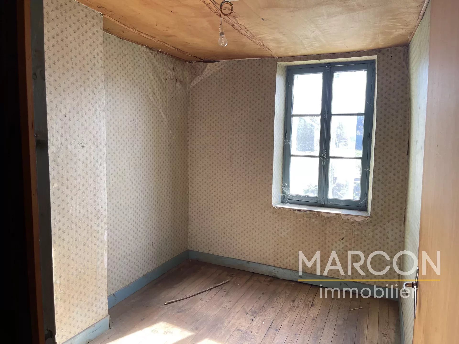MARCON IMMOBILIER - CREUSE EN LIMOUSIN - Réf 88890 - SECTEUR AUBUSSON - 10 MINUTES COMMERCES. Une maison à rénover avec un très joli terrain comprenant en rez-de-chaussée : cuisine, salon, WC (sanibroyeur), cave. 1er étage : palier, 2 chambres, un bureau, salle de bain. Grenier au-dessus. Absence de système de chauffage. Remise. Le tout sur un terrain arboré attenant de 1 500 m². Prix : 38 500 € (honoraires d'agence à la charge de l'acquéreur de 10 % TTC). (Prix : 35 000 € hors honoraires). Réseau de 3 agences en Creuse : Aubusson, Guéret, La Souterraine. 05-55-66-20-37