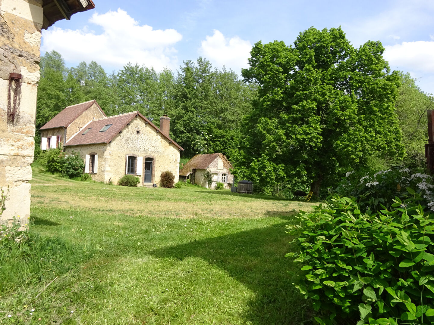 Belle propriété au bout d'un chemin, dans cadre idyllique bordé par ruisseau , bief et étang. Maison d'habitation entièrement restaurée 125m² comprenant : entrée sur séjour- salon avec poêle à bois, cuisine en devenir ( tous les branchements sont installés), chambre avec accès salle d'eau et wc, cave voûtée. A l'étage : palier desservant deux belles chambres, salle de bains complète (douche, baignoire, meuble vasque et wc). Nombreuses dépendances dont 1 avec cuisine, sanitaires et belle salle de réception avec au-dessus dortoir et salle d'eau. Une autre dépendance divisée en deux petits logements comprenant chacun : chambre, salle d' eau et wc. (idéal pour héberger famille ou amis). Grange avec préau, remise et wc. Ancien hangar à foin aménagé en pièce avec vue sur la propriété, salle d'eau et wc avec cave sous partie. Terrain d' 1ha 38a avec presqu'île, sans aucun vis à vis, calme absolu. (4.95 % honoraires TTC à la charge de l'acquéreur.)