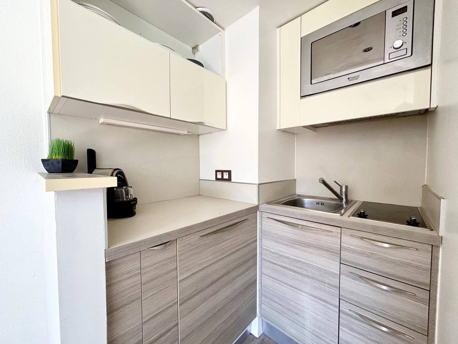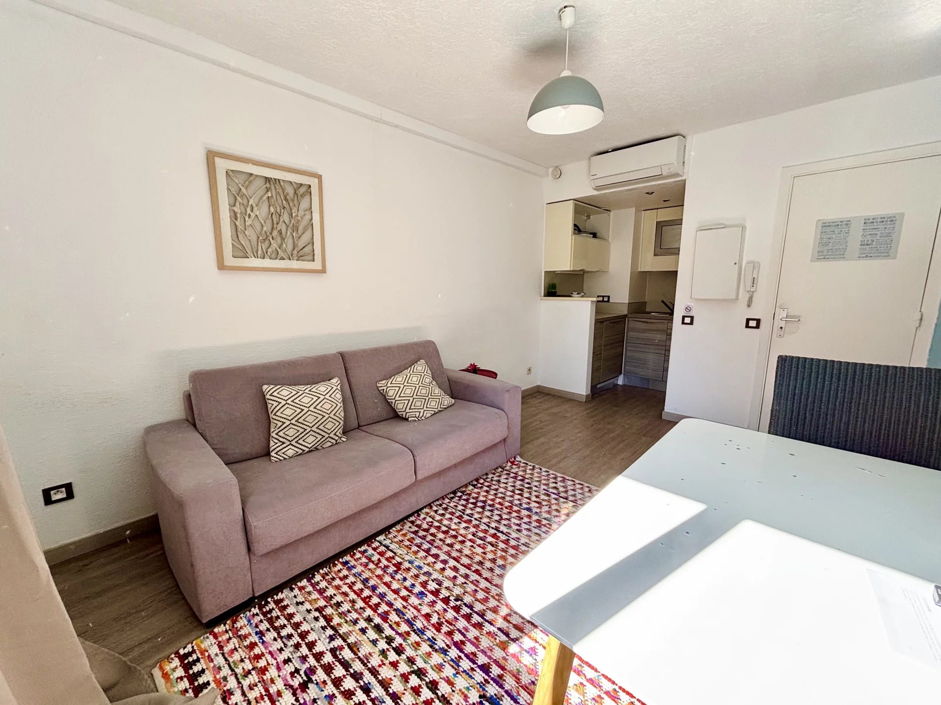 À Juan-les-Pins, à 50 mètres des plages de sables et des commerces, à proximité des transports (gare, bus, etc.), découvrez cet appartement 2 pièces au calme, dans une résidence de standing rénovée. Il se compose d'un séjour, d'une cuisine ouverte, d'une chambre, d'un petit dressing, d'une salle d'eau et d'un WC. Cet appartement est équipé de la climatisation. Faibles charges. Idéal comme pied-à-terre ou pour un investissement locatif. Belle rentabilité et peu d'entretien ! Bien en copropriété (57 lots dont 37 lots principaux), pas de procédure en cours. Les informations sur les risques auxquels ce bien est exposé sont disponibles sur le site GéoRisques : georisques.gouv.fr
