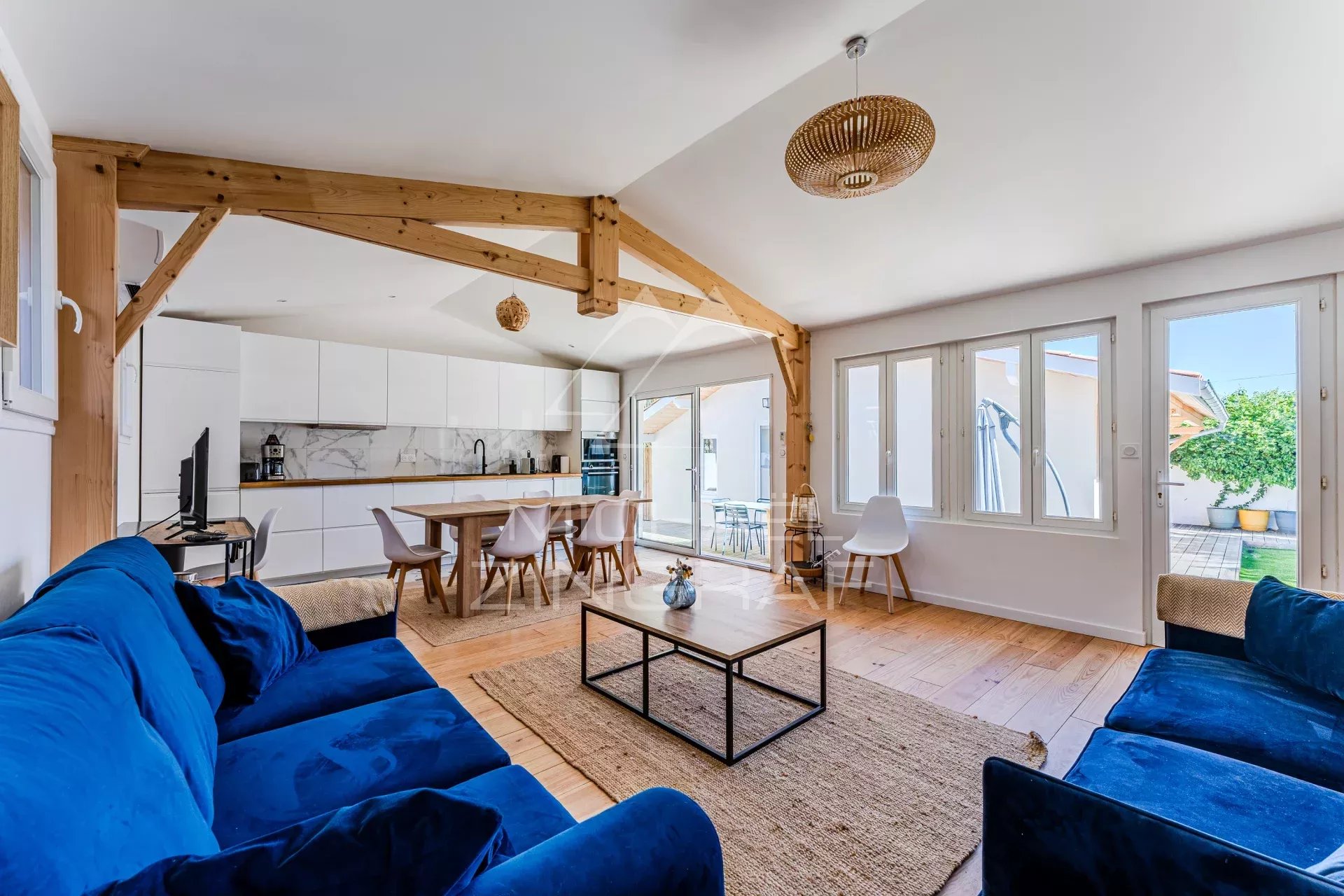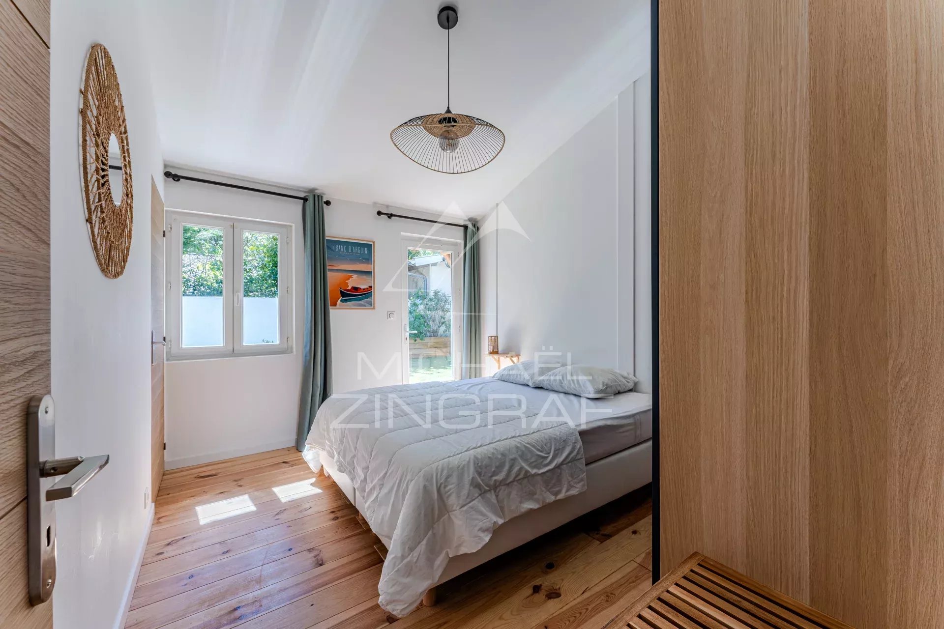 Michael Zingraf Real Estate vous présente cette opportunité, idéalement située au calme, à quelques minutes à pied de la plage Péreire et des commerces, dans l’un des quartiers les plus prisés du Bassin. Cet ensemble immobilier de charme se compose d’une maison principale aux volumes généreux, offrant un séjour cathédrale baigné de lumière avec cuisine ouverte, une chambre avec une salle d’eau attenante et wc indépendant. Un second bâti indépendant accueille deux chambres confortables, deux coins nuit supplémentaires, une salle de bains, une salle d’eau et un wc indépendant. Enfin, une troisième unité indépendante offre une chambre avec sa propre salle d’eau et ses toilettes, pour un confort optimal et une parfaite autonomie. À l’extérieur, une agréable terrasse et un coin jardin complètent ce bien, offrant un cadre de vie paisible à quelques minutes à pied de la plage. Un lieu unique, idéal pour une résidence familiale, un pied-à-terre de vacances au cœur du Bassin d’Arcachon ou un projet locatif.
