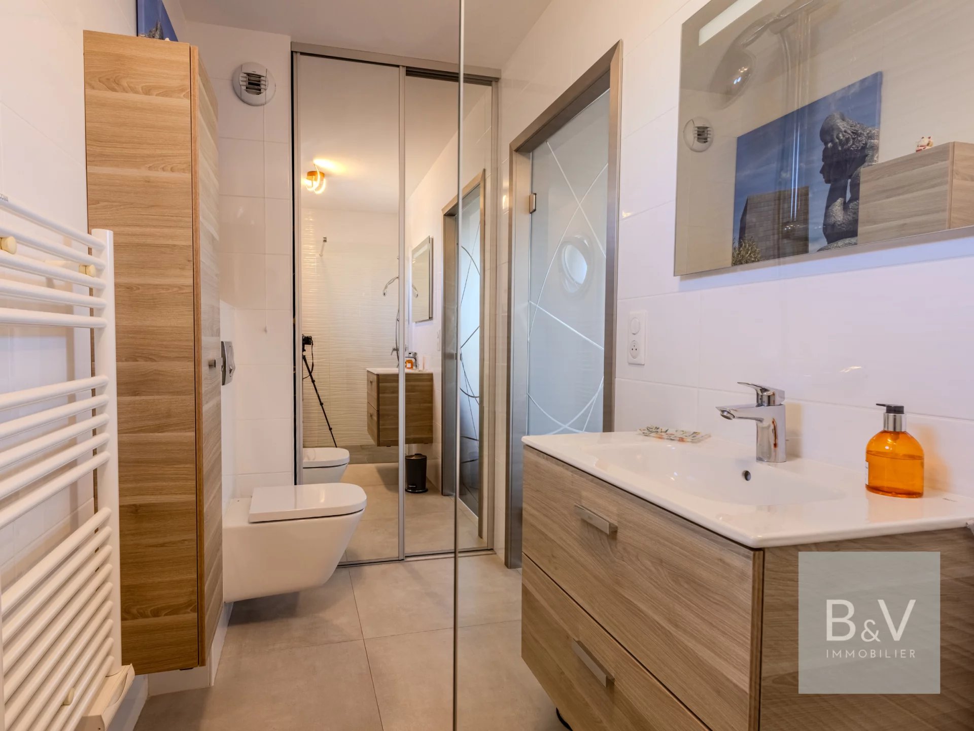 A due passi dalle spiagge, dal porto e da Cap 3000, tutto è raggiungibile a piedi! Nel ricercato quartiere di Les Vespins, questo magnifico appartamento di lusso T4 si trova a soli 100 metri dalle spiagge e ai piedi della futura linea del tram L4. Immerso in un'intima residenza costruita nel 2021 (solo 12 appartamenti), questo gioiello contemporaneo di 80 mq vanta un'eccezionale terrazza di 90 mq, inondata di sole e con tripla esposizione a sud e a est. Un vero e proprio spazio di vita all'aperto, che include un orto e promette momenti superbi con la famiglia e gli amici, con vista sul mare e sul porto. L'appartamento è composto da: - Un luminoso soggiorno di 30 m² con cucina a vista, - Due suite padronali, ciascuna con bagno privato con doccia, - Un ufficio/camera da letto ideale per il telelavoro o come camera da letto per gli ospiti, - Una cantina e una zona lavanderia. Tutti gli ambienti si aprono sulla terrazza, creando una perfetta armonia tra interno ed esterno. Caratteristiche di alta gamma: aria condizionata reversibile, materiali di alta qualità e finiture accurate, standard termici e acustici di ultima generazione, residenza sicura. Un ampio garage (5,15 m x 3,4 m) nel seminterrato completa questa proprietà eccezionale. Situato in posizione ideale, vicino a tutti i servizi: - Spiagge e porto a pochi passi, - Cap 3000 a 10 minuti a piedi, - Stazione ferroviaria di Saint-Laurent a 5 minuti, - Aeroporto di Nizza Côte d'Azur a 5 minuti di auto. Un indirizzo raro che unisce comfort, modernità e arte di vivere mediterranea. Contattateci per fissare una visita esclusiva! Prezzo: €795.000 FAI ECD : Classe B