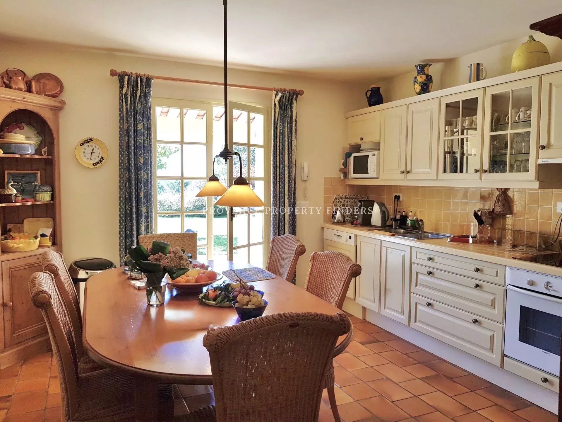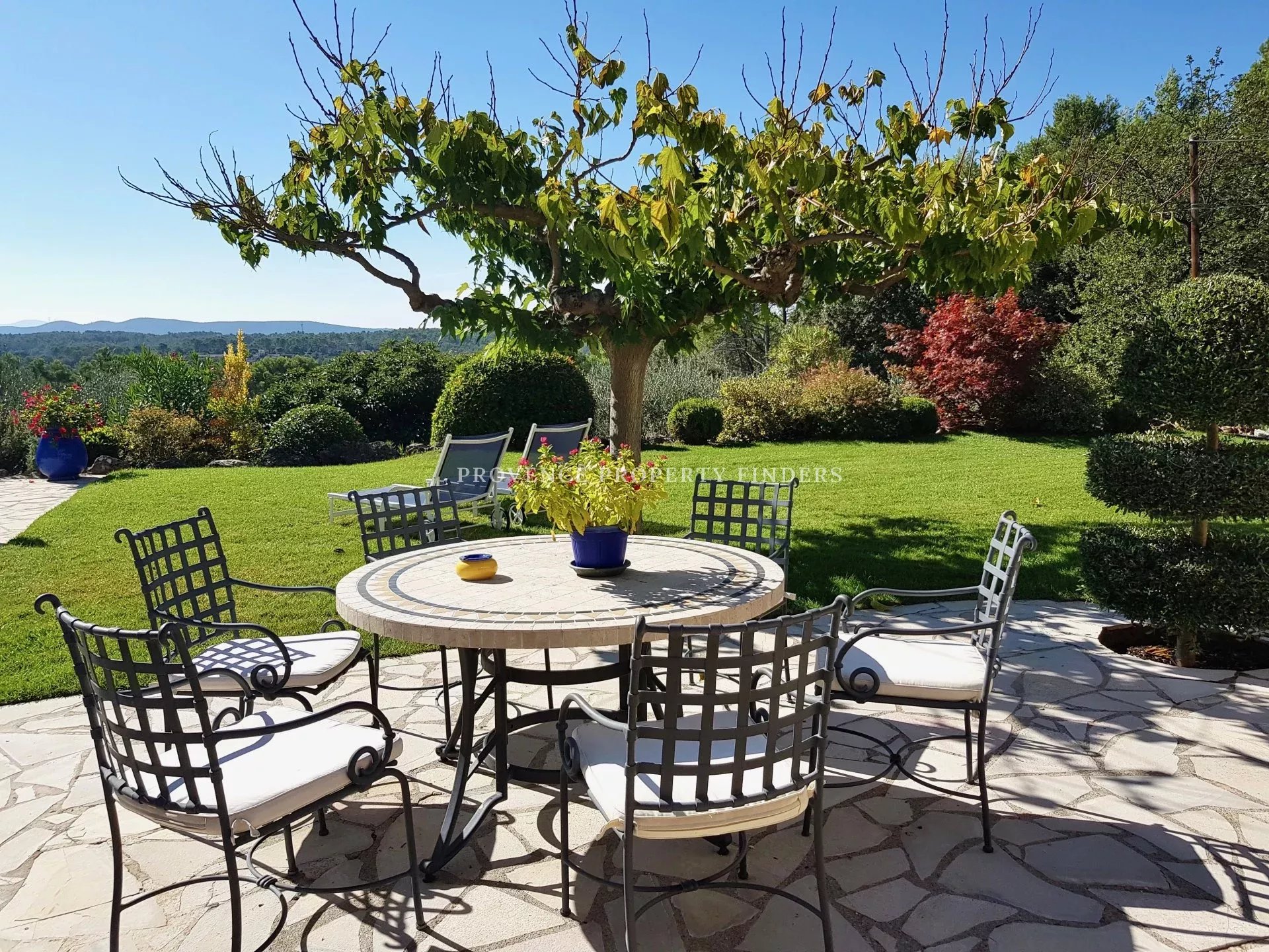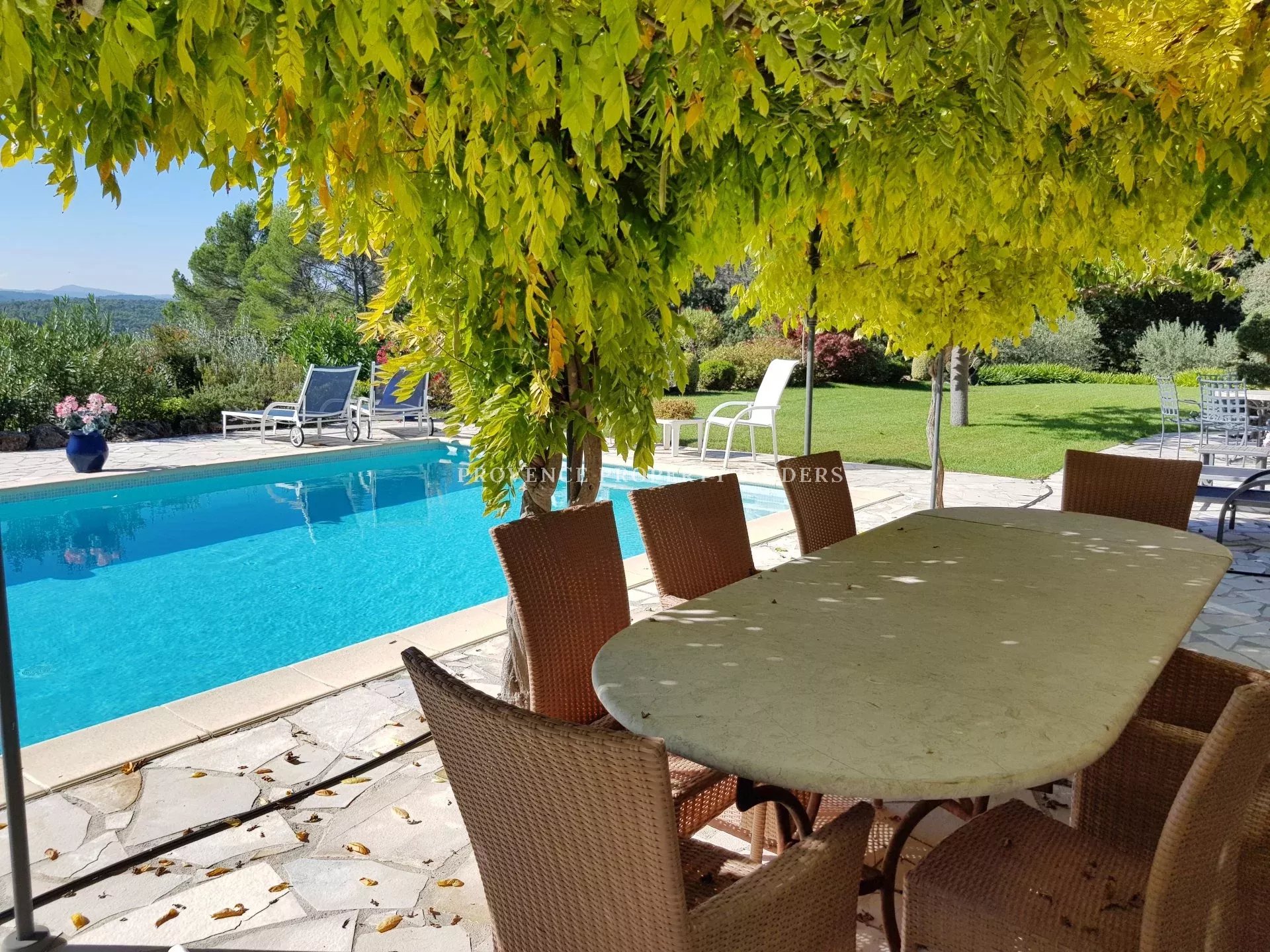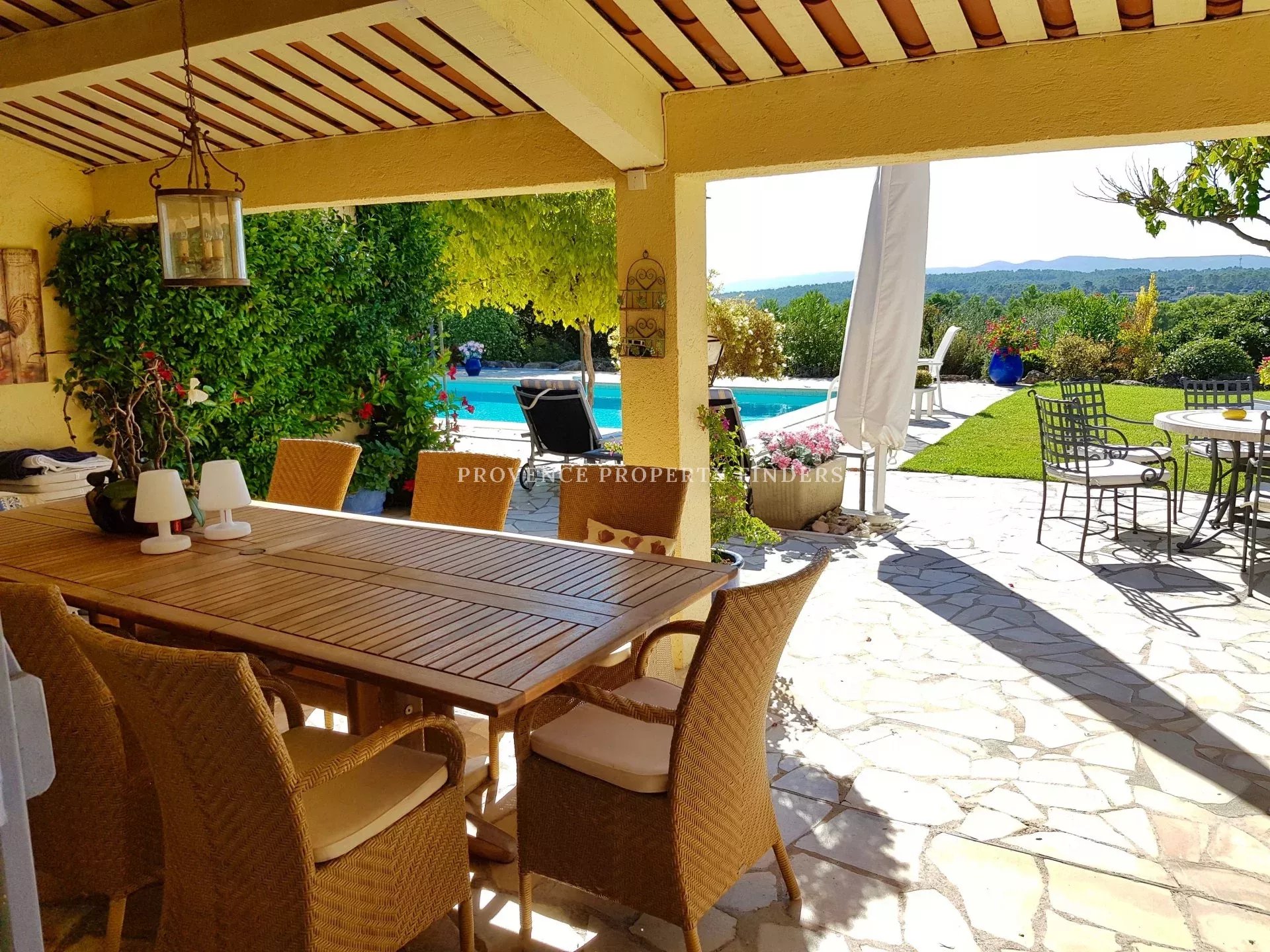 Non loin du charmant village de Lorgues se trouve cette villa magnifiquement entretenue, située dans un emplacement unique. La villa offre un spacieux salon ouvert avec cheminée, donnant accès à la terrasse couverte, un coin repas convivial, ainsi qu'une cuisine séparée ouvrant également sur la terrasse extérieure couverte. 4 chambres et 2 salles de bains. Vue phénoménale depuis la terrasse couverte et superbe piscine chauffée. Jardin parfaitement entretenu avec de nombreux oliviers et plantes méditerranéennes. Portail électrique, belle allée menant à la maison. Garage. Terrain de pétanque.