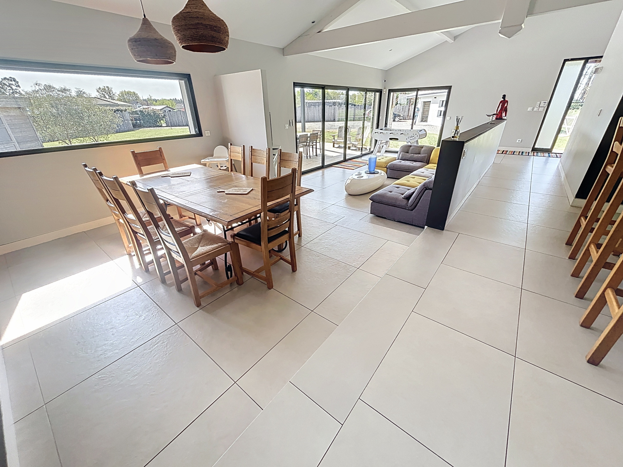 Venez découvrir cette magnifique contemporaine de 172 m2 sur un très joli terrain de plus de 2 000 m2. Elle se compose d'une entrée avec placard, d'un séjour lumineux, d'une cuisine ouverte entièrement équipée, d'un cellier, de 4 chambres dont une suite parentale avec salle de douche, dressing et WC séparé, d'une salle de bain avec baignoire et douche, ainsi qu'un WC suspendu.