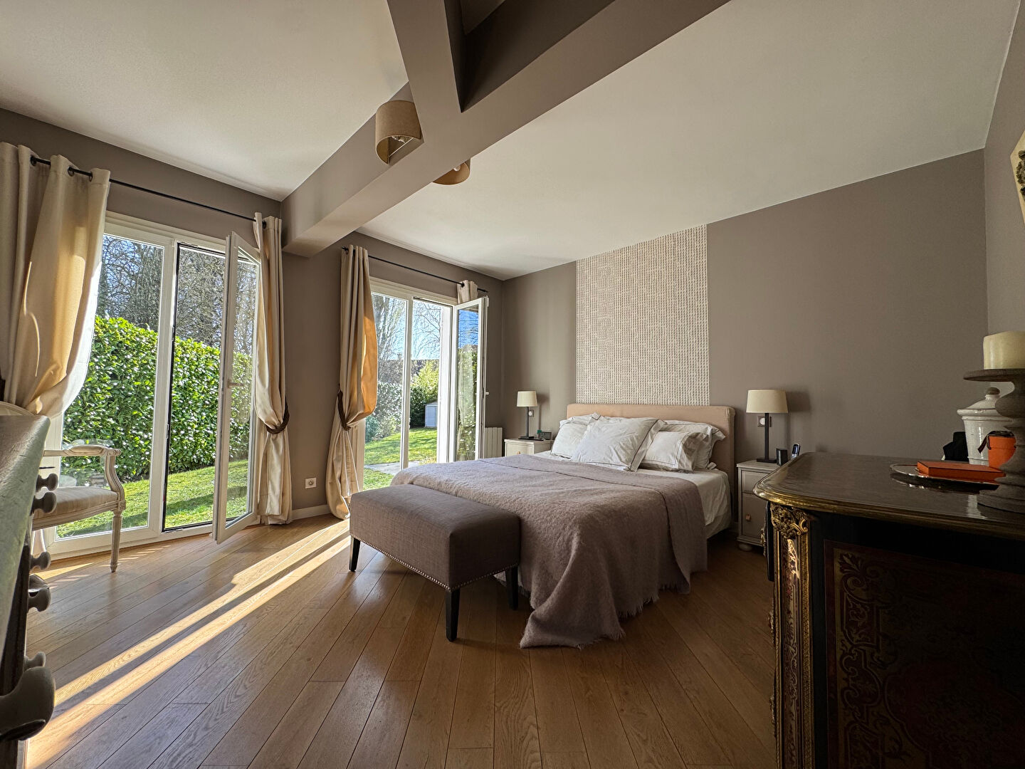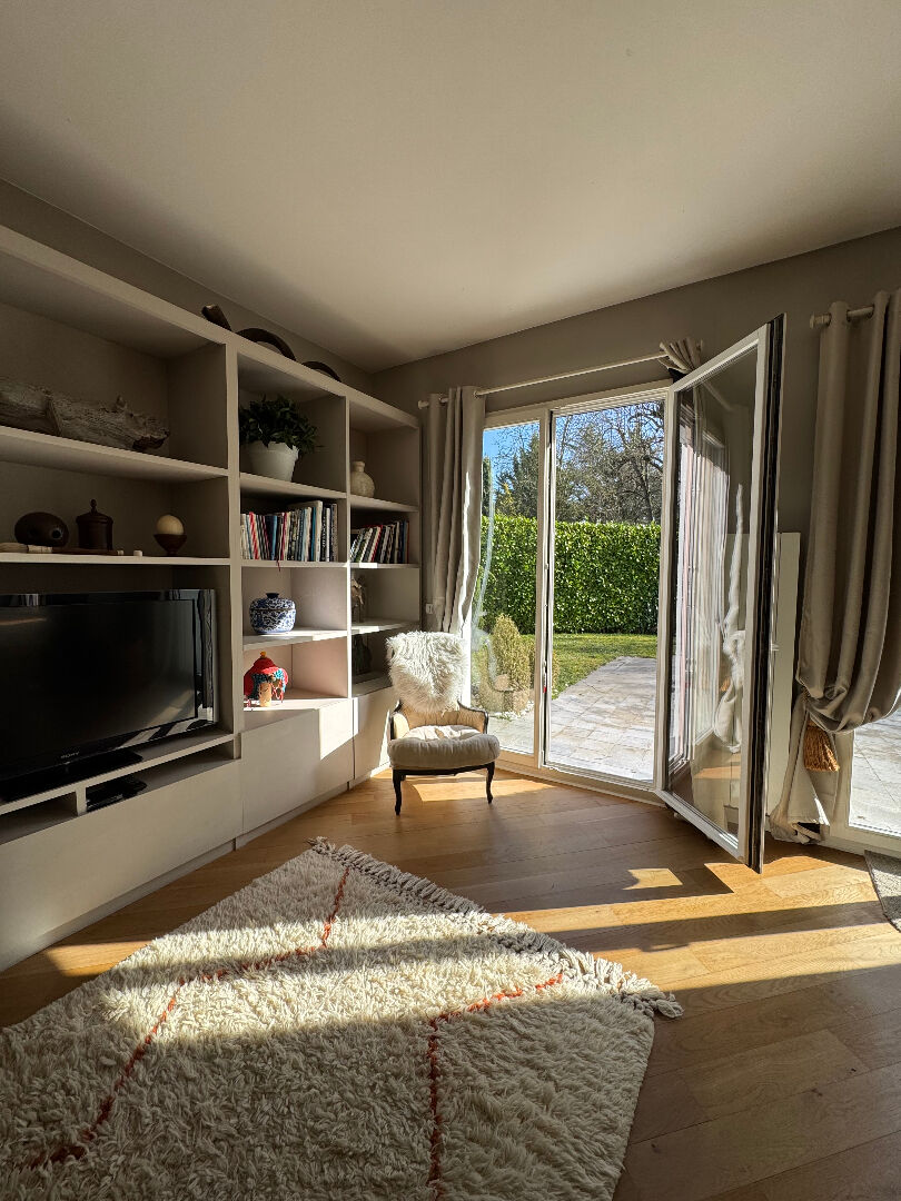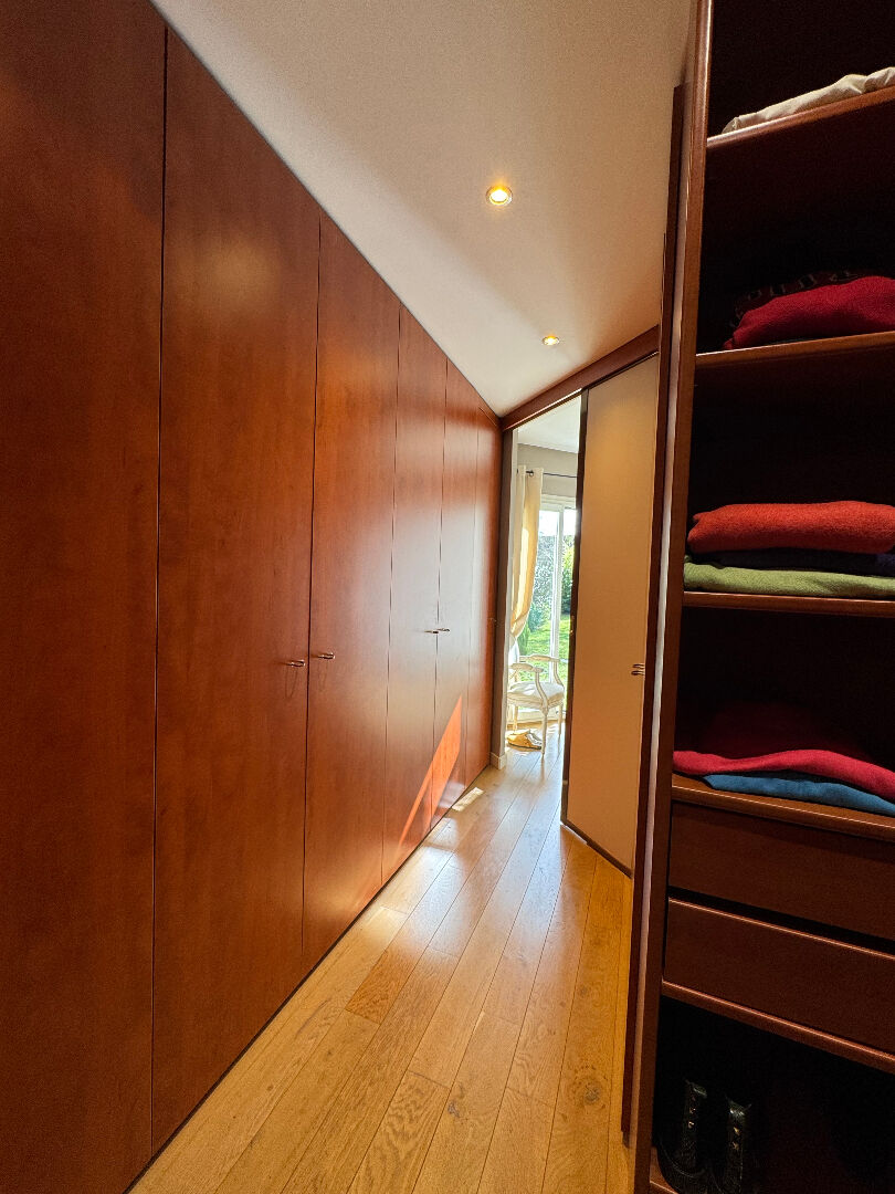 Dans quartier recherché et résidentiel, proche de la forêt, jolie maison comprenant une magnifique pièce de réception avec cheminée, ouvrant au sud sur une vaste terrasse en ardoise et son jardin. La maison dispose de 4 chambres de plain pied, dont une somptueuse suite complète avec un dressing particulièrement généreux et une salle de bains très confortable. Une deuxième salle de bains, et une salle de douches complètent ce premier niveau. L'étage a été aménagé en hobby room qui ouvre sur une belle terrasse en rooftop de 50 m² et que l'on peut facilement aménager en terrasse végétalisée avec jacuzzi ou autre... Très beau terrain clos et arboré de 1 150 M2. Garage, atelier. (3.67 % honoraires TTC à la charge de l'acquéreur.)