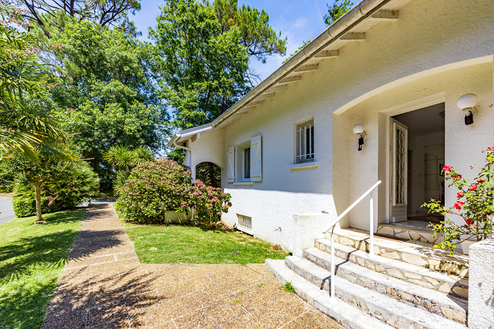 Exclusivité Donzacq Immo, Domaine d'Exception à Bidart. Située sur la commune de Bidart, à proximité immédiate de toutes les commodités (supermarché, plages, autoroute, boulangerie), cette splendide villa vous séduira par son environnement calme, sans aucun vis-à-vis, et son cadre enchanteur avec un magnifique parc arboré, une bodega et une piscine conviviale. D'une superficie de 255 m² habitables (408 m² au sol), la maison principale se compose de : 3 chambres de plain-pied, chacune avec sa salle d'eau privative Une pièce de vie exceptionnelle de 76 m² orientée plein sud, avec cuisine américaine équipée, salon et salle à manger En rez-de-jardin : un bureau, une chambre parentale, deux caves, un garage de 78 m² et un atelier de 35 m². Un potentiel rare et une atmosphère unique se dégagent de cette propriété. Et ce n'est pas tout : à l'entrée du domaine, vous trouverez une maison de gardien indépendante de type T2, d'environ 25 m², idéale pour accueillir famille, amis ou projet locatif. Prestations techniques : Climatisation dans toute la maison Insert bois dans le séjour Assainissement aux normes Diagnostic énergétique : C et A. Une performance énergétique remarquable pour une villa construite en 1974. Honoraires de 4,17 % inclus à la charge de l'acquéreur Je me ferai un plaisir de vous faire découvrir ce lieu hors du temps, où seul le chant des oiseaux viendra troubler votre tranquillité? Un véritable havre de paix pour vivre ou se ressourcer au coeur de Bidart. (4.17 % honoraires TTC à la charge de l'acquéreur.)