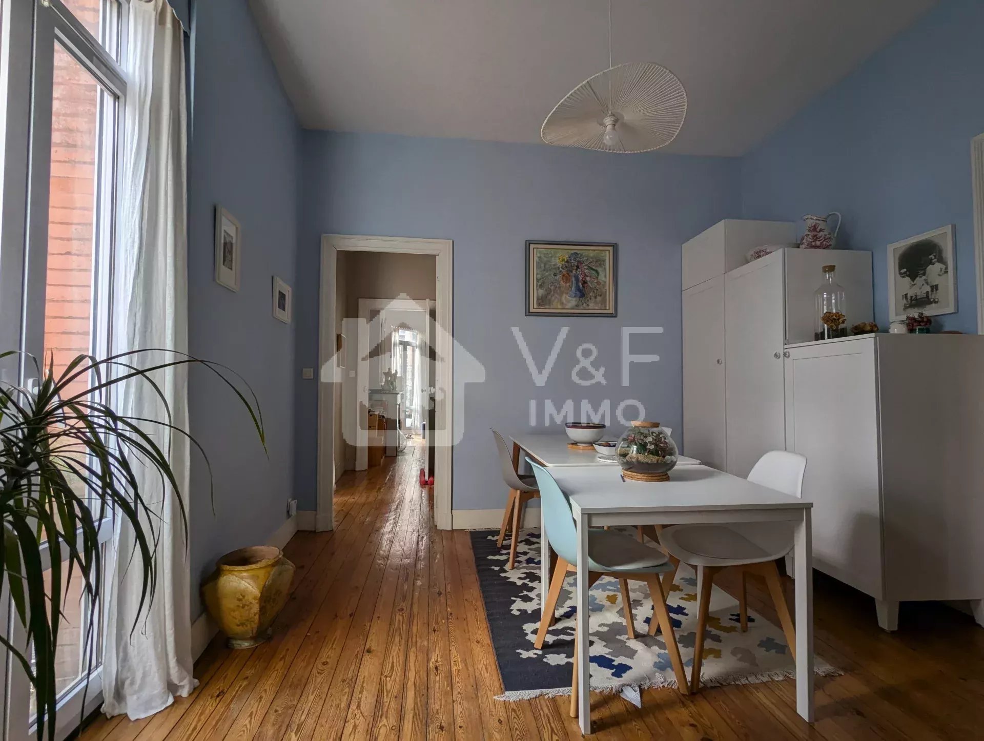idéalement situé dans une petite copropriété de 7 appartements, je vous propose à la vente ce magnifique bien d'une superficie de 108m² situé au 1er étage pouvant bénéficier d'une double destination, il fut autrefois la résidence principale d'un médecin ainsi que son cabinet médical, il existe toujours 2 portes d'entrée distinctes sur le même palier. Idéal pour des bureaux ou toute profession libérale, il peut-être pensé pour une seule destination ou combiner vie professionnelle et habitation principale. L'alliance des matériaux anciens (briques, parquet bois,cheminées en marbre, moulures) et le confort des prestations récentes ( climatisation réversible, chaudière gaz à condensation, menuiseries en aluminium, volets électriques), la hauteur sous-plafond (3m20) et son emplacement confèrent à cet appartement tout le charme et le cachet tant recherché.Des celliers d'une superficie de 12m² env vous offriront du rangement supplémentaire. Je serai ravie d'organiser avec vous votre prochaine visite, appelez Sandrine.
