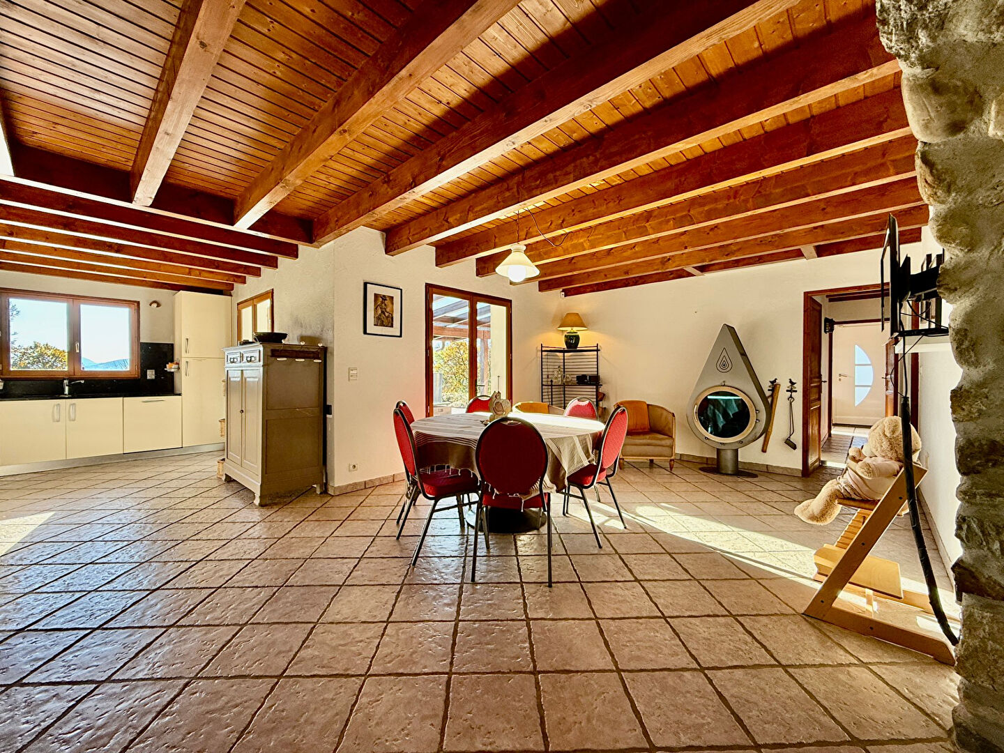 En vente chez IMMODEC ! Dans un environnement paisible et verdoyant, cette belle maison familiale vous ouvre ses portes et vous invite à profiter pleinement de la douceur de vivre qu'elle offre. Nichée sur un terrain d'environ 3 000m² soigneusement entretenu, vous serez immédiatement conquis par son agréable jardin arboré, sa belle terrasse propice aux repas d'été, et surtout sa piscine, parfaite pour se détendre dès les beaux jours. Le rez-de-jardin dessert une entrée avec buanderie, une cuisine ouverte sur un spacieux séjour, regroupant salle à manger et salon. Deux chambres avec placards, une salle d'eau, un WC indépendant et un dégagement complètent ce niveau. L'étage est composé d'une vaste mezzanine, idéale en coin détente ou salon TV, de deux chambres dont l'une avec mezzanine, d'une pièce polyvalente pouvant faire office de bureau ou de dressing, d'une salle de bain, d'un WC indépendant et d'un dégagement. En annexes, vous bénéficierez d'un sous-sol composé d'un garage, d'une cave, d'un espace de stockage et d'une chaufferie. Une vaste cour goudronnée, accessible par un portail électrique, offre quant à elle la possibilité de stationner plusieurs véhicules. Vidéo du bien disponible sur demande ! Cette maison vous est proposée par l'agence IMMODEC en co exclusivité. Pour tous renseignements complémentaires ou visites, n'hésitez pas à contacter votre agence LOCALE et INDÉPENDANTE. Nous serons ravis de vous accompagner dans votre projet d'acquisition, de vente ou d'investissement locatif.